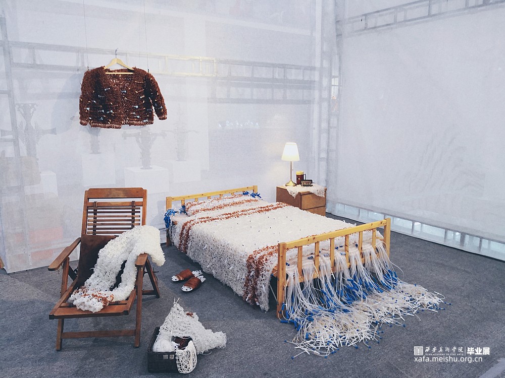 作品的灵感来源于自己的亲身感受,老人孤独死。在老人的生活里,亲人的陪伴对于他们来讲是很重要的,但是往往陪伴他们最多也是最后的也许就是这些冰冷的医疗器材,用医疗器材做成生活日用品来表现对人们的一种另类的陪伴也是讽刺当地人对于亲情的淡漠。