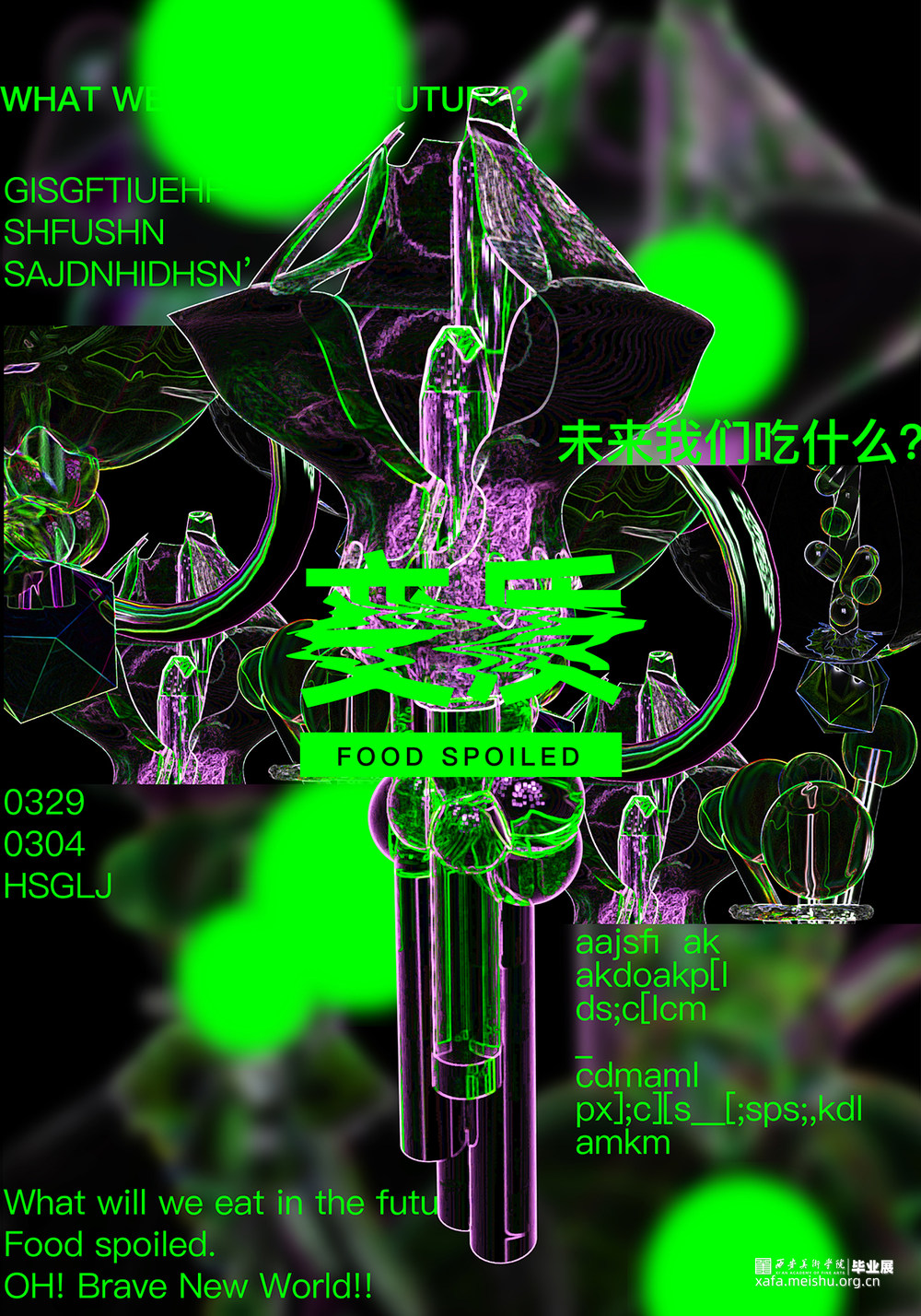 食物是人们赖以生存的根本。但随着环境污染的日趋严重,在工业污染、辐射污染等众多污染的影响下,未来的食物又会是什么形态呢? 本课题以未来发展的视角,对现有食材进行再设计,希望通过以常人难以想象的“变质”结果,引发人们对未来食物的质变产生思考以及对滥用科技、破坏环境的做法进行反思。