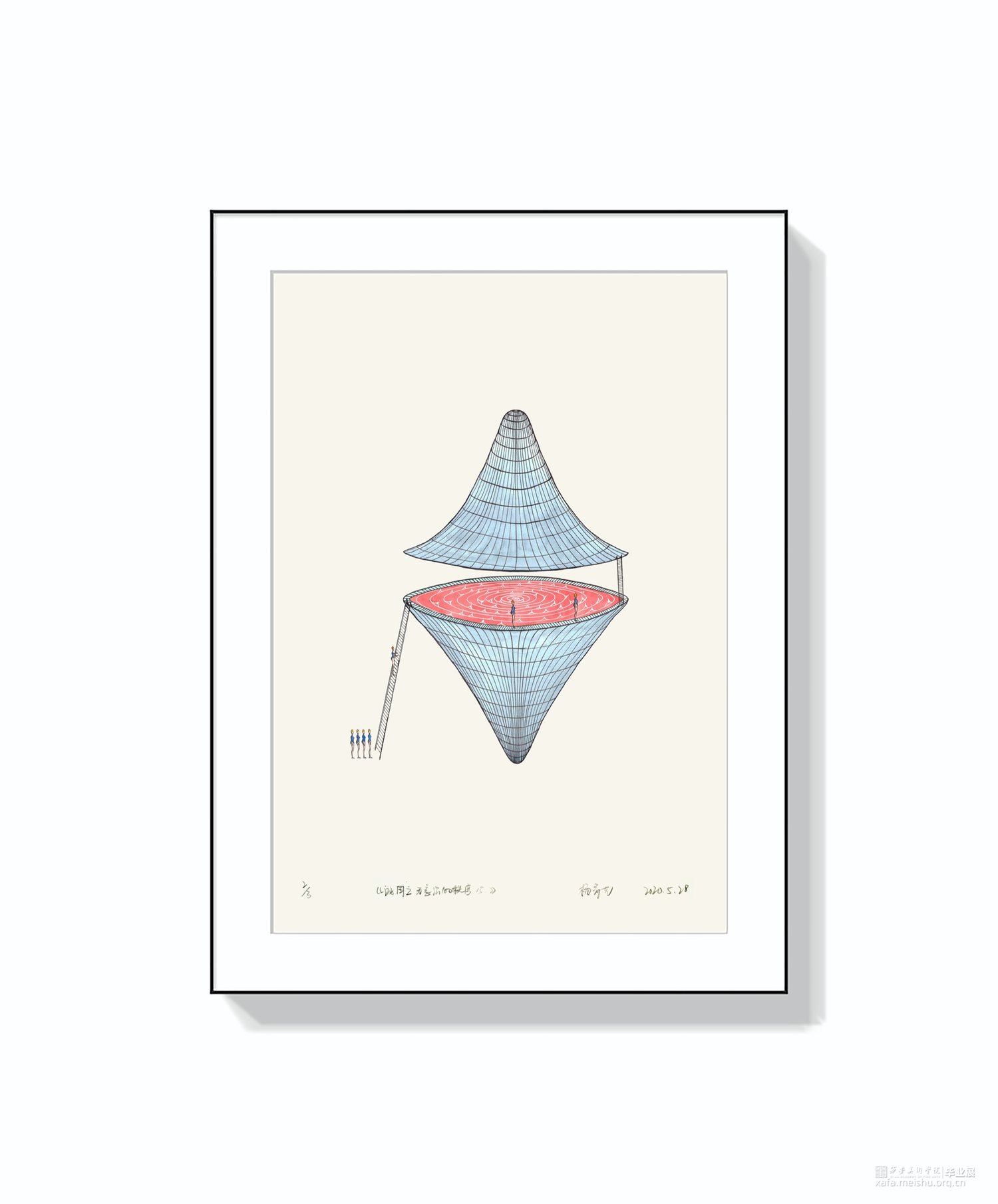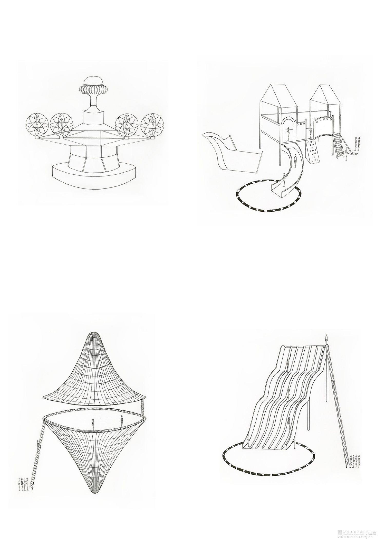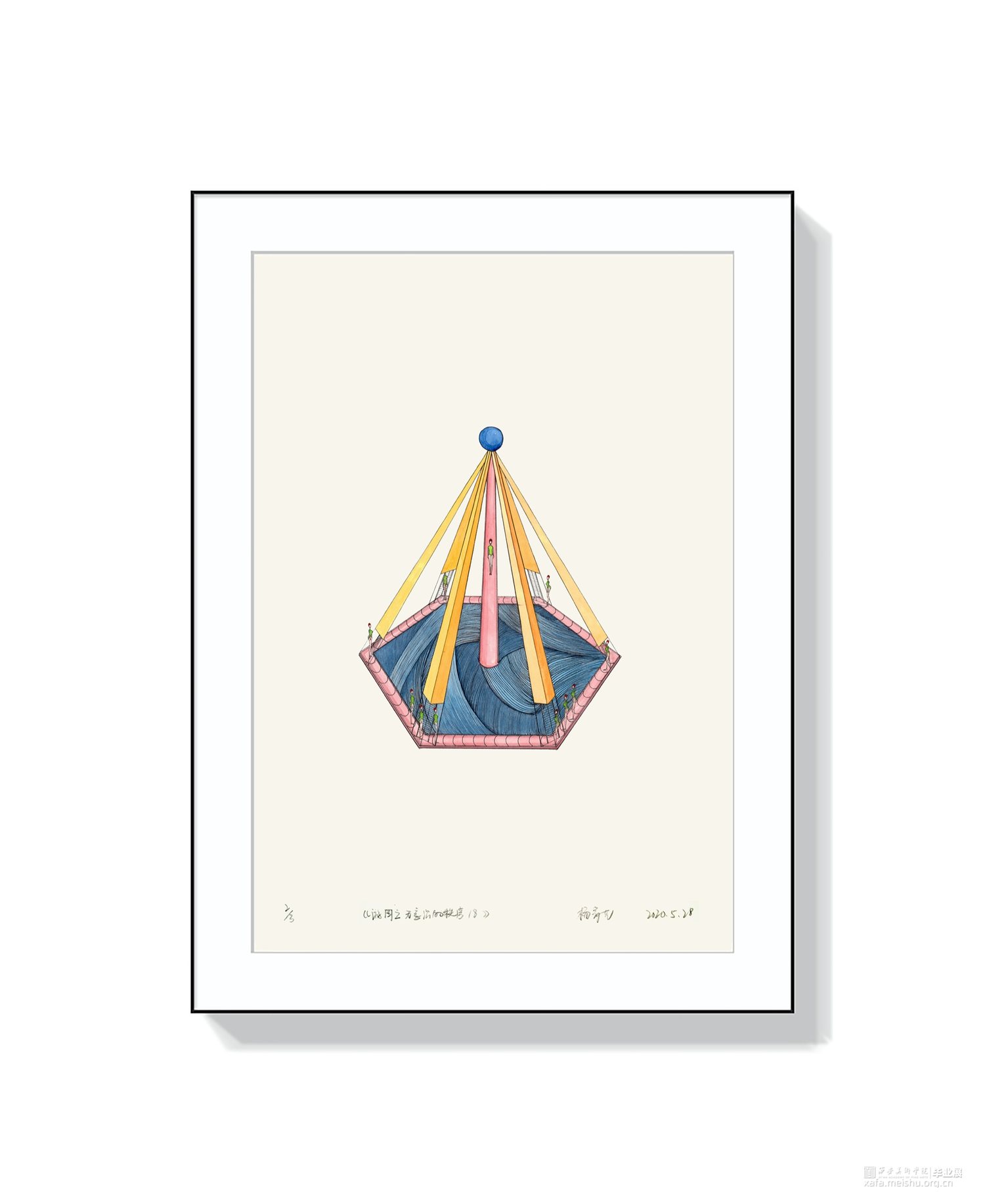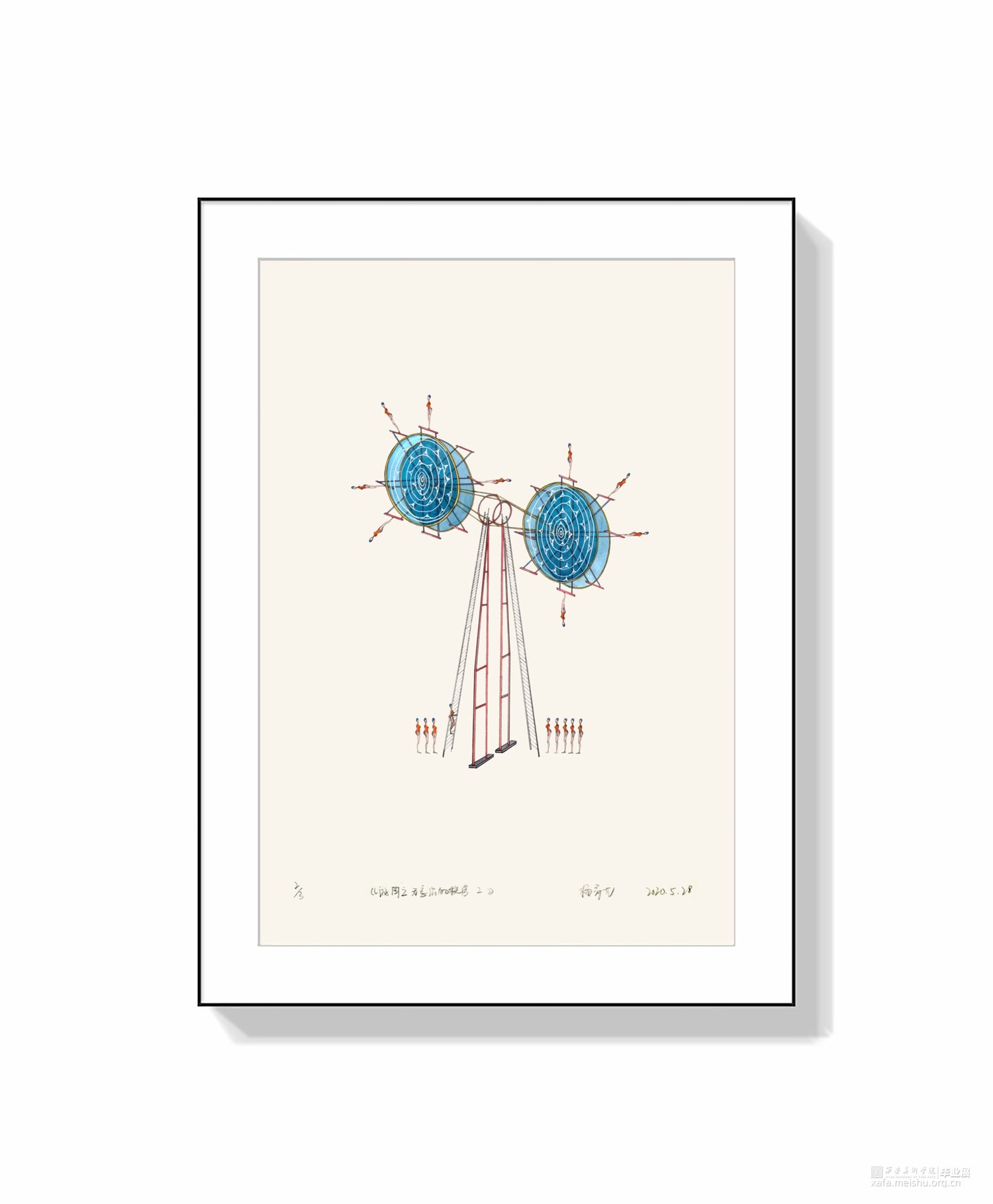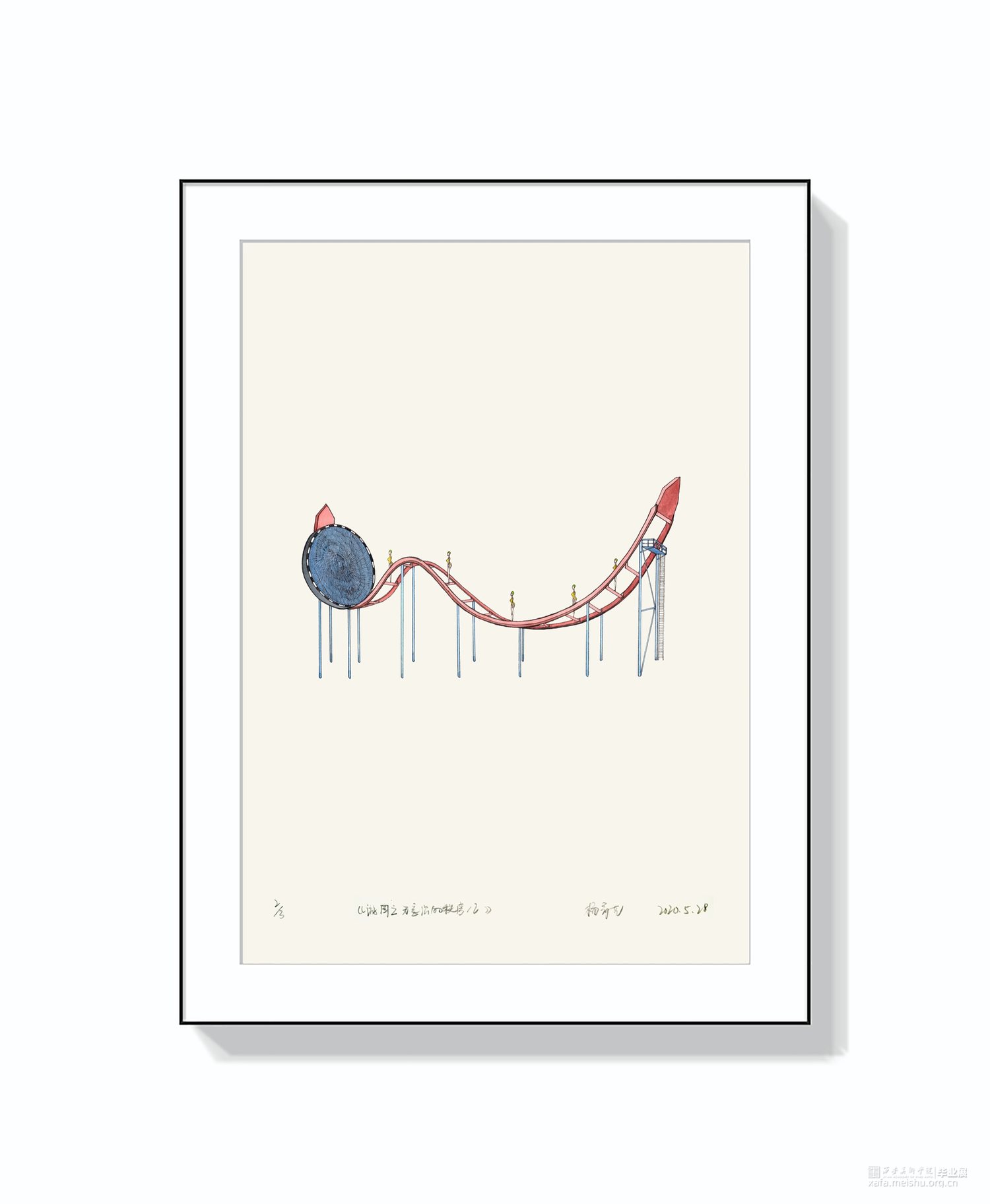 我的作品充满了超现实主义气息。画面元素利用了生活中被我改写后的游乐设施,再结合了机械的人物。因为游乐园作为一个象征着欢乐的环境,但是在其中的人物却僵硬,没有五官,没有面部表情,从而人物与环境就产生了对比感,画面由此变成了一个光怪陆离的场景,最终营造出了荒诞、怪异的环境氛围。