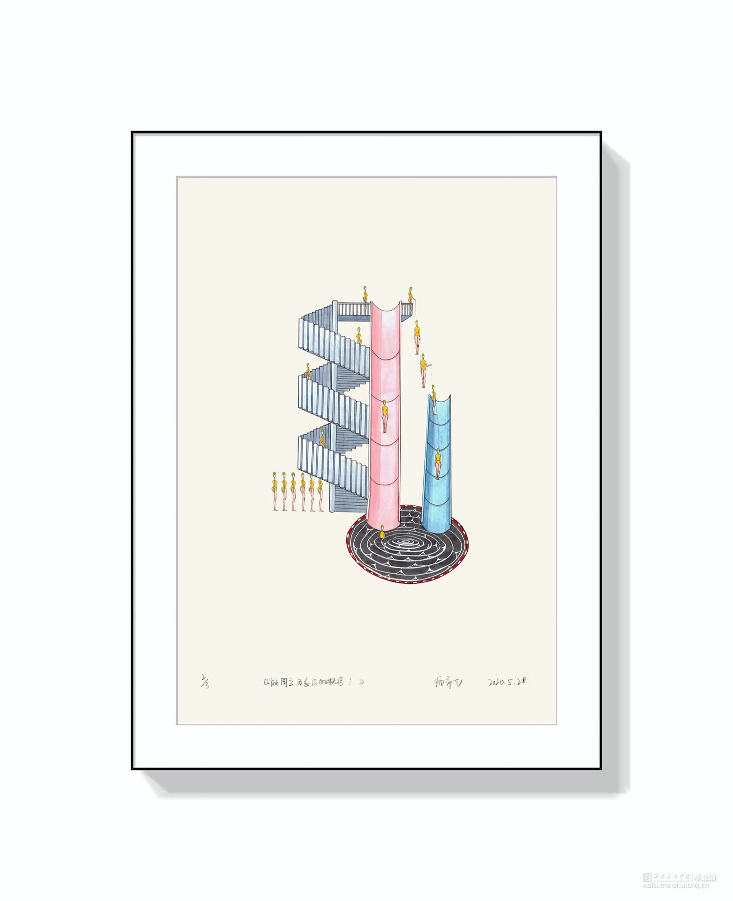 我的作品是聚焦于当下社会的人们,因为在现实生活中大家都是一样的,每日的三点一线——早起、上班(上学)、回家......循环往复,每天生活是同样的枯燥无趣。人们都在各自的生活中扮演着不同的角色,但是不同的角色又在各自的环境中重复着一样的生活程序。慢慢的所有人就像是被设定了程序一般,固定的位置,固定的路线,固定的地点。我们一开始所拥有的好奇心、冲动、激情都在时间的流动中渐渐消失殆尽,变得平庸、普通、平淡,最后每天都处于无意识的状态之中了。