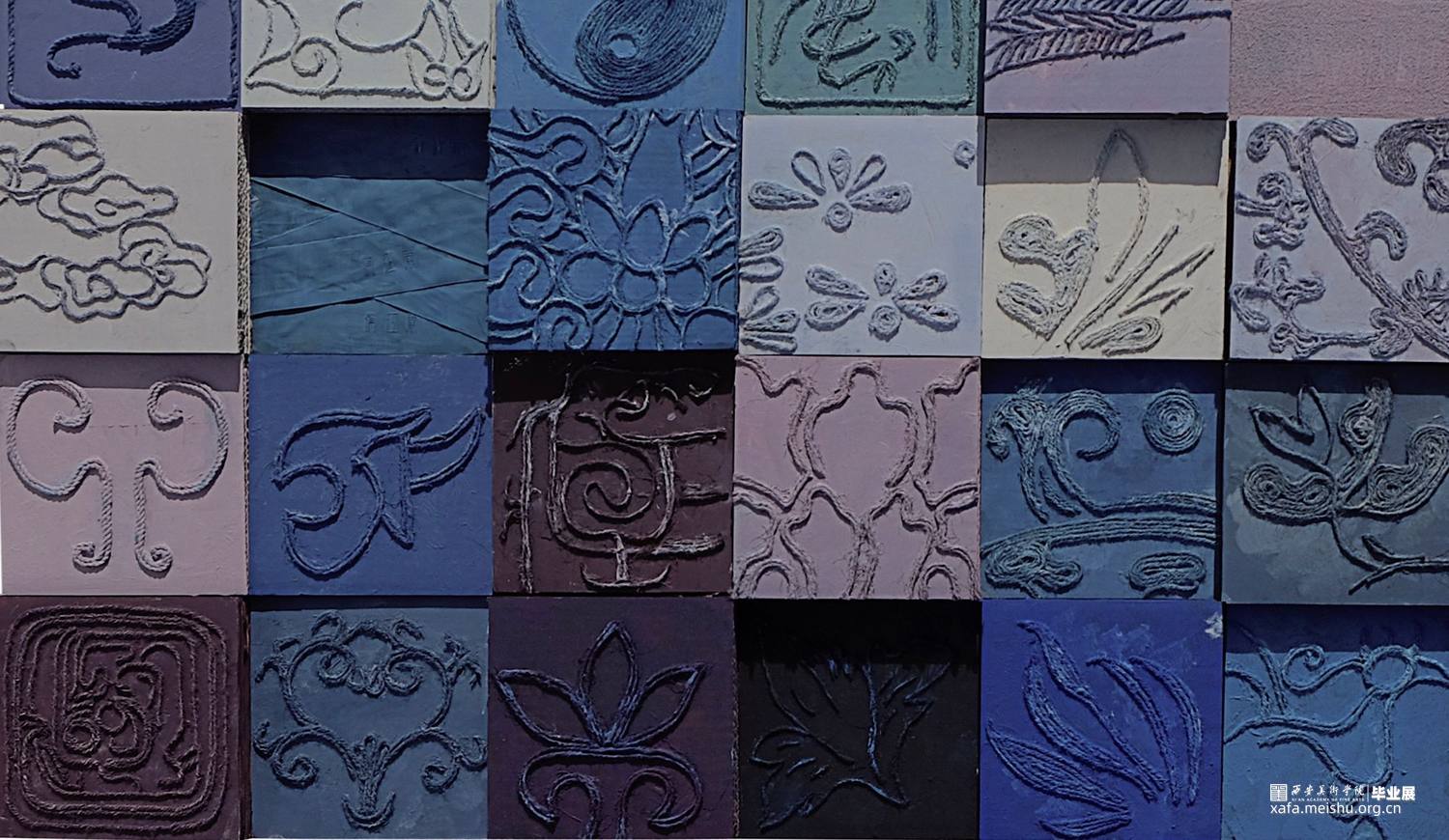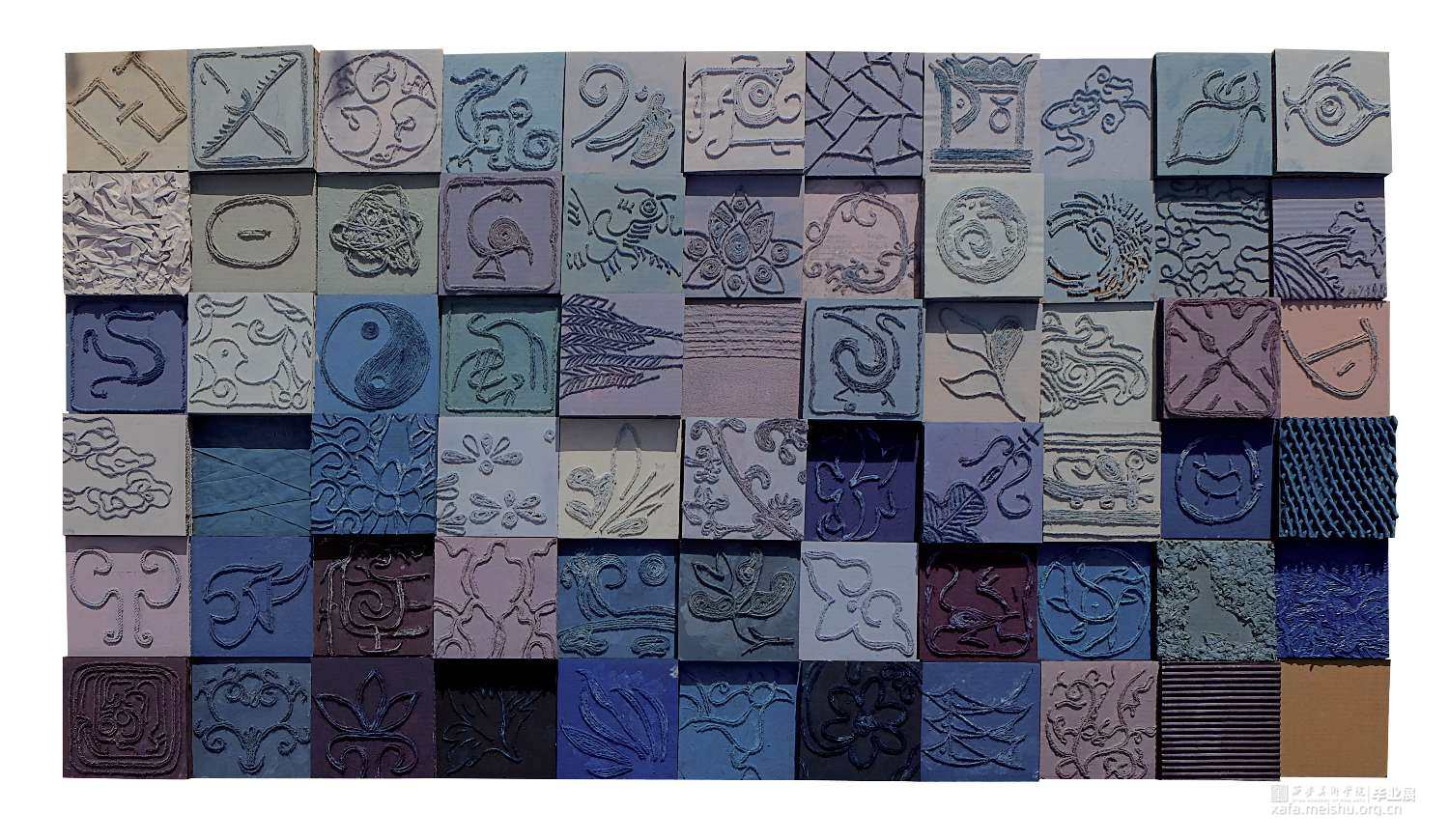 本作品是根据中国传统纹样创作,利用综合材料不同材质去表现作者对中国传统图案的理解,并运用现代化的构图形式加以重组,展现出新的视觉效果。