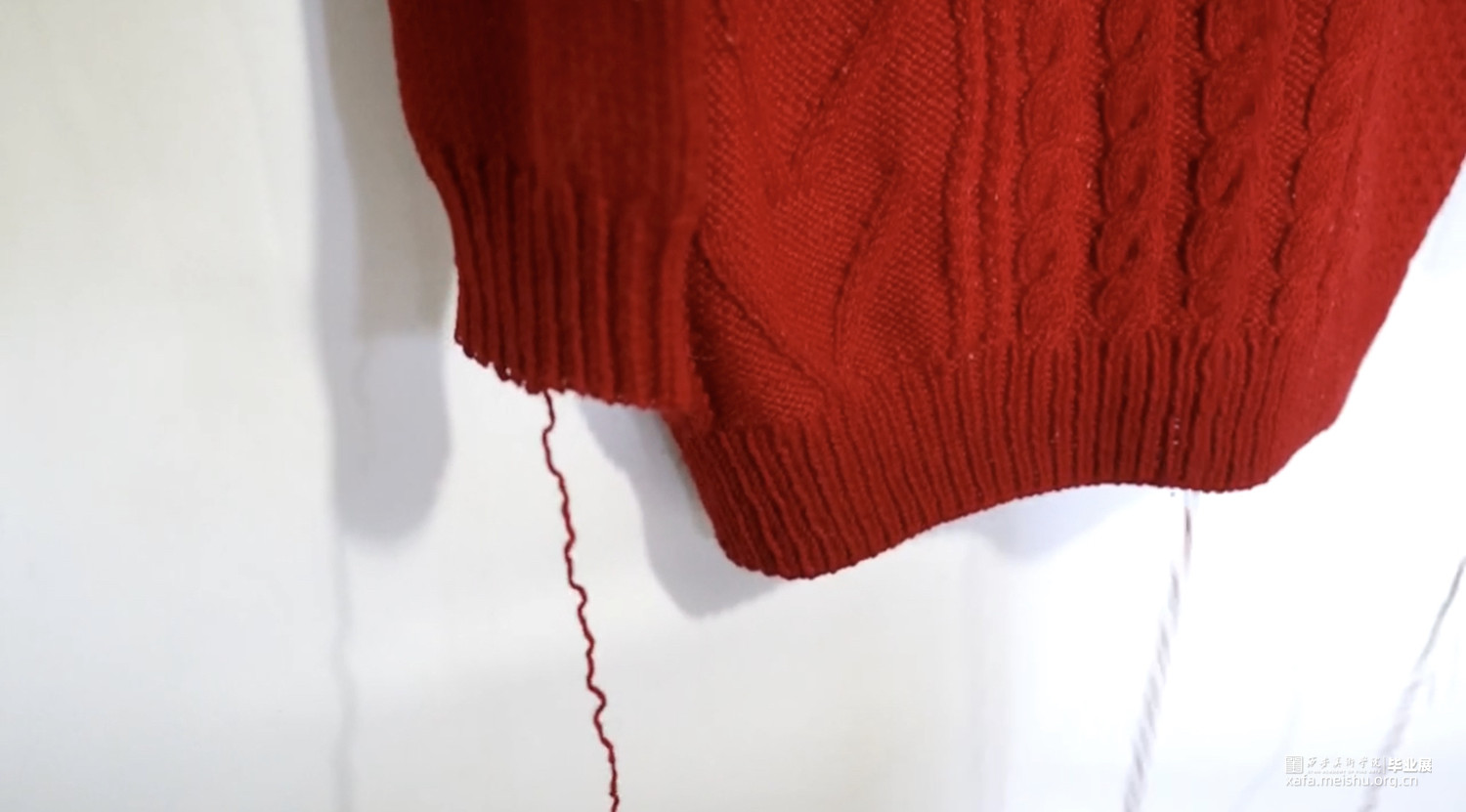 着手制作阶段,将事先勾针的毛衣连接电机,拍摄记录拆解过程.
