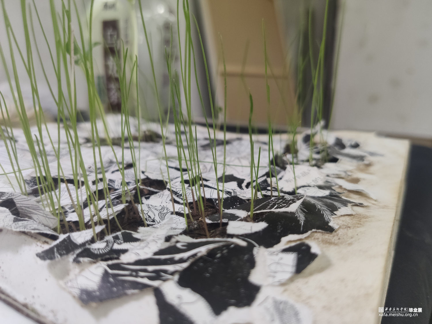 艺术对于我身边的人群来讲是生命中极度重要的部分,而就整个社会而言艺术仅处于边缘。不同群体看待一类文化产物的态度是完全不同的。这在不同群体之间建立了坚固的障壁,群体内部的文化偏好,价值取向愈发趋同并逐渐极端化。要改善此问题需要将文化与思想量化为大家都能接受的价值单元,这样才能在所有群体中流通。作品通过植物与书籍组合,将书籍作为植物的养料,将文化与思想量化为植物所需的能量单元,这样的话这些文化与思想就能为植物所用。一边创造晦涩的谄媚于小群体的文化与思想一边又哀叹曲高和寡,蔑视他人的审美与品味,这样的文化与艺术创作者是可悲的。这也不是艺术与文化应有的发展方向。好的艺术需要摒弃小群体的价值判断,摒弃由阶级,教育,性别,国家形成的价值偏好,树立起一种全人类视角甚至是全生物体的视角。