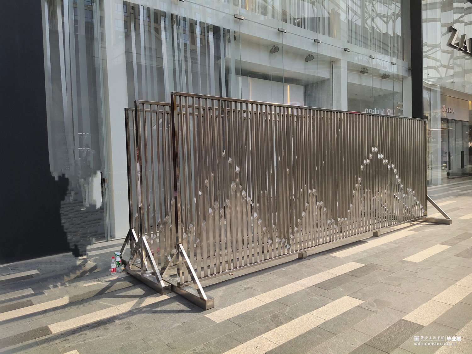 随着城市化的快速发展,物质和精神生活水平不断提高,景观设计领域呈现多样化,在城市公共空间中,现代景观设施已经成为现代城市公园不可或缺的一部分,而山水是中国传统绘画表现题材。是“神思”“畅神说”的提出起,山水不单作为具体物象,开启了古人寓情山水的传统。不同人眼中有不同的山水,作品通过条状金属错落排列,以及投射在地面的光影,表现出不同位置下不同的山水景色。与空间、时间相结合,在移动观赏下产生不一样的感受。