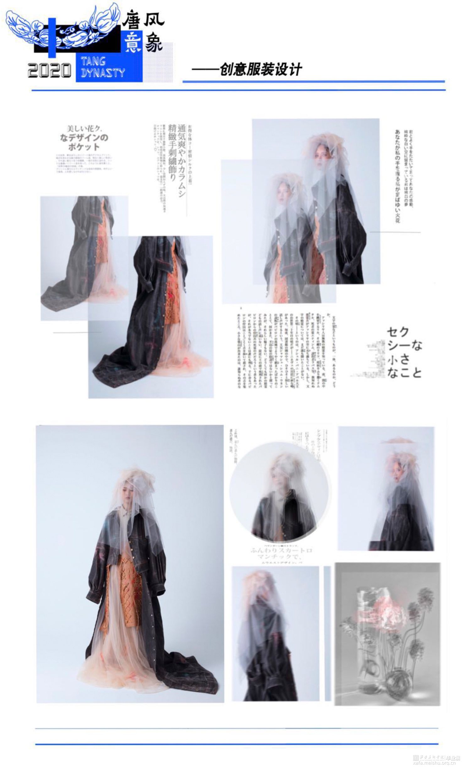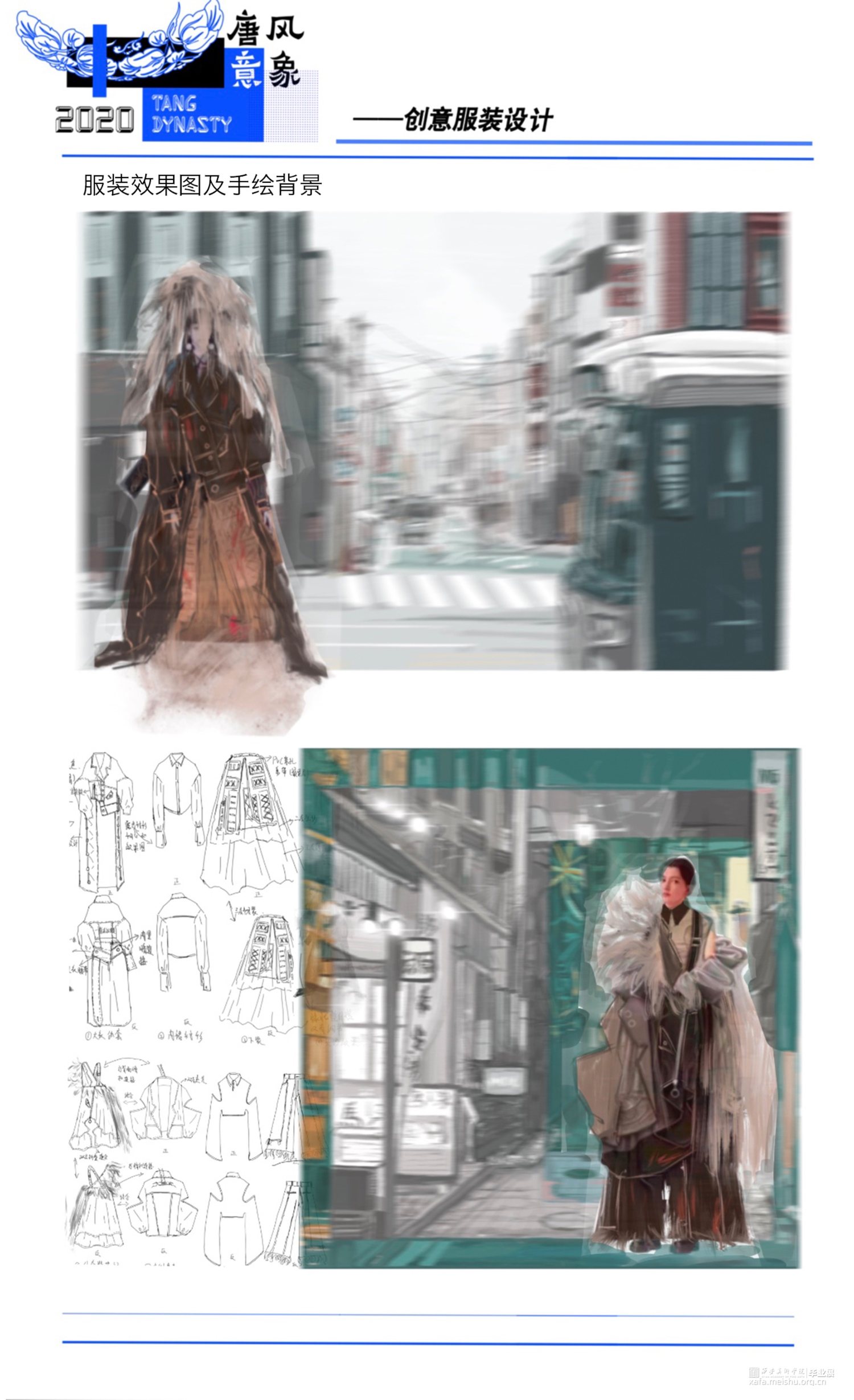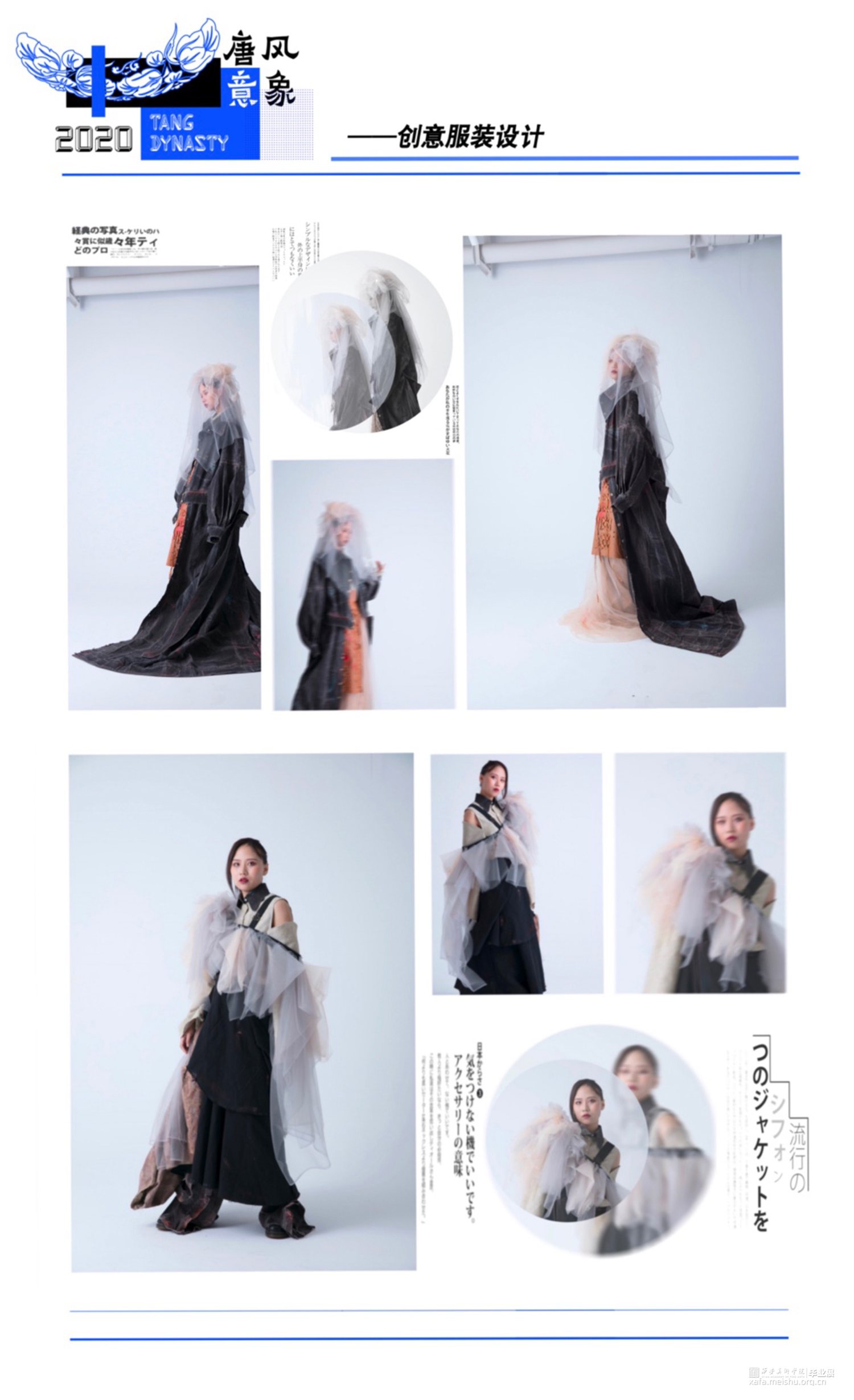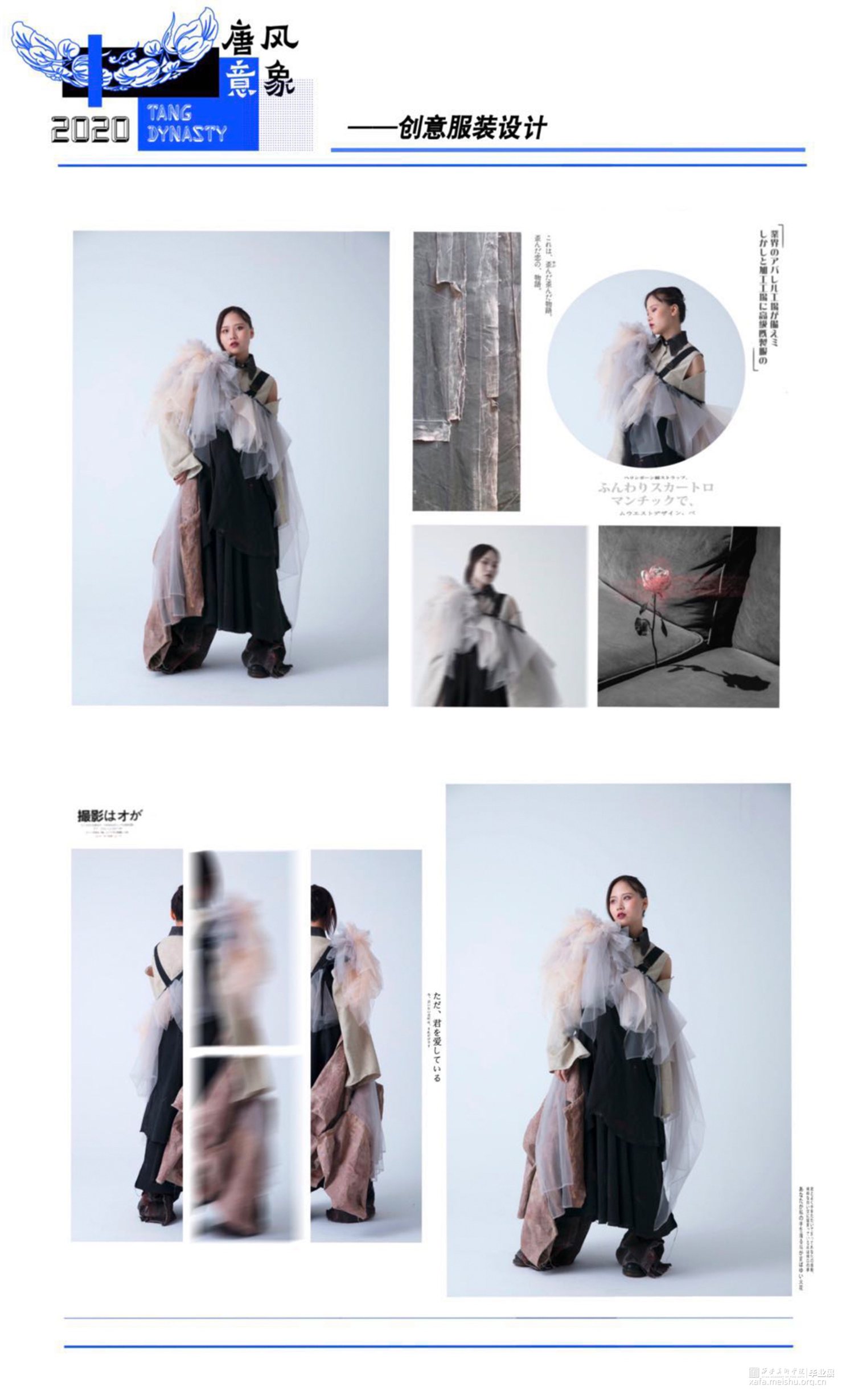 本次设计的灵感来源于中国铜镜文化,在设计过程中,将其经过岁月留下的斑驳痕迹与氧化后颜色进行提炼,用于服装面料再造,将其与服装语言相结合,再用做旧手法对服装整体进行处理,使得整体和谐、美观。