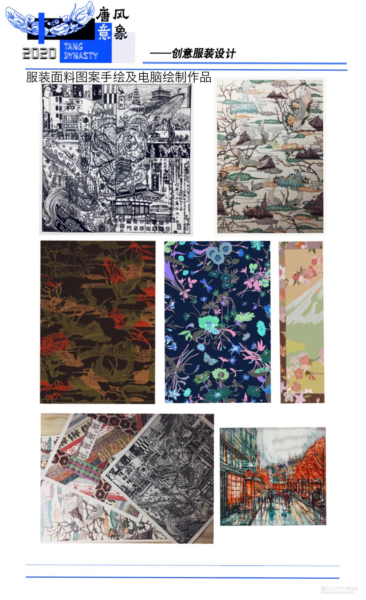 在进行设计的过程中,本人在服装自身的结构与服装语言中融入铜镜元素,从而增加其美感。比如,在设计服装整体款式时,在不改变其样式的情况下,用铜镜表面经时间氧化后的掉色感,使服装面料整体有褪色感,使其更具细节。服装需要通过服装面料来展现自己的风格与色彩,因此在其与唐代铜镜元素结合的过程中,就需要设计者跳出原有的服装面料色彩和质感,重新进行组合。故此次设计通过一定方法使服装面料在不同的状态下呈现出新的视觉效果,在清晰的定位下充分满足大众的审美需求。
