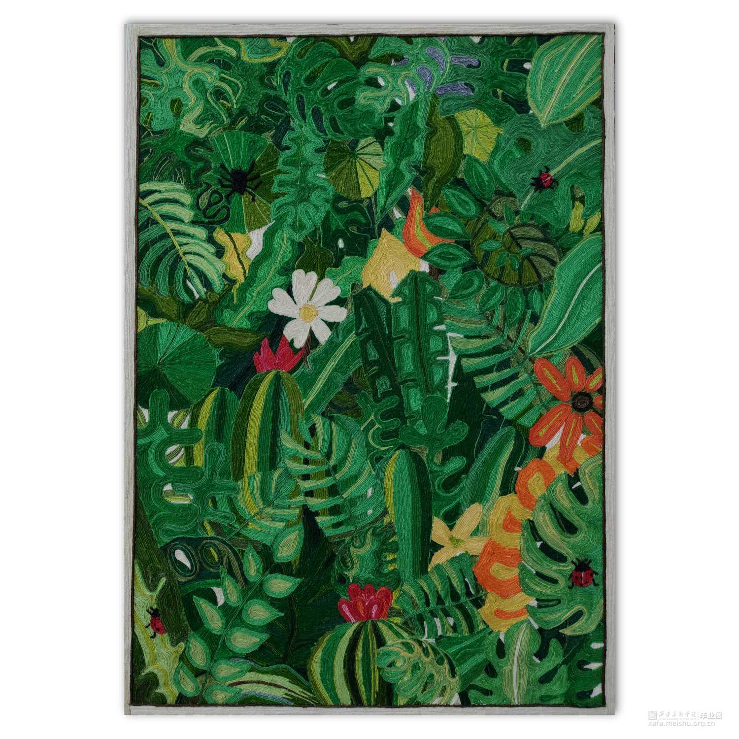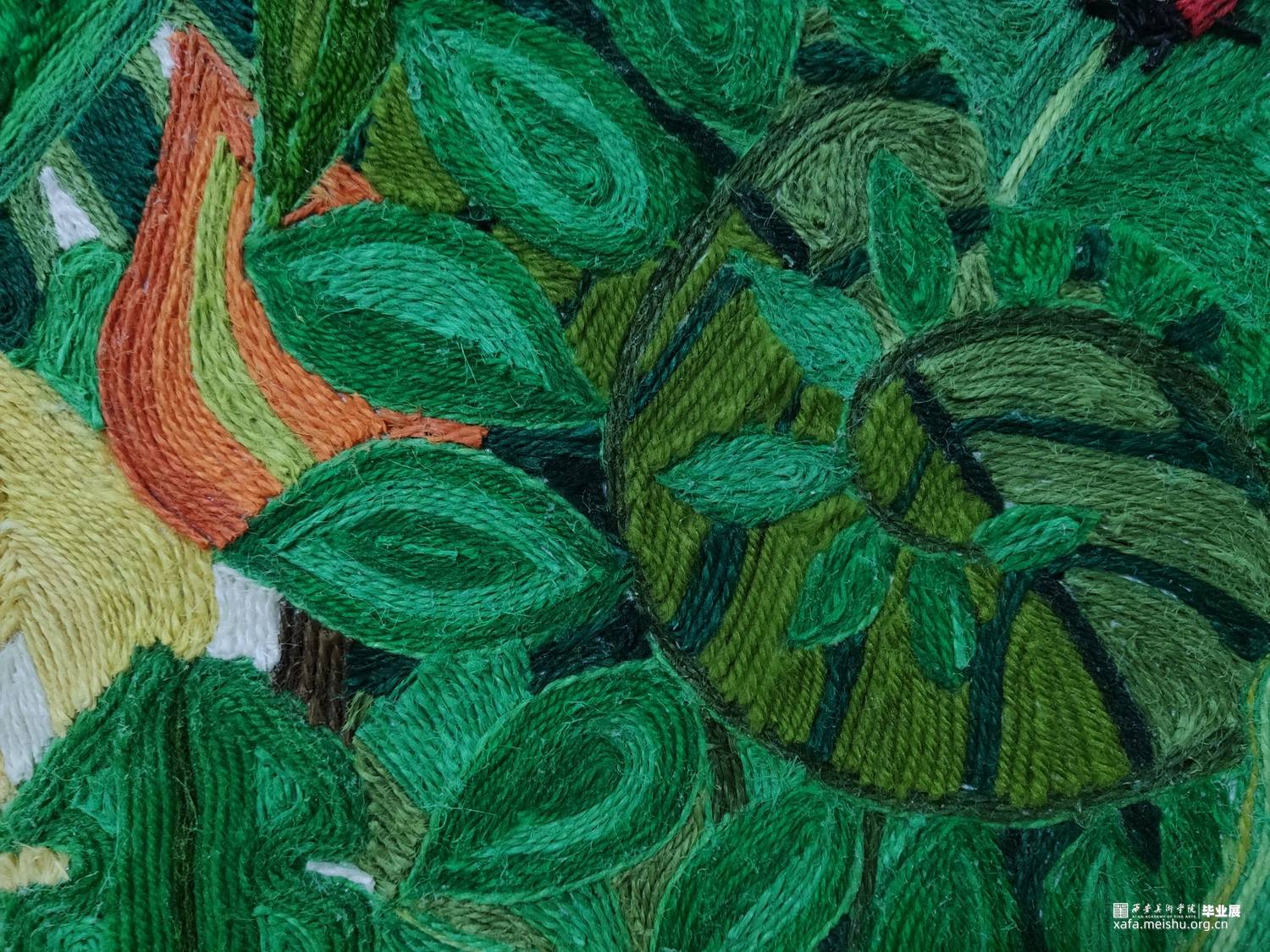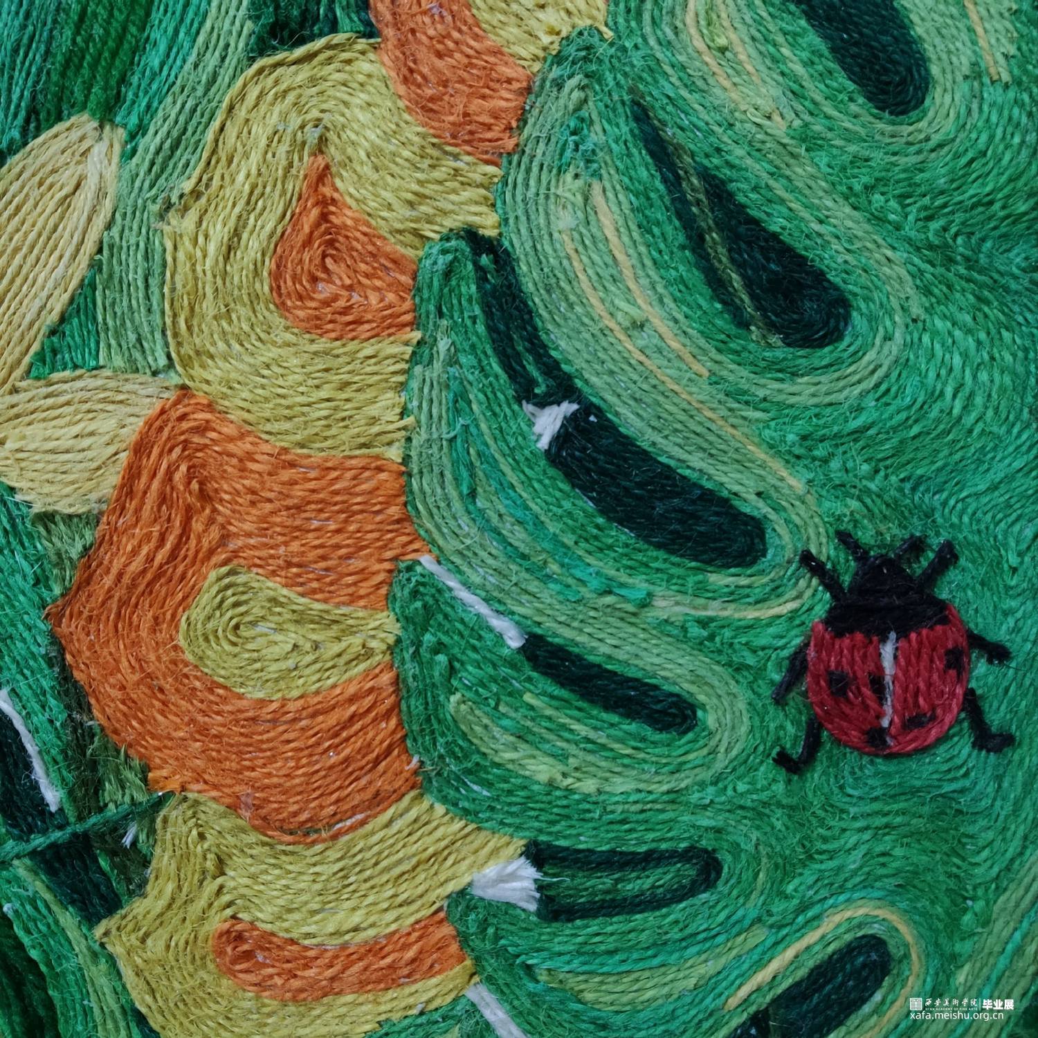 《纤迹》是一件纤维艺术作品,运用麻绳和毛线进行设计制作,色彩上营造出一种生机勃勃的氛围感。通过这件作品想要表达的是:呼吁人们必须行动起来,保护环境,保护大自然,保护生态平衡,保护我们的共同的家园!