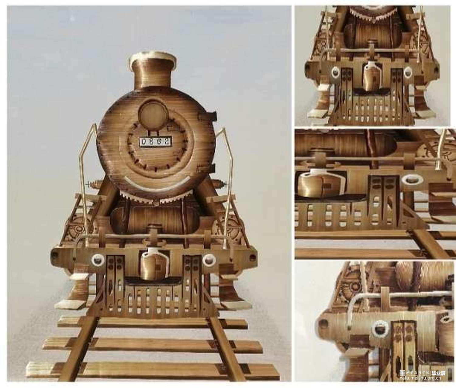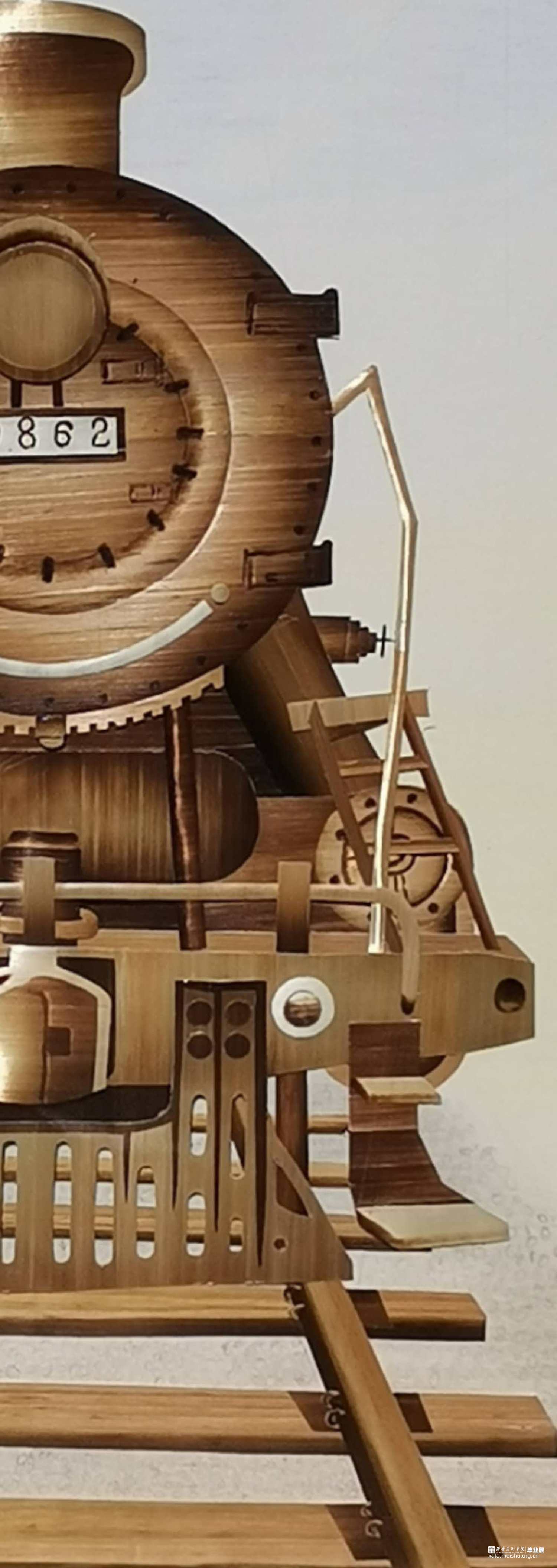 《记忆》的灵感来自于童年时对绿皮火车的印象。作品运用麦秆画工艺创作,用火车头的形象表达了勇敢和开拓的精神,同时追求对传统麦秆画的传承与创新。