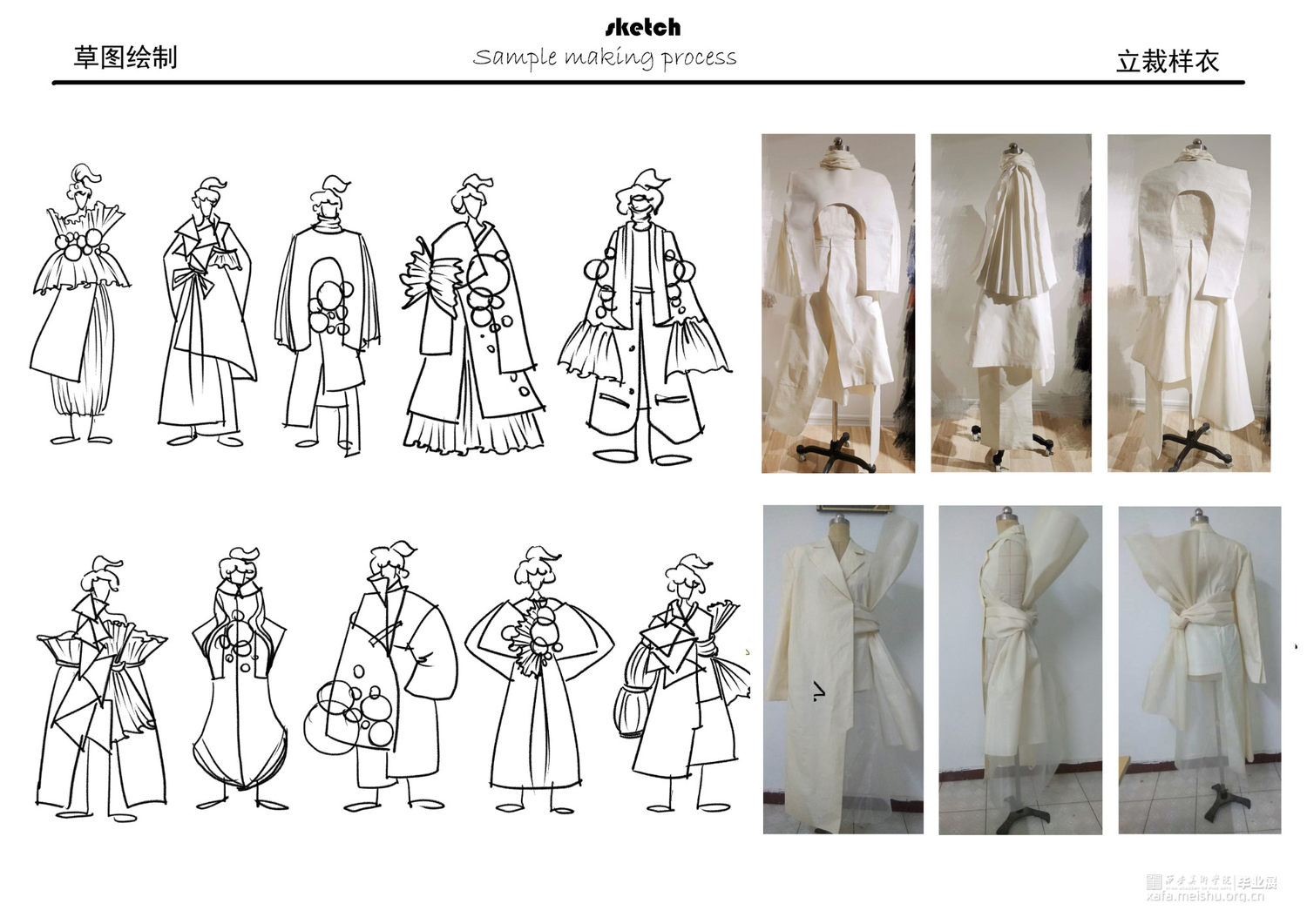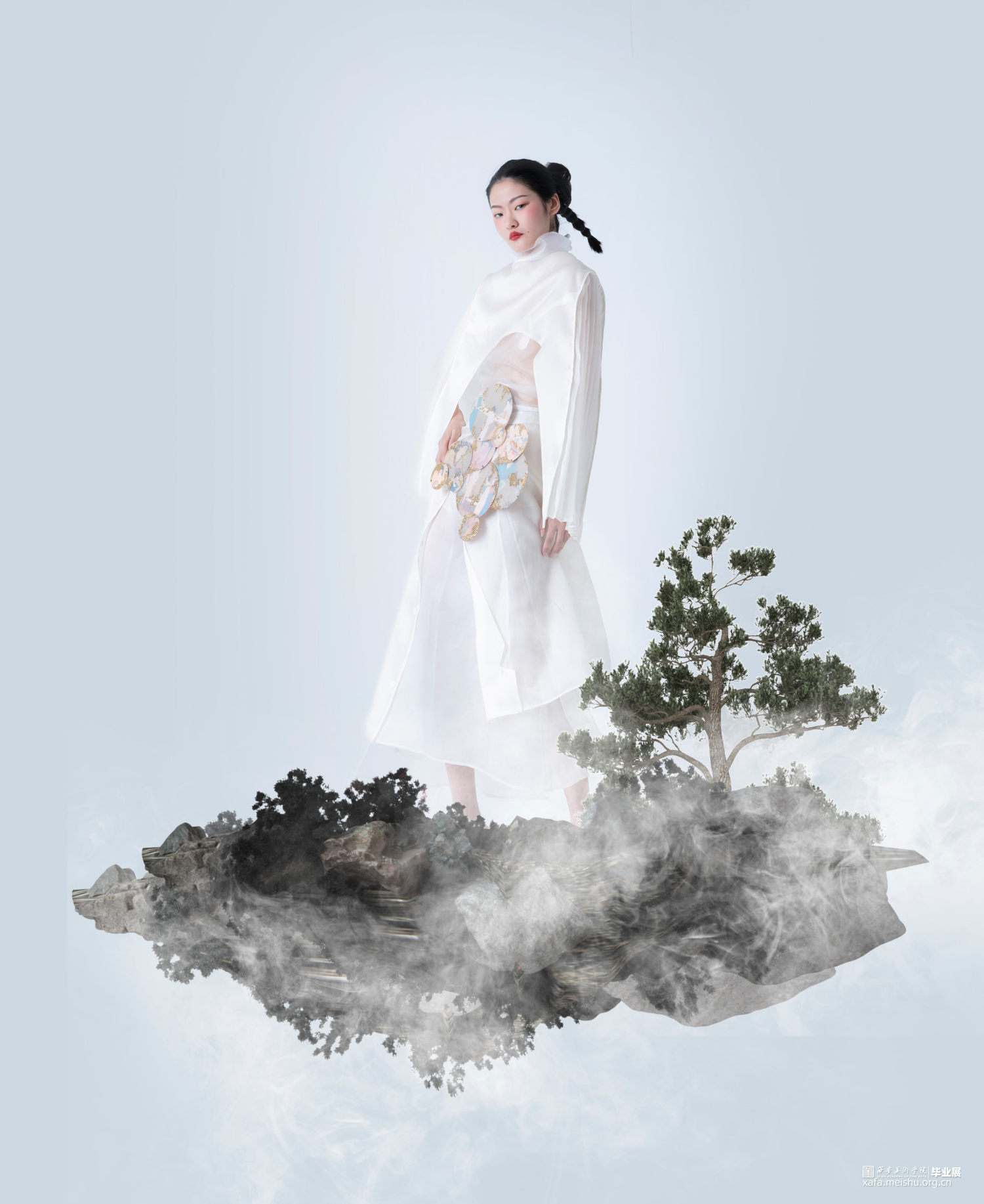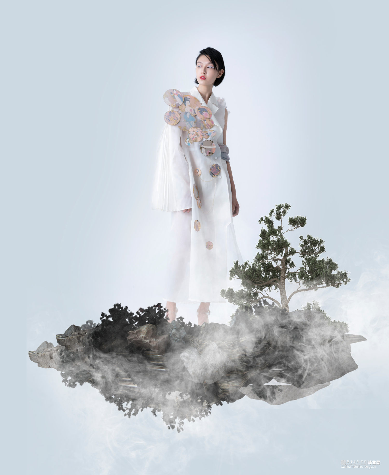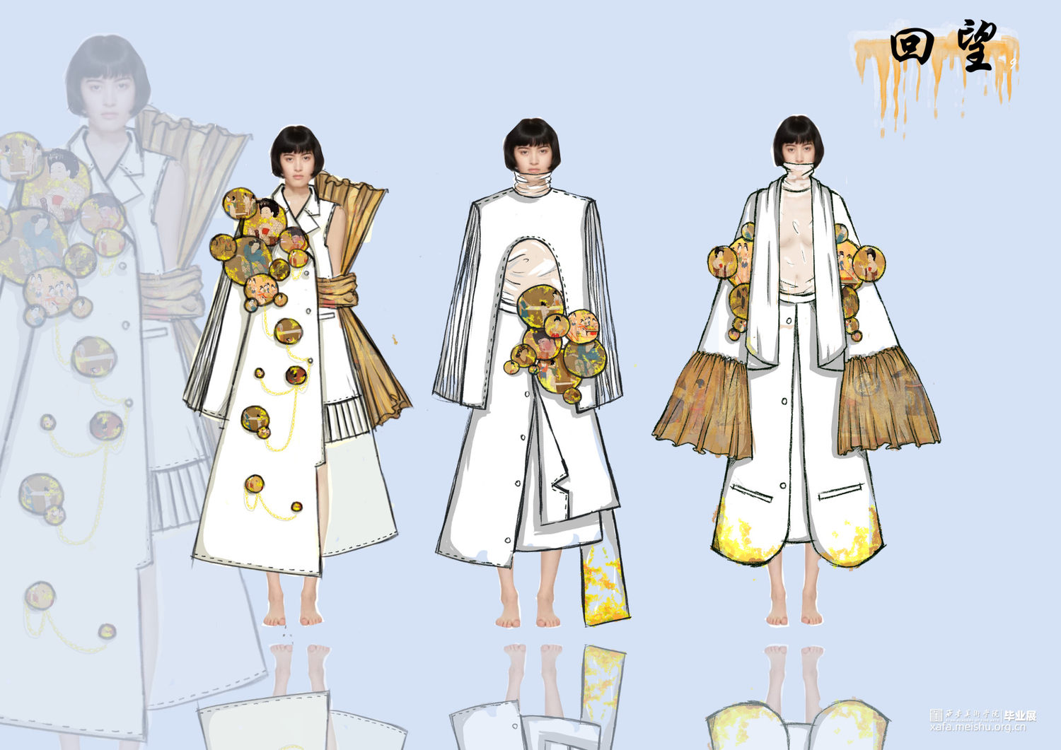 本作品灵感来源于唐代绘画,将唐代绘画与现代数码印花和PVC材料巧妙结合,想让人通过本作品回望唐代绘画的风采,展现唐代女性的时尚之美