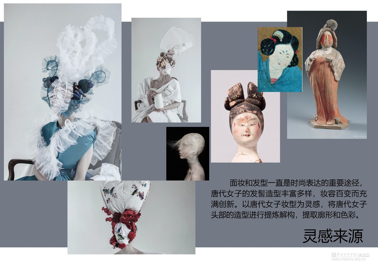 从唐代女子妆型中汲取灵感,将发髻轮廓、妆容色彩融入其中。
