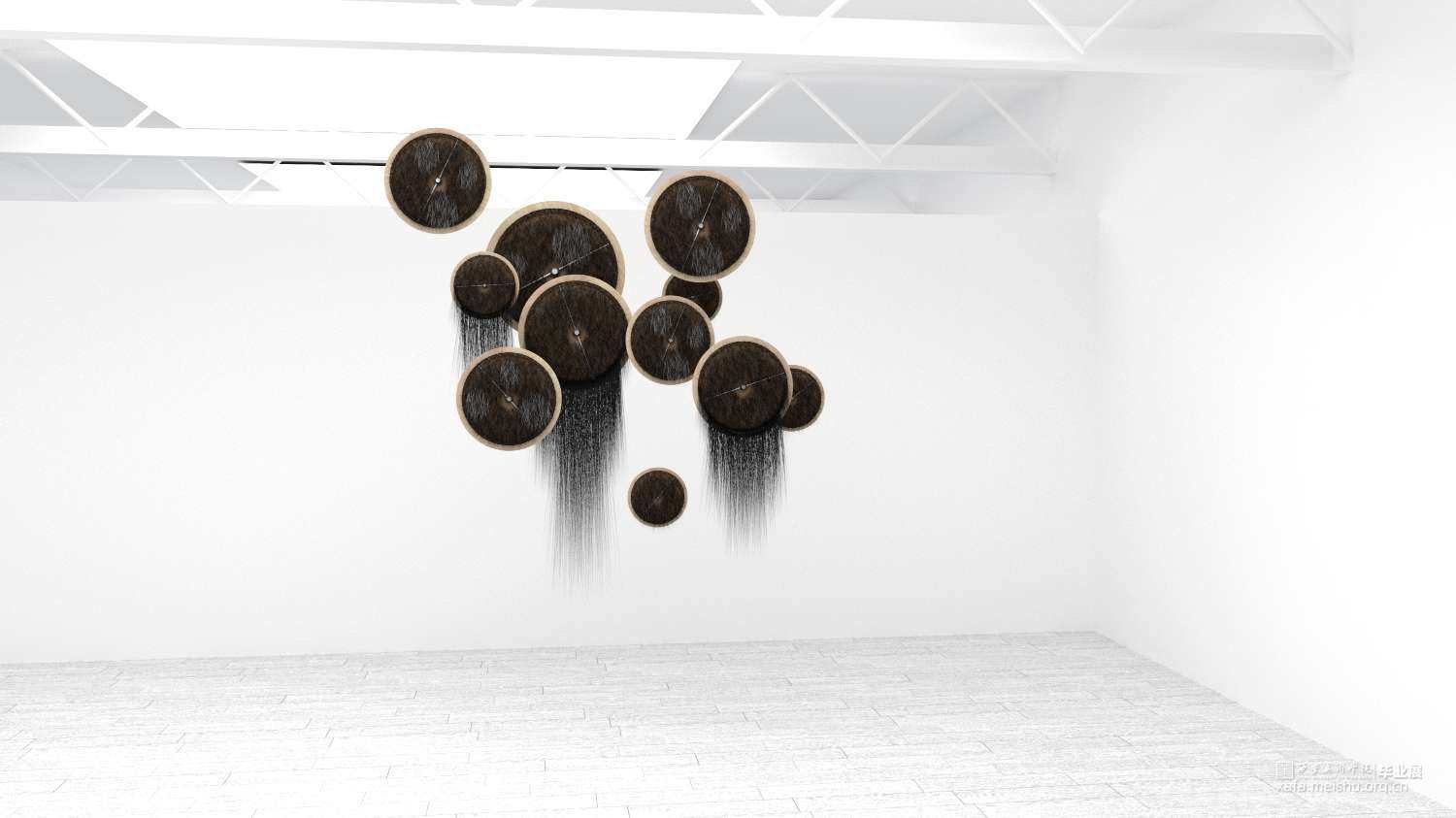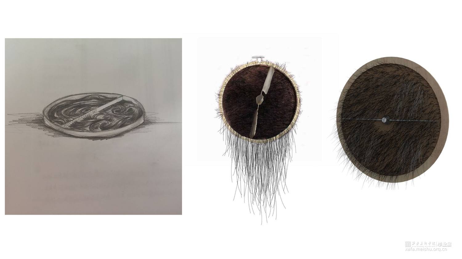 此次创作灵感来源于早晨起床后梳头的动作,注意到了头发这种特殊材料,于是我开始回想我所能接触到生活中头发的形态。