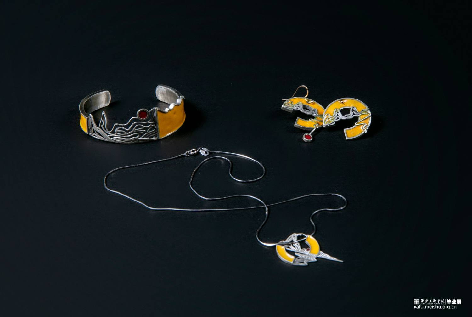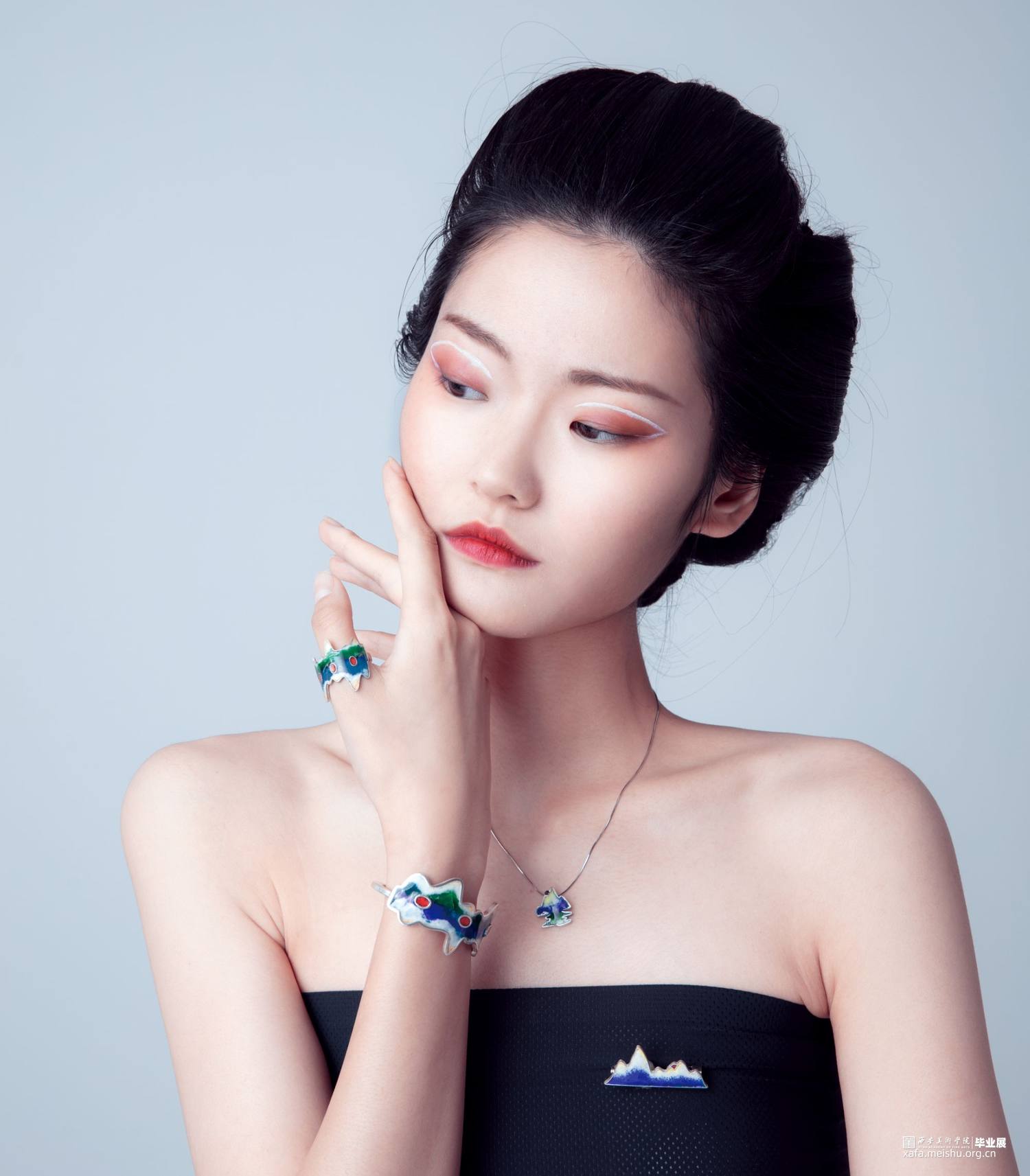 山水及重点由山和水组成,在整体的造型设计上运用古风为主,加入现代首饰的处理小细节的用法,使其完美结合。