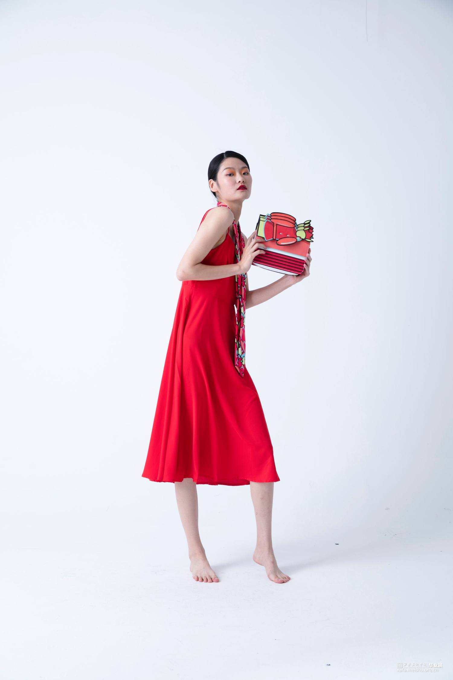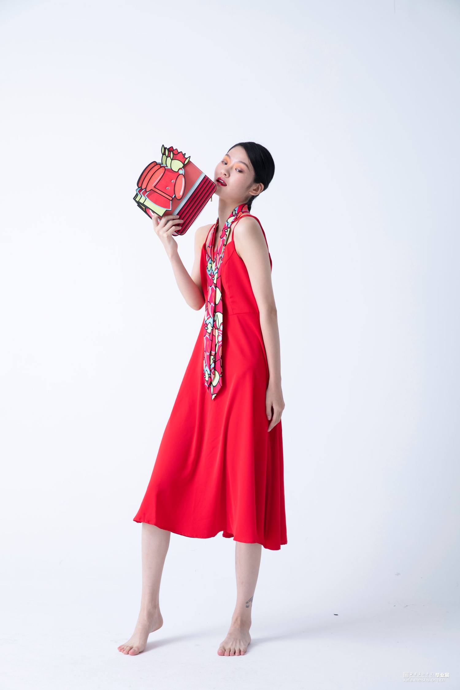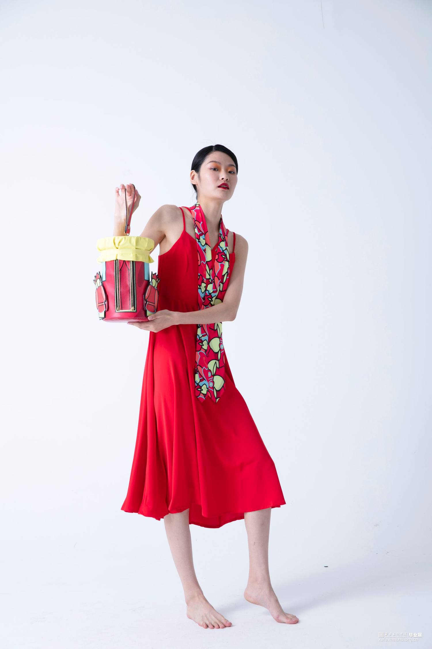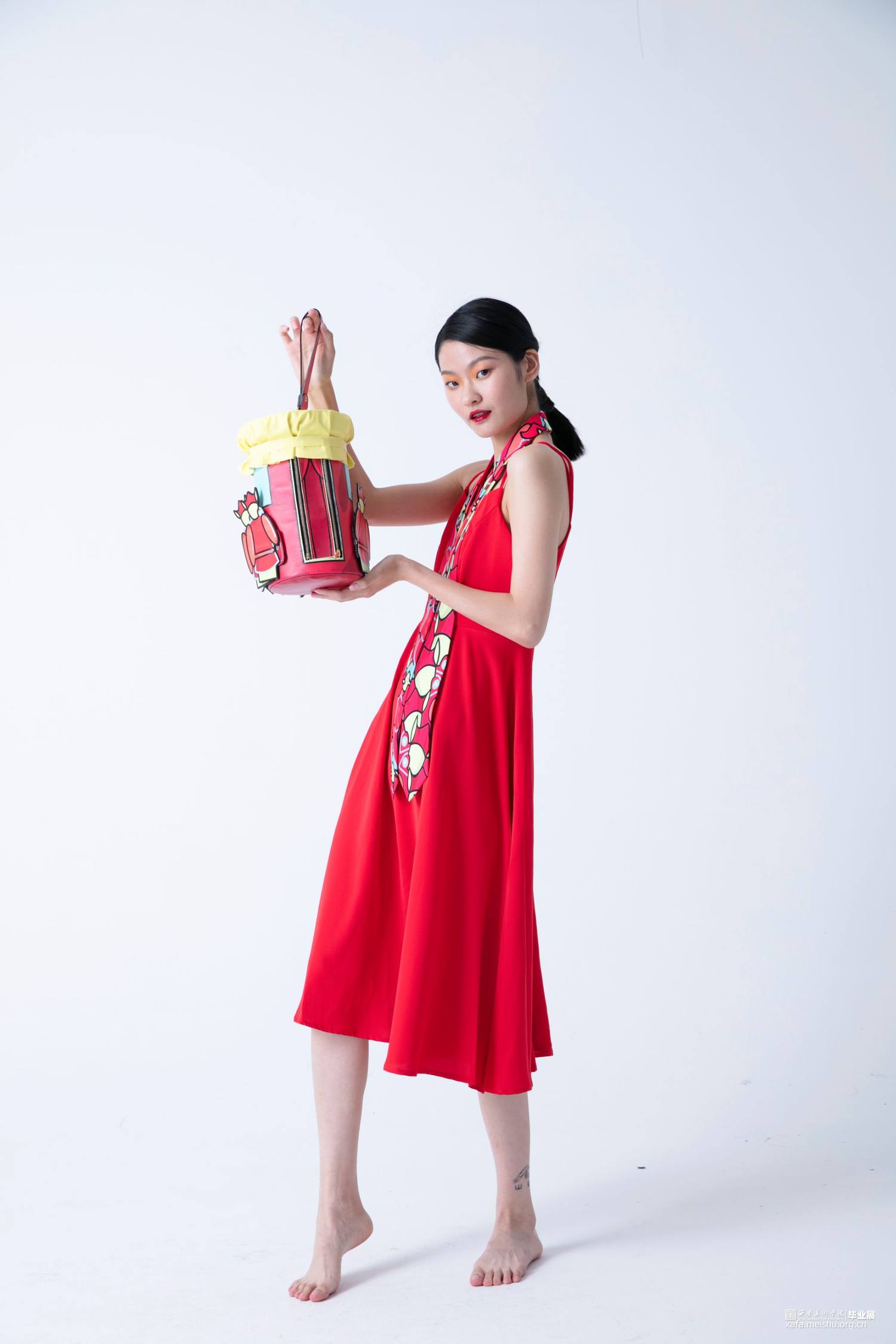 在《喜•人》系列中,设计师提取毡车车夫、花轿轿夫、障车的人群形象,加以扁平化、卡通化处理,凸显热闹与活力。并以毡车、花轿在婚礼中的形态、空间结构和装饰手段为基础进行箱包系列中的包体造型设计。采用卡通风格将中国传统婚礼文化中偏沉稳的色调进行明度和纯度上的提升,以鲜艳的色彩和撞色设计凸显现代婚礼文化偏重的热闹喜庆。用简洁的描线和区域明确的填色,使人物形象更显单纯,承载着婚姻、爱情的纯洁美好之愿。
