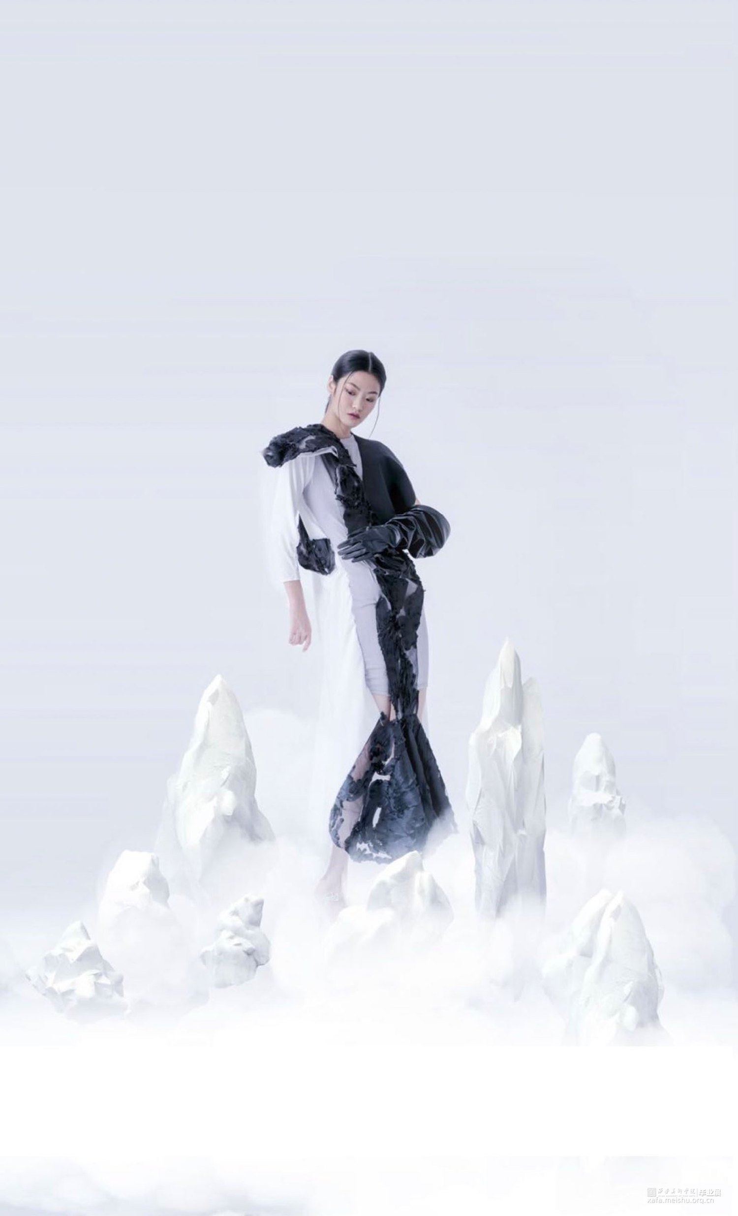 作品造型通过对实验影像的拆分和重组,展现人与社会、人与空间、服装与空间的微妙关系,运用解构主义,将服装造型的基本构成元素进行拆分,组合形成突出的外形结构特征。
