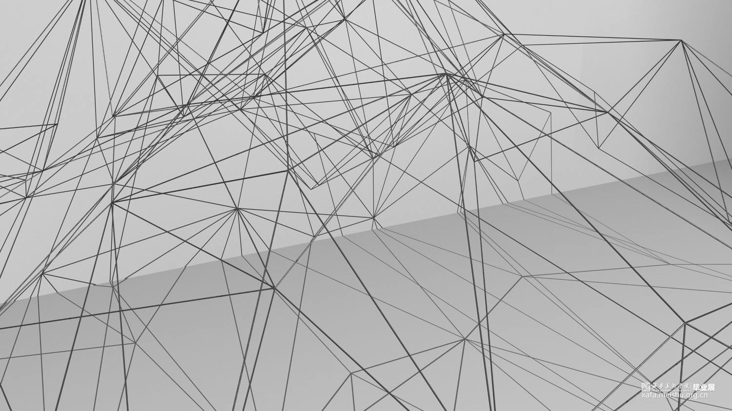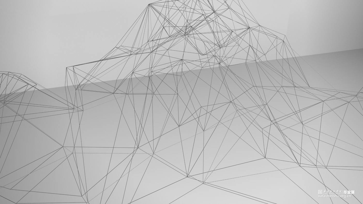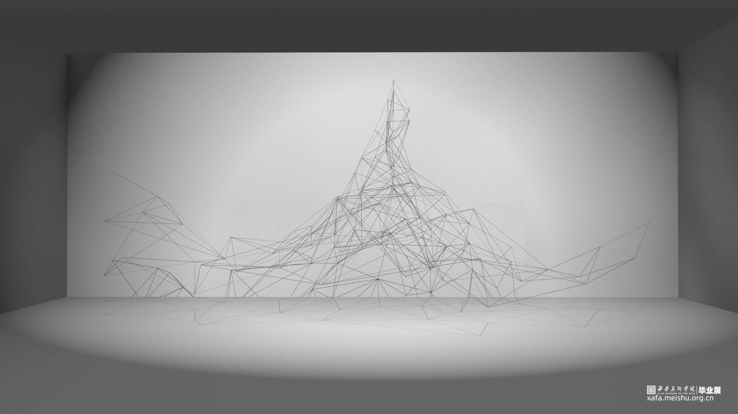 接着,我想进一步加强作品的沉浸感,虽然最后的方案三与上诉方案二并没有更深层次的挖掘,但进一步放大了作品呈现的尺寸,观众可以走进一个布满“拉扯”着的线的房间。此时他们正探索着自己的内心世界,以物质呈现超越物质的精神;他们可以清楚的看到自己的焦虑,以精神升华现实世界的虚无。