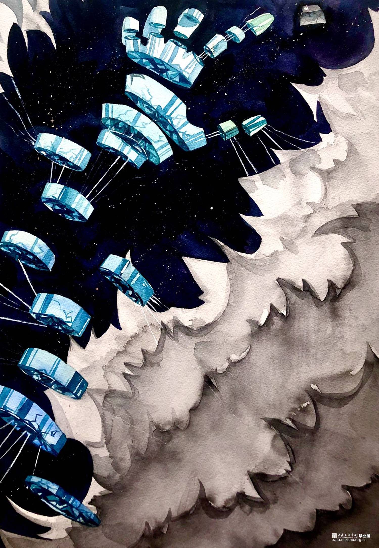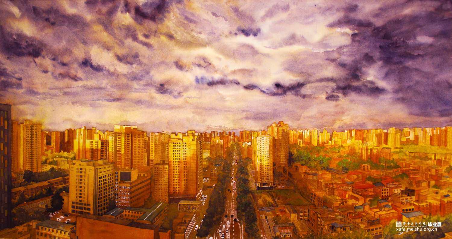《夕阳下的城市》 取景,从学校看出去的场景,是黄昏时一场雷阵雨过后天空虽晴但云还未散去的场景,在今年这个特殊的情况下,我们无法回到学校看到一样的风景,但可以把当时的场景留在这里。
