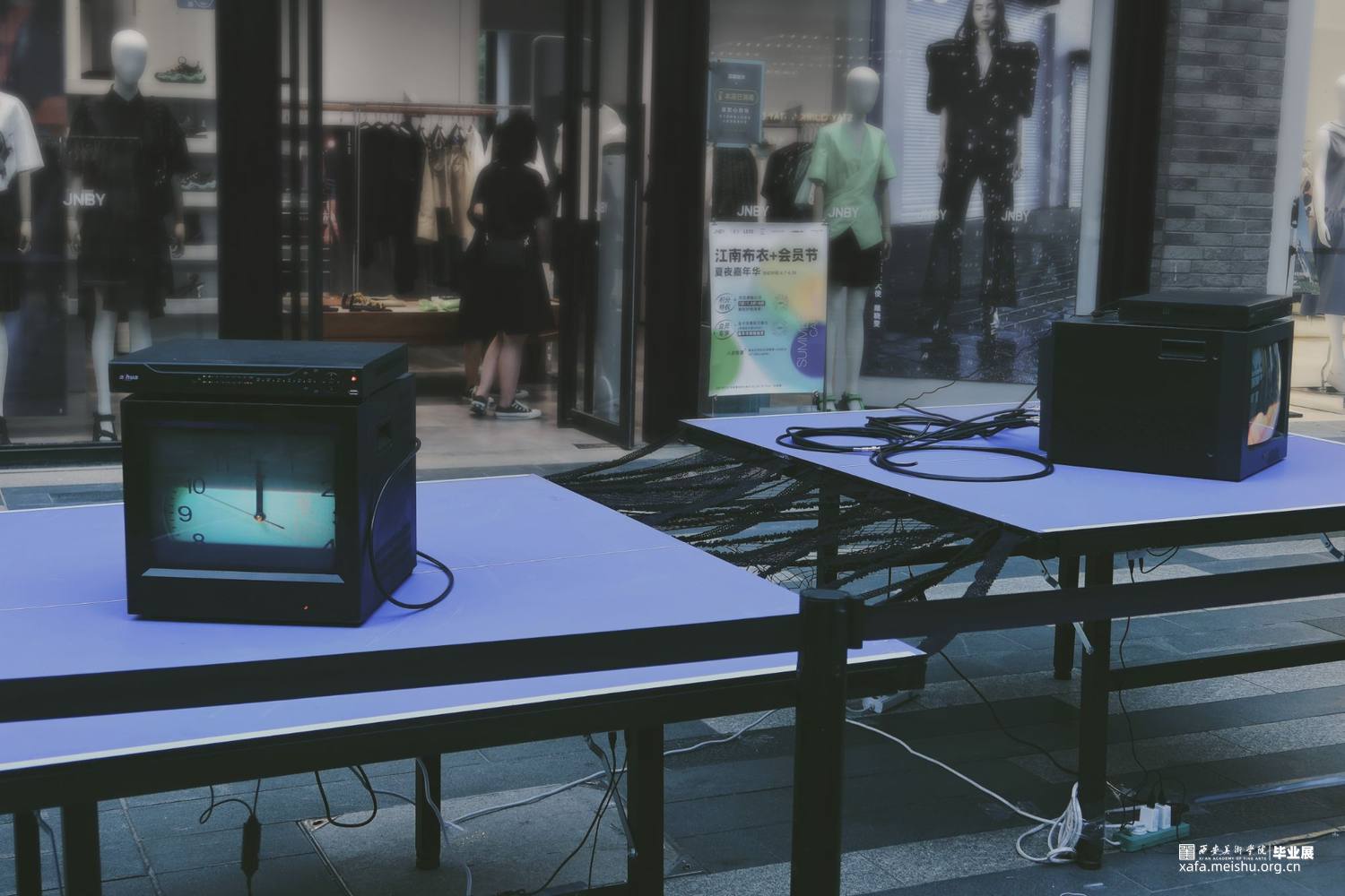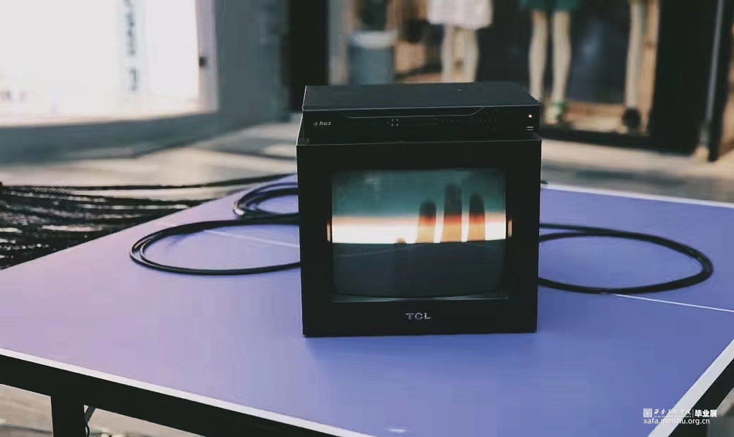 我的作品是影像装置的呈现方式,以女性在青春期时期出现的焦虑感和羞耻感为灵感来源。两侧的以隐晦的手法呈现出了在成长发育过后女性身体的变化继而引起的心理变化,不仅仅是对于性羞耻的难以言喻,月经,青春痘与胸部的发育等都让多数女性感到内心的羞耻而难以开口。女性不敢在公共场合下大声讨论这些“敏感”的话题,把关于女性特有的话题当做是伊甸的苹果圈起来视为禁忌。另一视频则代表我对此现象顺其自然坦然对待的态度,如花开花落,顺水流走,时钟一秒一秒的逝去,这都是在以暗示的手法表达顺应自然,清净无为,尊崇事物发展的自然规律不应压制人的自然本性的老庄思想。装置是由割裂的乒乓球桌和织物构成,乒乓球桌本身带有对抗对立的含义,是对莫名而来的羞耻心得一种反抗表达,而撕裂开的织物则选用了网袜,毛线,蕾丝和少量的头发具有代表女性的材料,在这种撕扯的力量下,女性以一种柔和又不失坚韧,具有独特的女性美但又不包含任何色情的形象成为撕扯的中间地带,成为家庭的纽带,社会的桥梁。女性具有自身独特的力量和美感,和无法替代的社会价值个人价值,不应为任何包含富有女性色彩的话题事物而产生一丝的羞耻心。