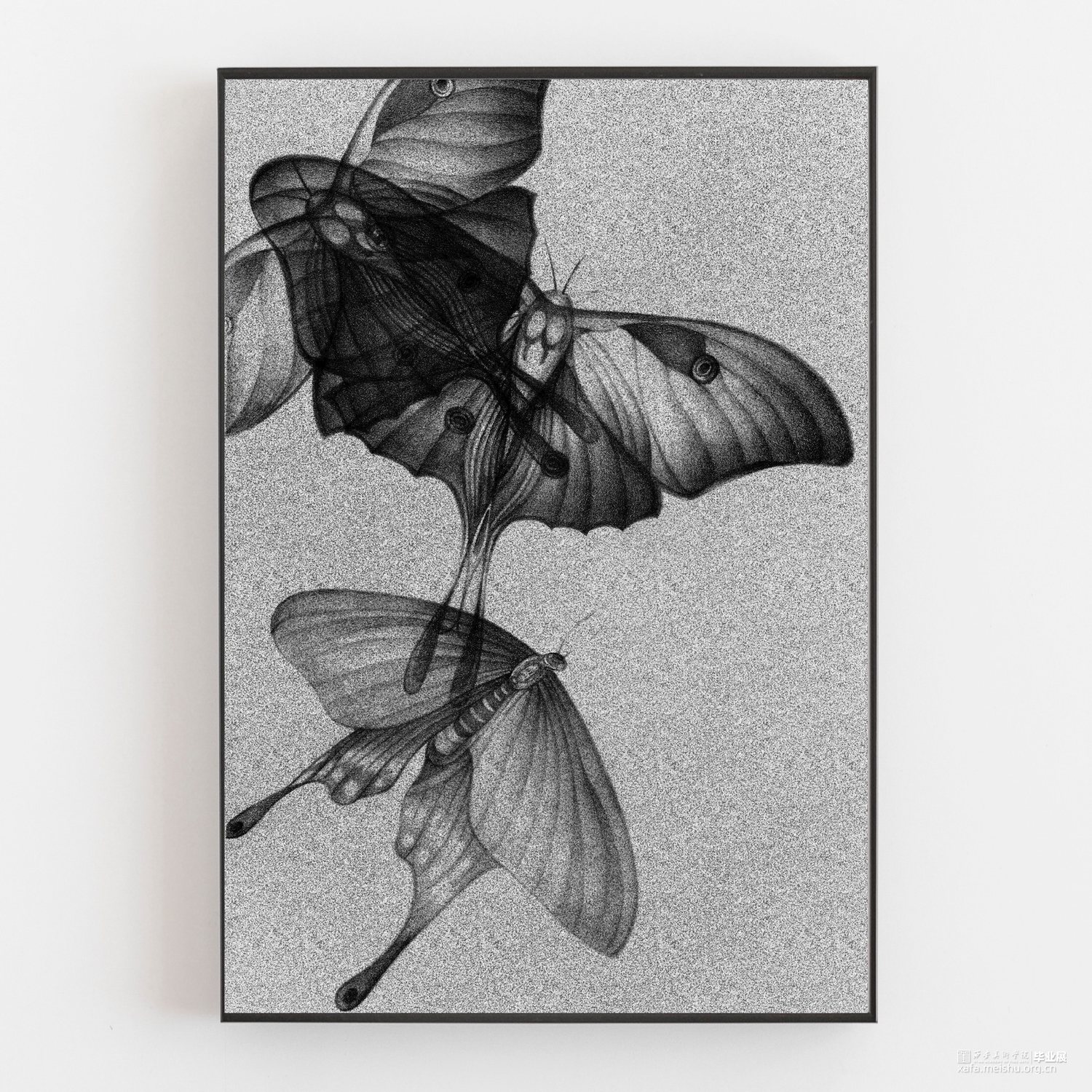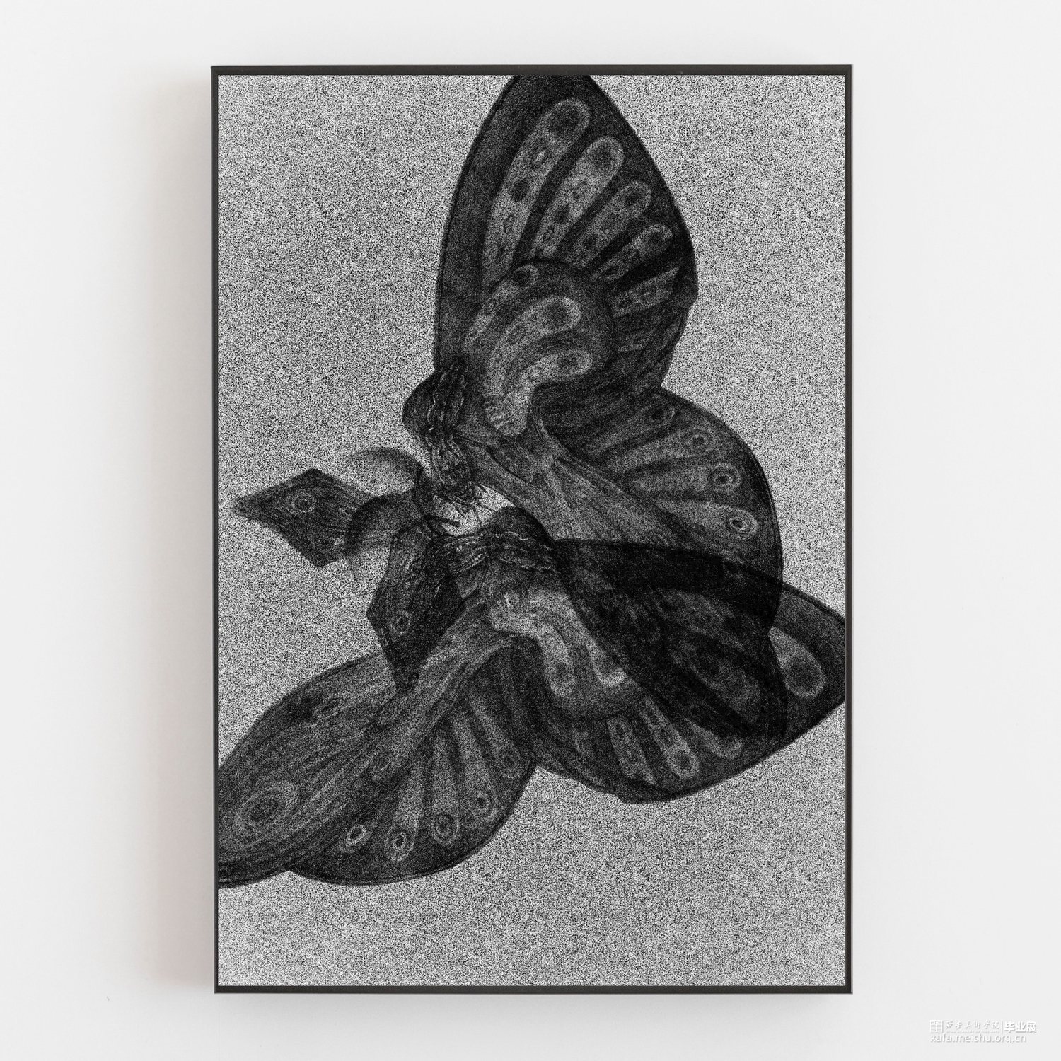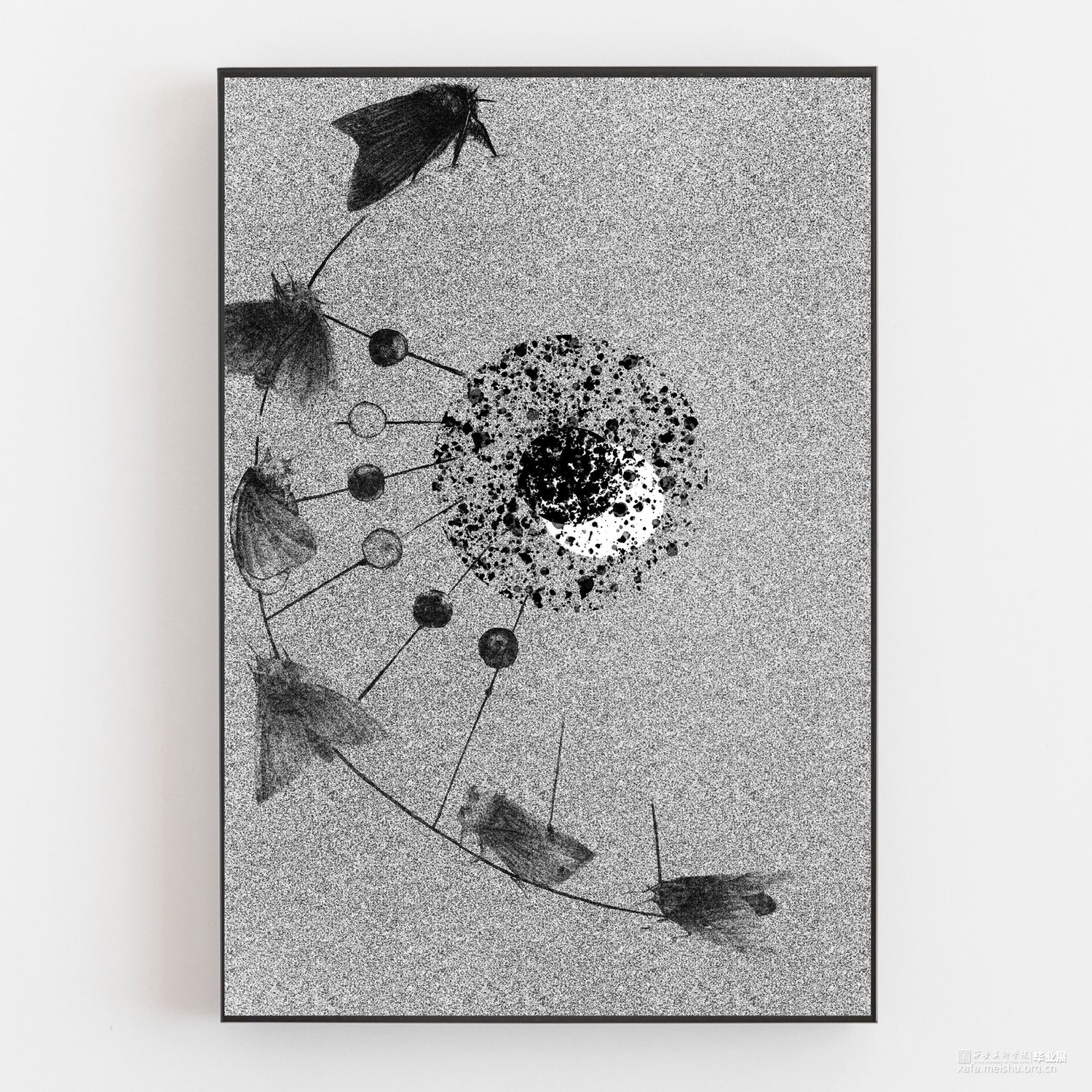 《嘈杂》《insignificance》这一副创作中,破卵而生的我们自由的飞翔,交织在一起,没有任何规则可以告诉我们必须要做什么,这是一种无意义的状态,画面中大大小小的蛾并非是一种随意、胡乱拼凑的摆放,实则是经过思考后,有交织又互不干预的不同个体。正如同这一阶段时,人们好似匆忙,却是在四处游走没有终点的旅途上。