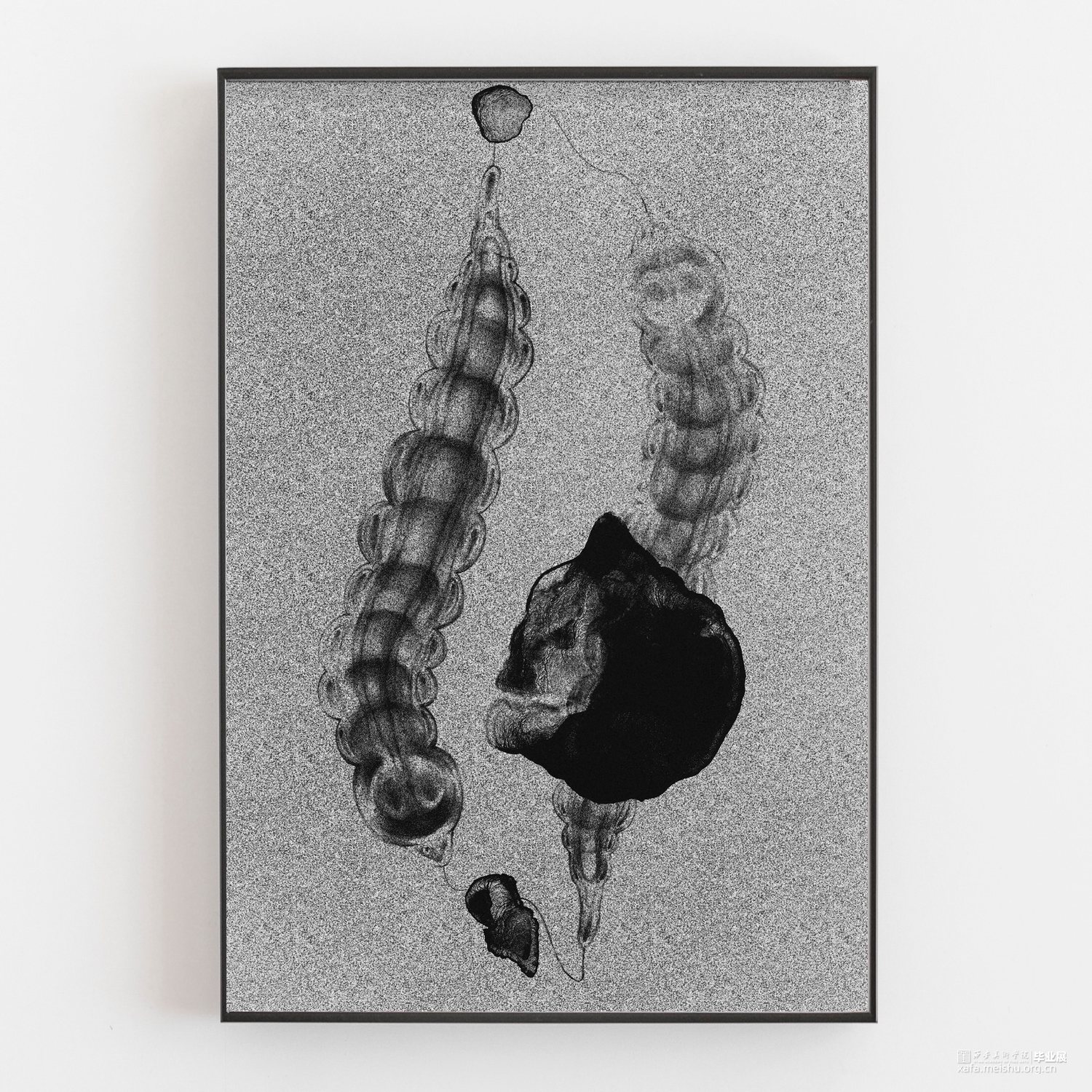 首先《源!》这一副创作中,以一个不规则的圆形为主,层层相叠,画面的产生源自于蛾子这一生物是由卵出生,我在想卵的横截面中就有了一个开始形成的生命,生命被一层层的保护膜所包裹住,就像树的年轮一样,正是有了最初的存在,才得以生长延续。世间万物,都由一颗种子渐渐发育,又好似女性生殖器。生命的初始存在是最具神秘感的,就是这种混沌的抽象的空间,我们由此而生,由此开始。