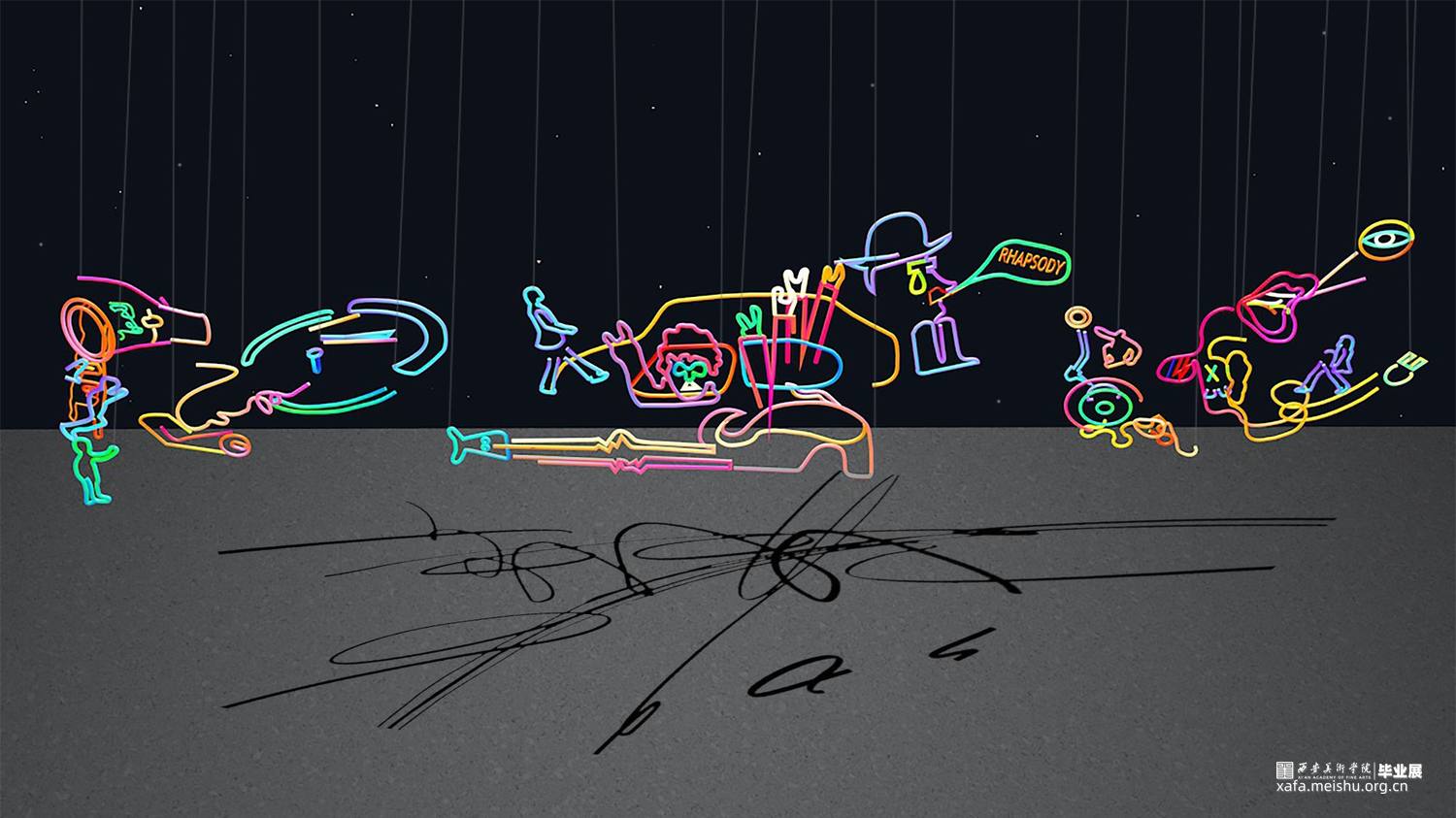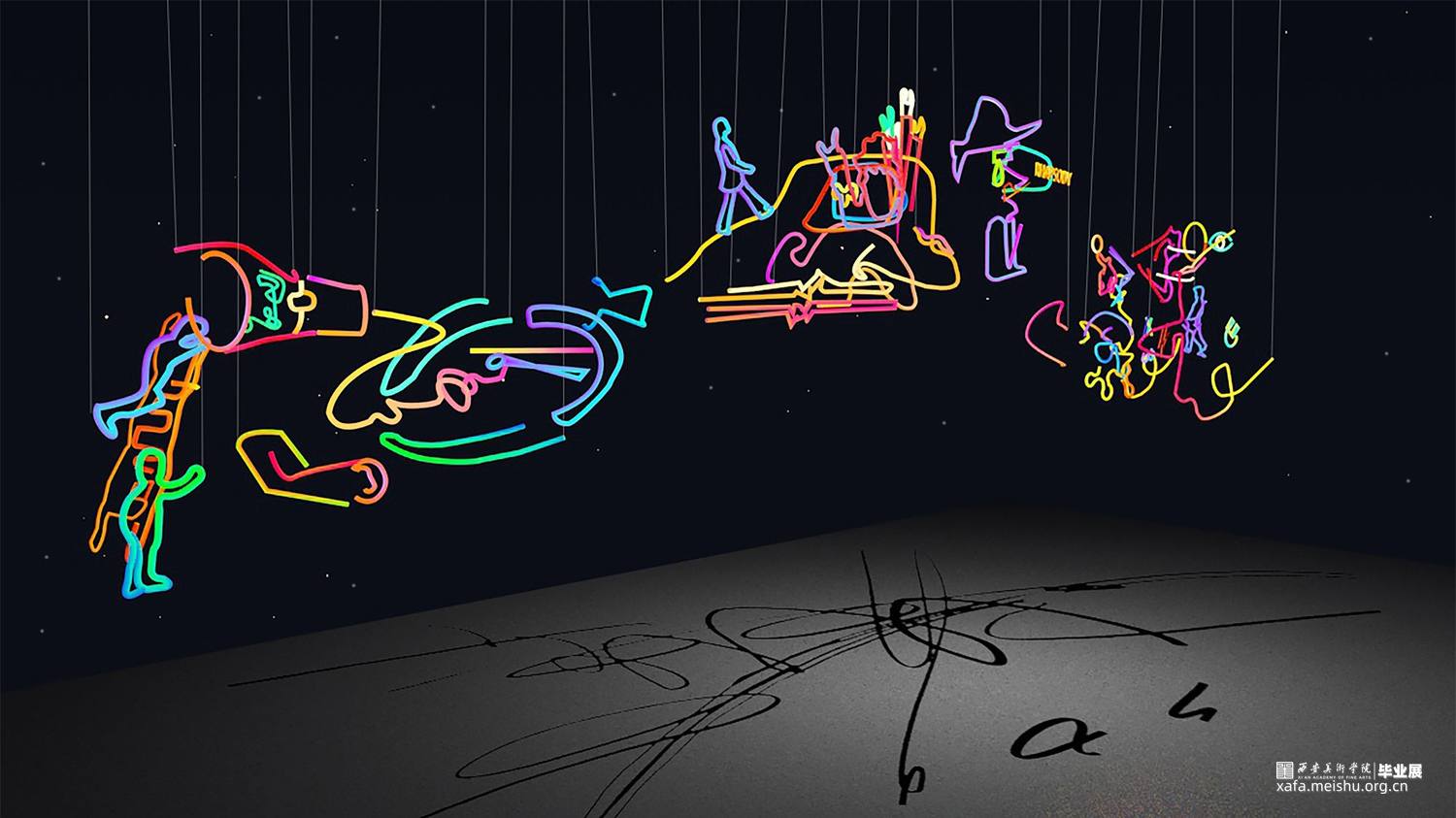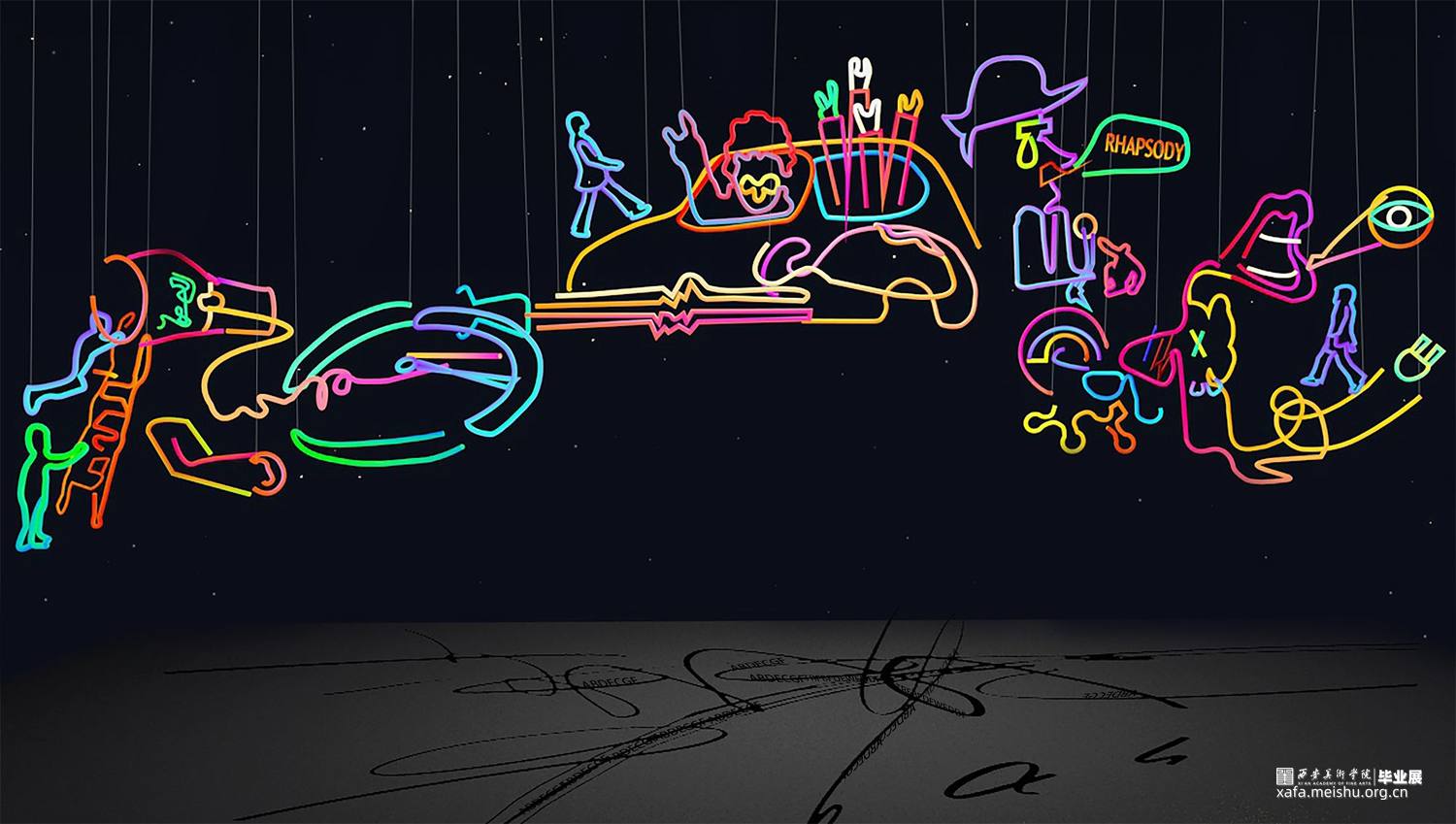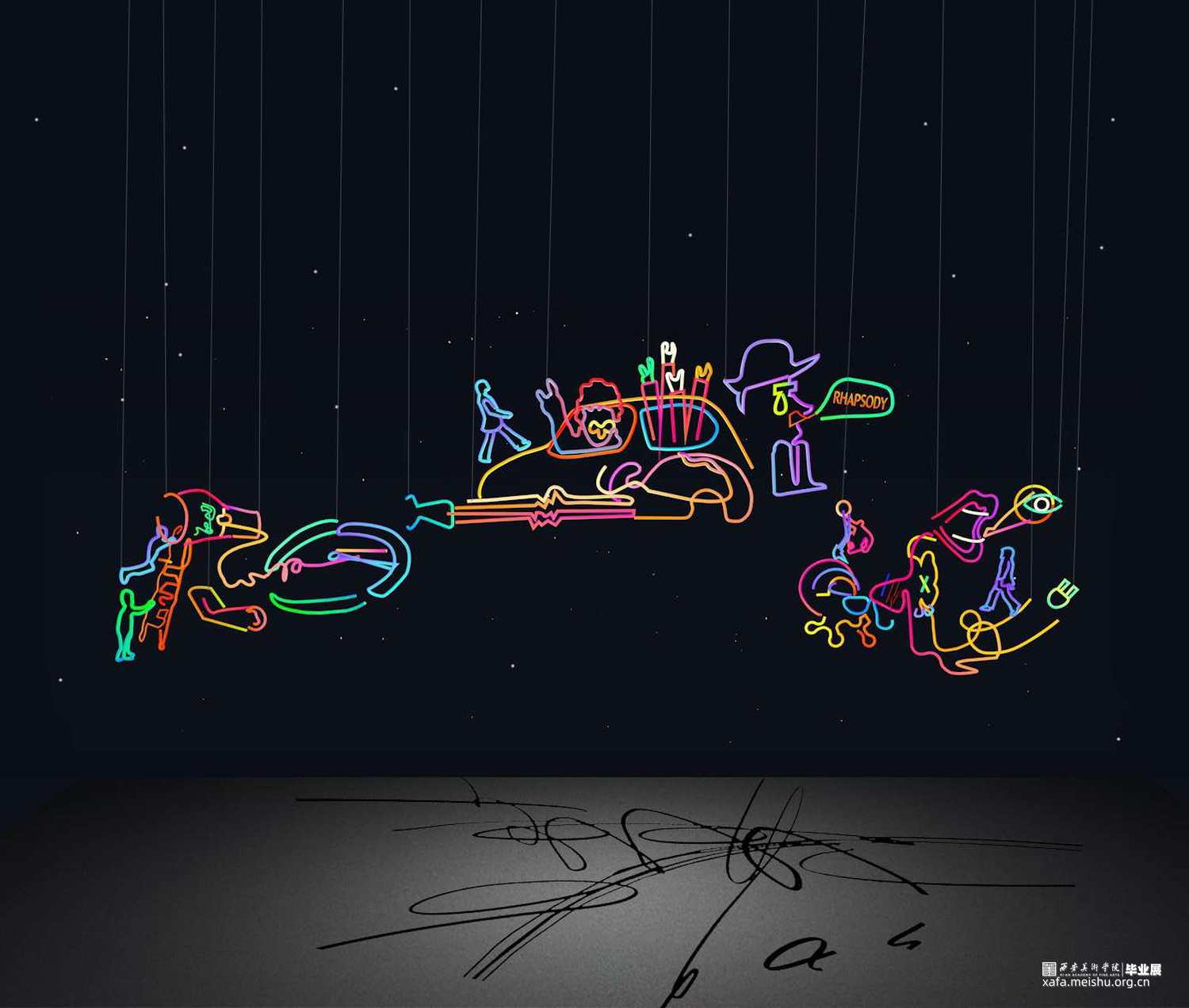 《光限制的边缘》,全景效果图;材质:玻璃霓虹灯;尺寸:宽230cm-高70cm