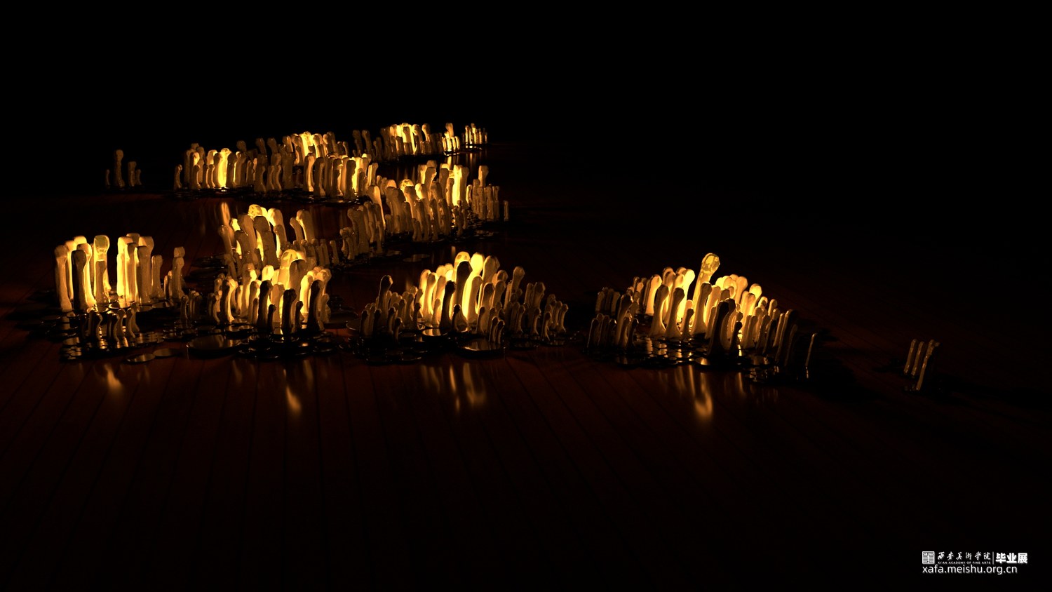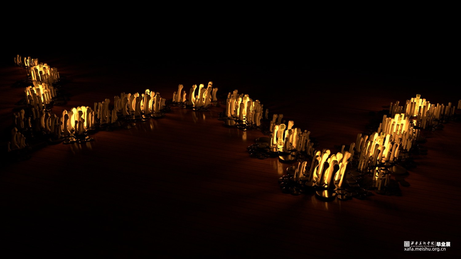 “大音希声”是由老子提出的中国古代文学理论中的一种美学观念,寓意最大最美的声音是无声的。当下,大部分人是生活在语音为中心的语言世界的,但他并不是语言唯一的样子。主流语言中说和听的方式是分离的,虽然便捷,却愈发难以将我们真正连接。这些语言带着未被察觉、自然而然的优越感。当你去听的时候,你,听到了吗?最终将我们连接的,又是什么呢?手语让我思考语言到底是什么,我们听到的声音是存在于我们的身体之内?还是身体之外?手语虽无声,但——沉默就是最有效的发声。《你听见了吗》这组作品以手指骨节为媒介,手骨作为我们身体的一部分,可是当它形成特有的语言体系时,是否还能为我们所熟知?作品用三种尺寸不同的骨节作为主体,在骨节内部加以灯光,通过手骨的造型与光影的结合来传达作品的观念,试图让人们去感受语言的温度和力量。