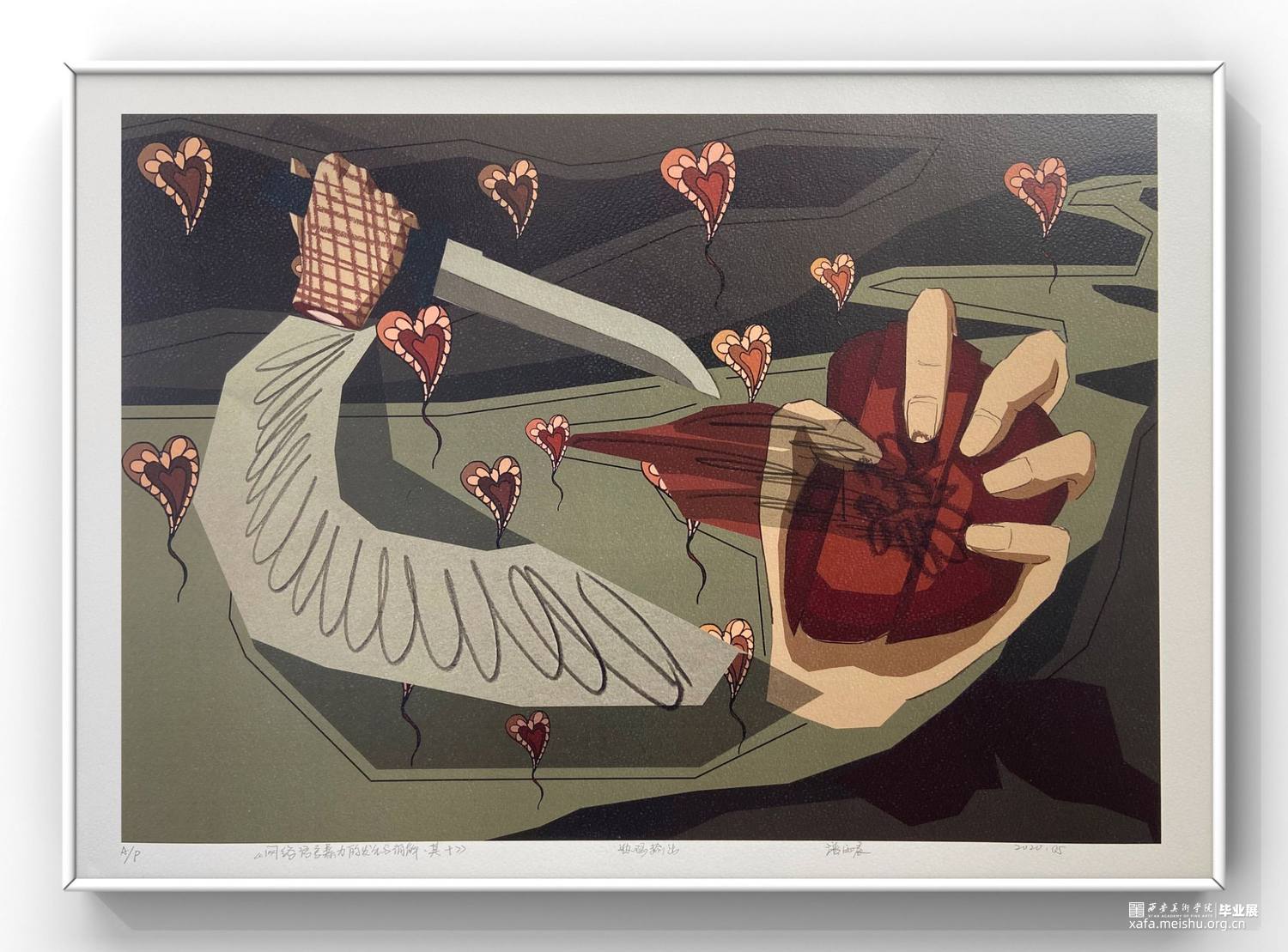潘雨晨 版画作品《网络语言暴力的发生与消解一》 42x29
