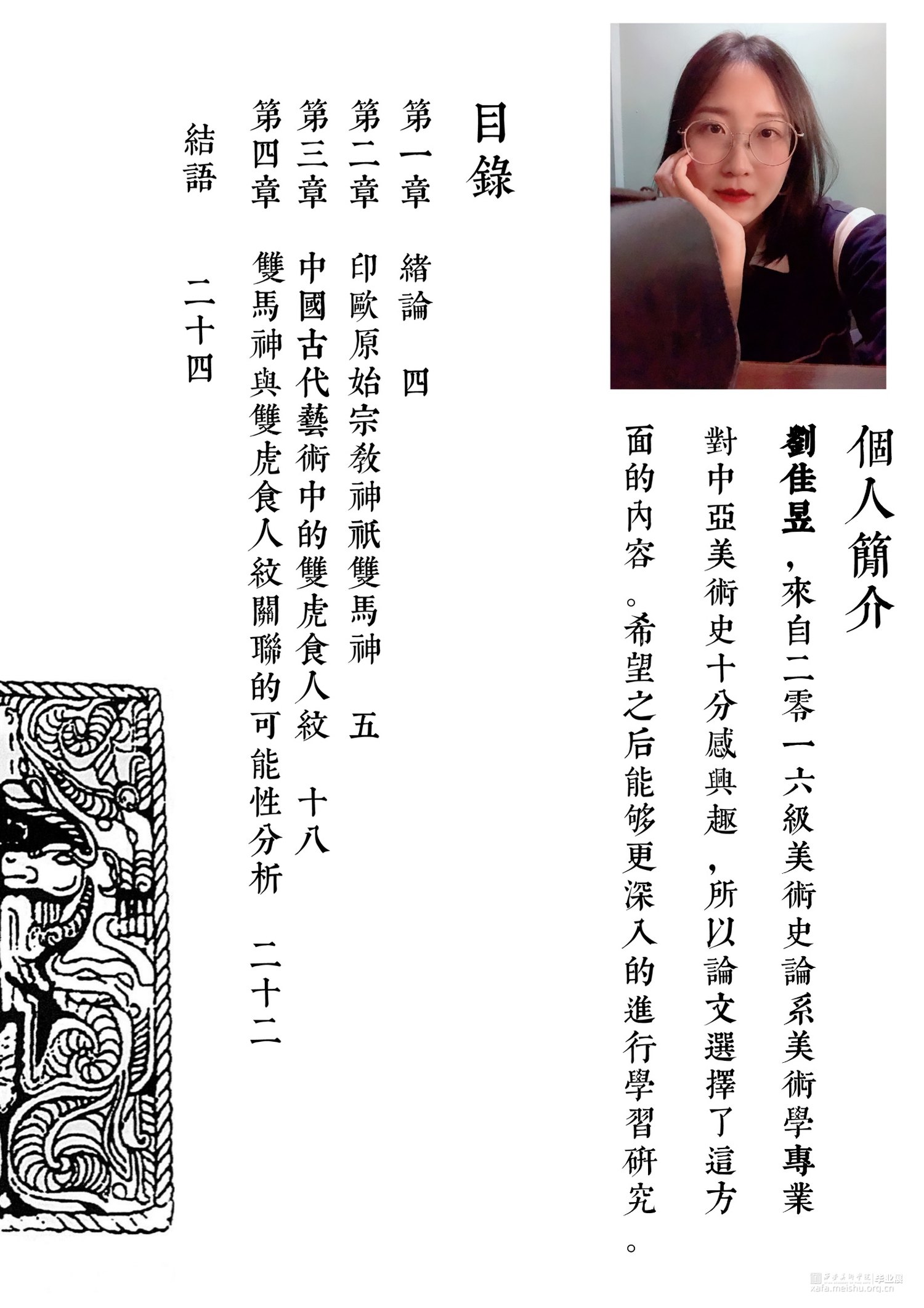 具体而言,“一人双兽”造型指的是“一人为中心,左右相向或相背而立一对动物”的器物造型。整体造型中的动物类别有相同和不同之分,而又以同种动物为主。双马神是古印欧语系多民族共有的原始多神教的神祇之一,其艺术造型属于“一人双兽”造型中的一种。伴随信仰双马神的吐火罗系统民族不断向东迁徙,其影响范围不断扩大至我国北方草原地区,与双马神相关的艺术造型也随之在中国境内产生了深远影响。双虎食人纹作为经常出现在我国古代器物中的题材,其造型特征同属“一人双兽”。本文通过以吐火罗民族的迁徙与双马神形象的传播为切入点,以及双马神与双虎食人纹造型的比较分析,对中外“一人双兽”造型的融合展开初步研究,继而由这个独特的艺术视角对中外文化艺术交流进行观照。