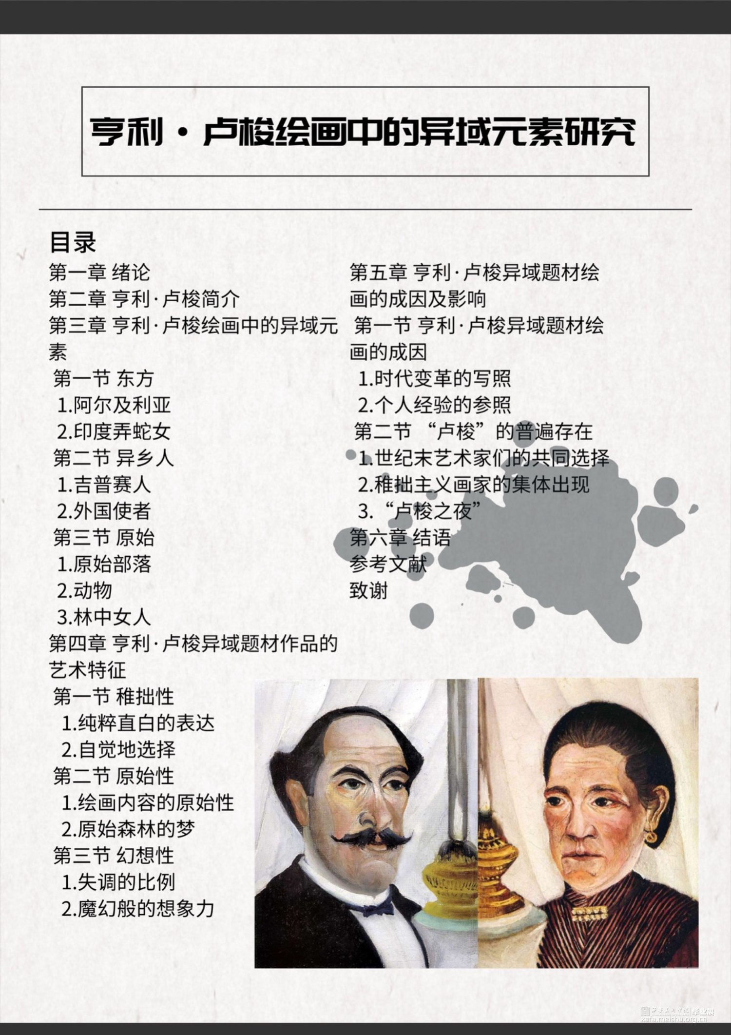 亨利·卢梭是19世纪末、20世纪初稚拙主义流派的代表画家,他的作品中充满着稚拙与天真,在他身上蕴含着偶然性与必然性,是时代下的缩影。异域元素在亨利·卢梭的创作中占据了大量的篇幅,但他的素材来源往往基于对客观事实的误读和曲解。正是由于模糊不清的题材界限,才更能传递艺术家在创作中的无意识流露。本文从亨利·卢梭绘画中的异域元素着手,以东方题材、原始题材以及异乡人题材为例,对其作品进行分析,进一步阐释卢梭不同时期、不同角度的异域作品,并试图从时代背景和个人经验等方面进行解读,找出其创作特性,深入挖掘卢梭执着于异域