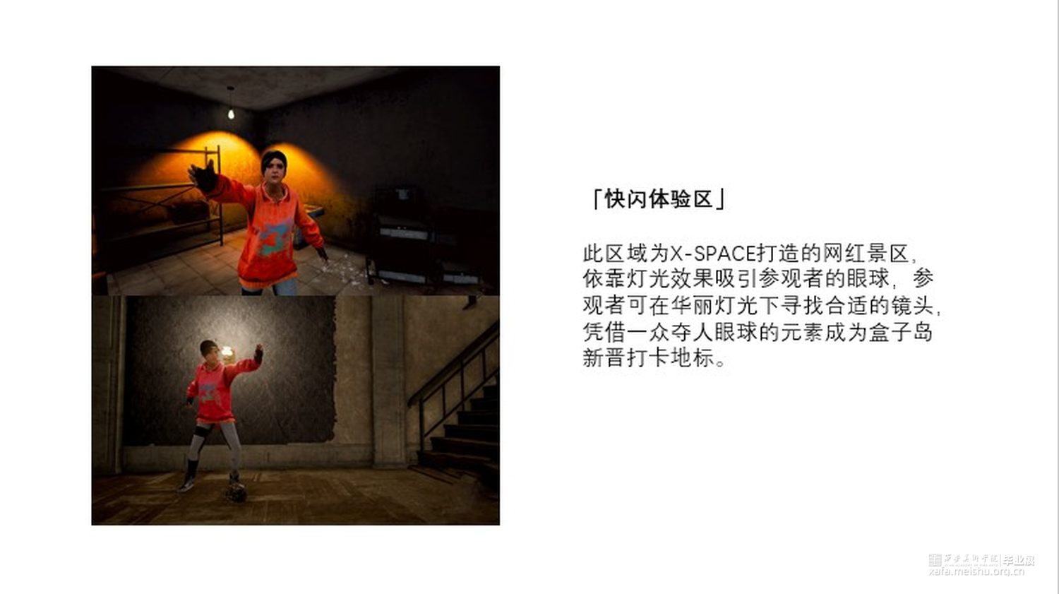 作品将游戏中的画面通过游戏摄影的方式记录下来,将其作为虚拟的旅游公司开发的景点呈现给观者,解构游戏的虚拟与现实之间的关系。