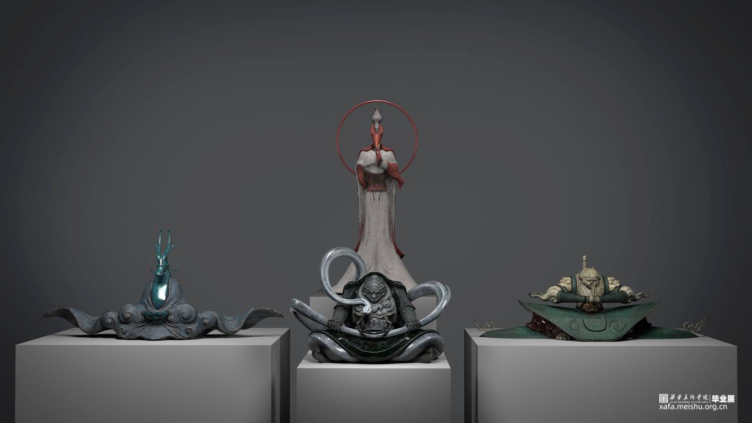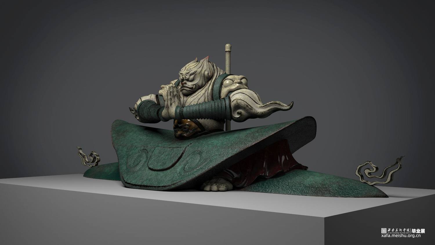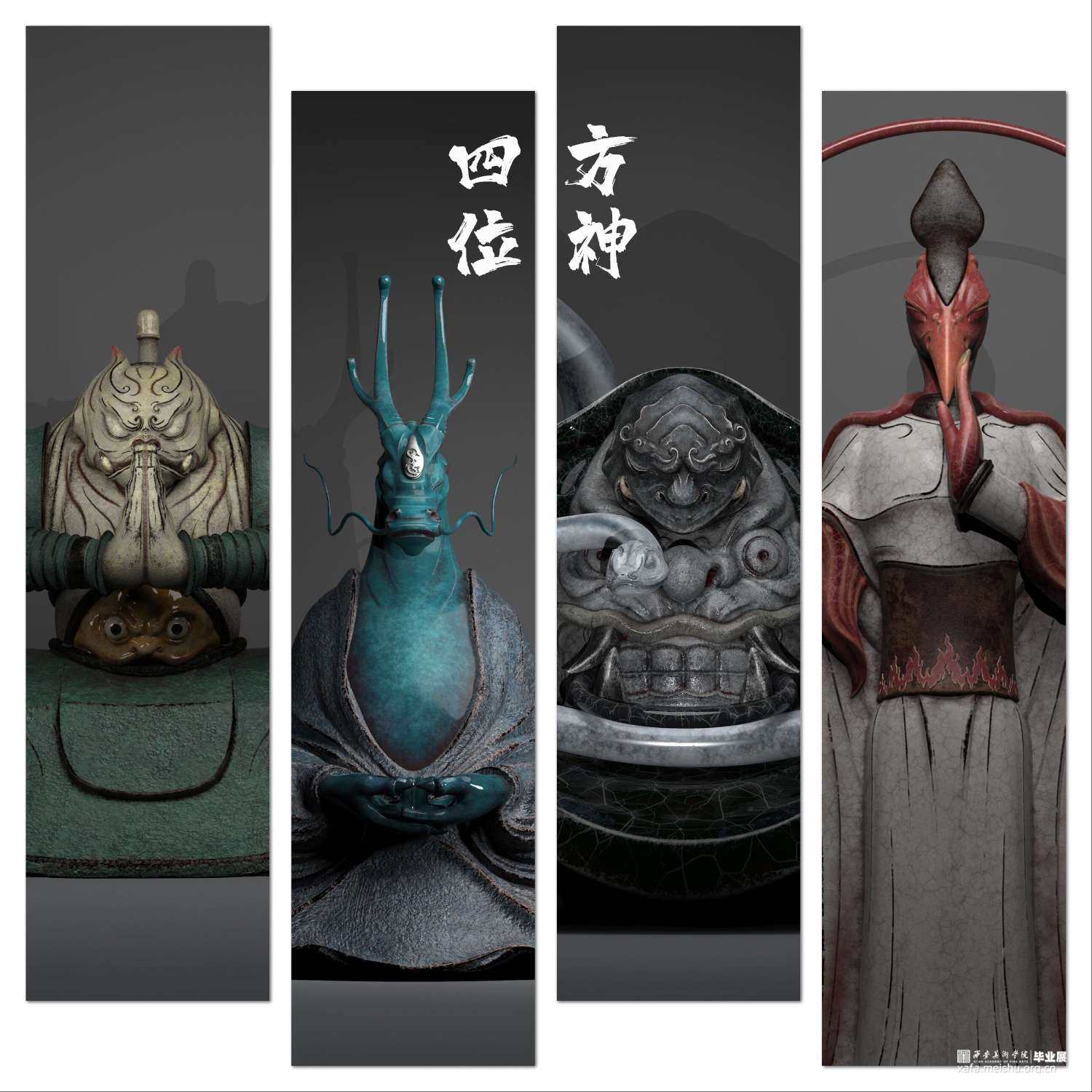 少年天然的对汽车,兵器,神话故事有着憧憬和向往,本次创作选择了所喜欢的神话题材进行创作,将中国传统元素与四方神兽结合,在技法与形式中摸索。