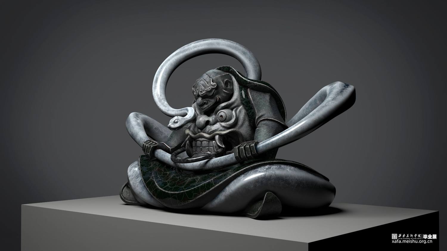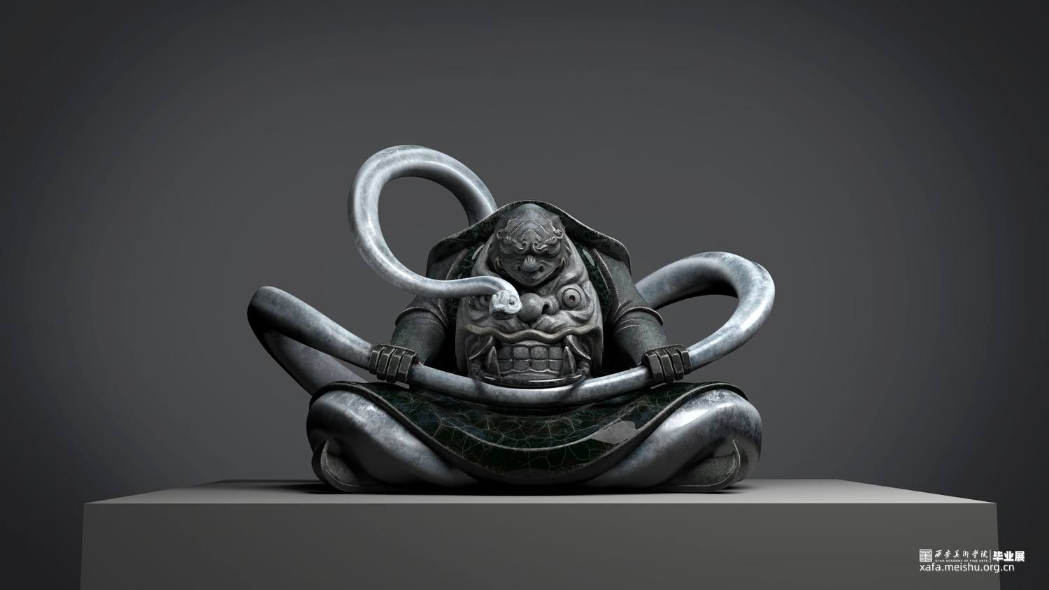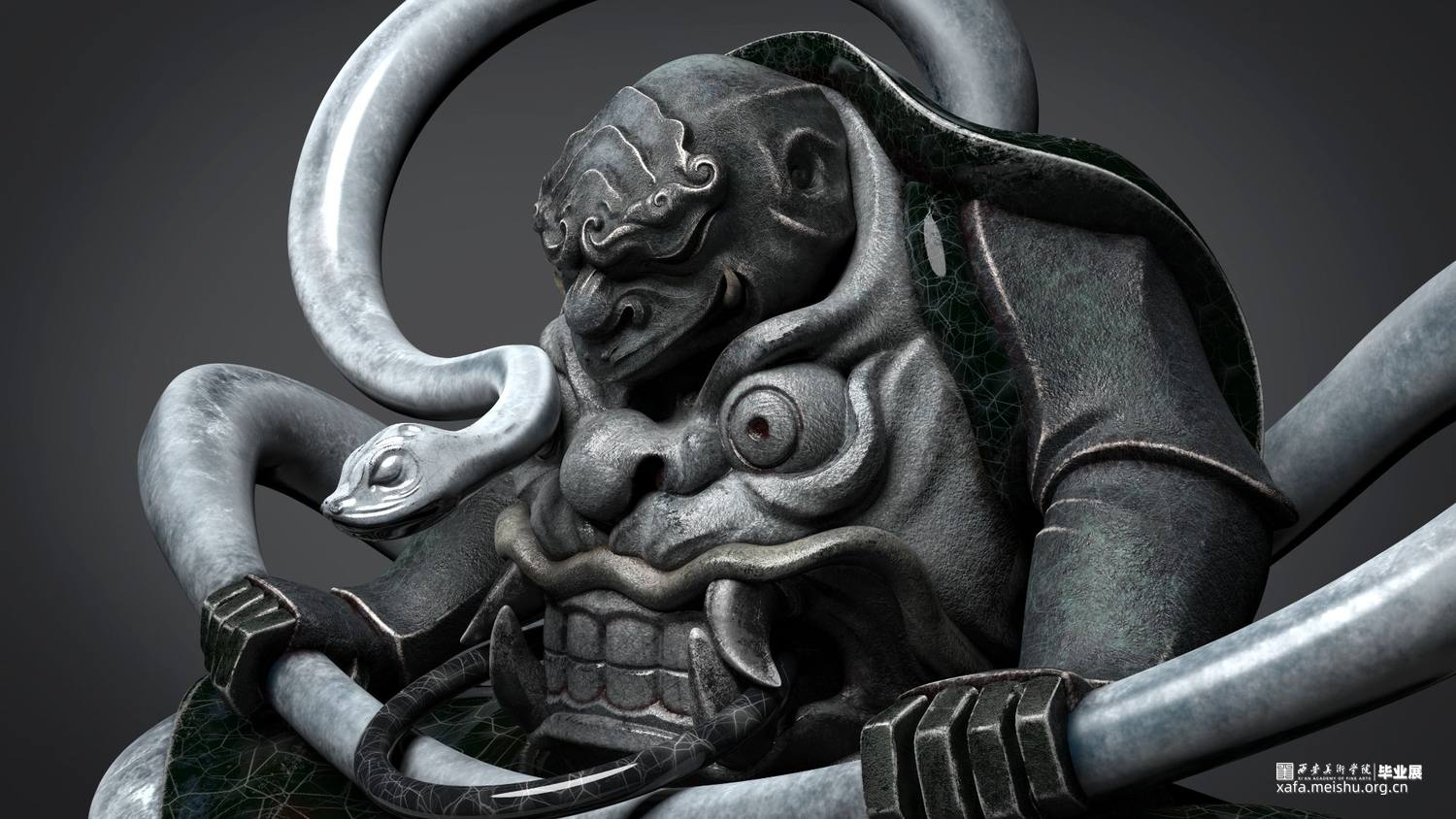 少年天然的对汽车,兵器,神话故事有着憧憬和向往,本次创作选择了所喜欢的神话题材进行创作,将中国传统元素与四方神兽结合,在技法与形式中摸索。
