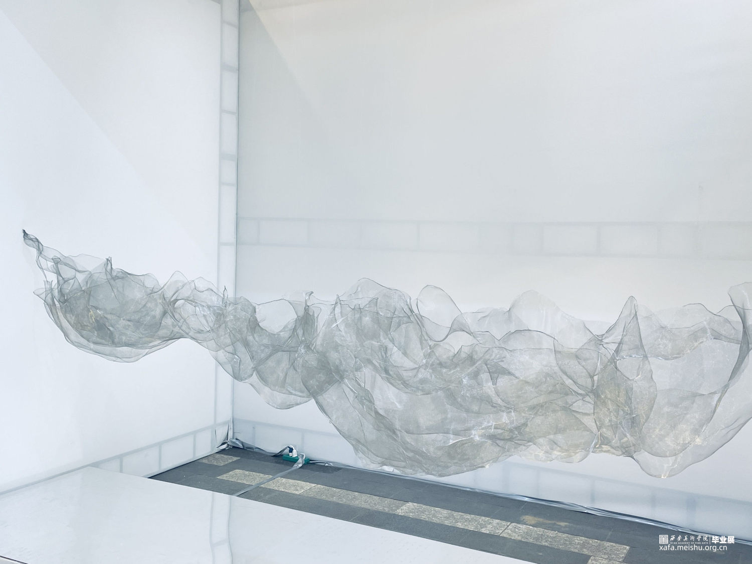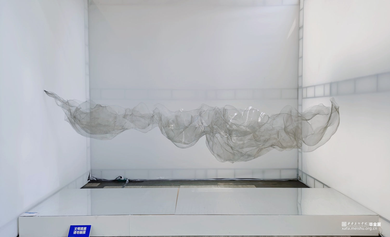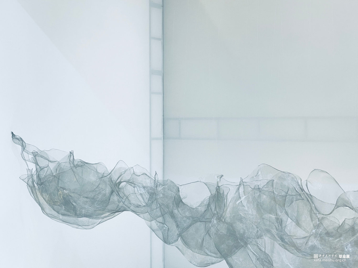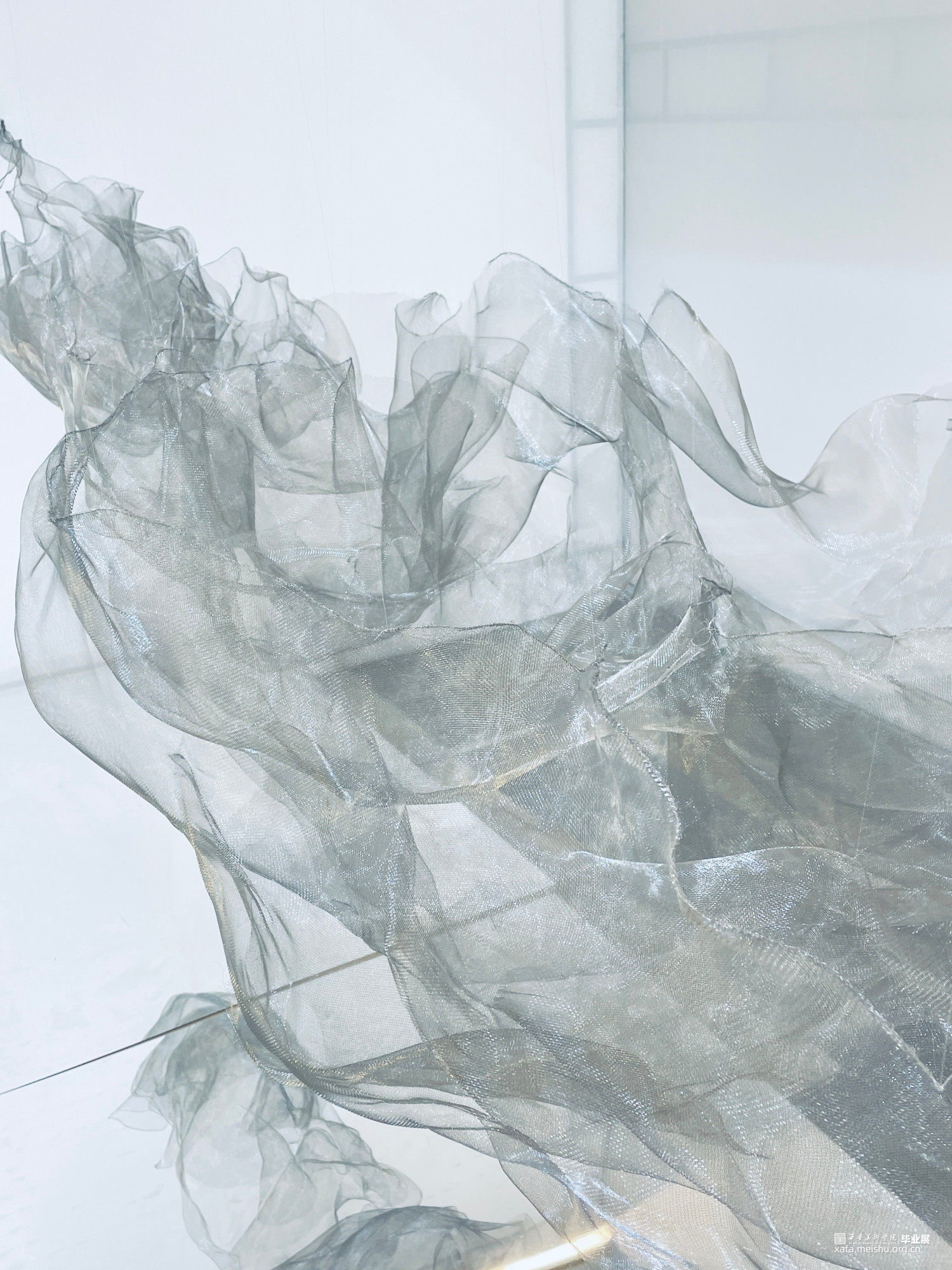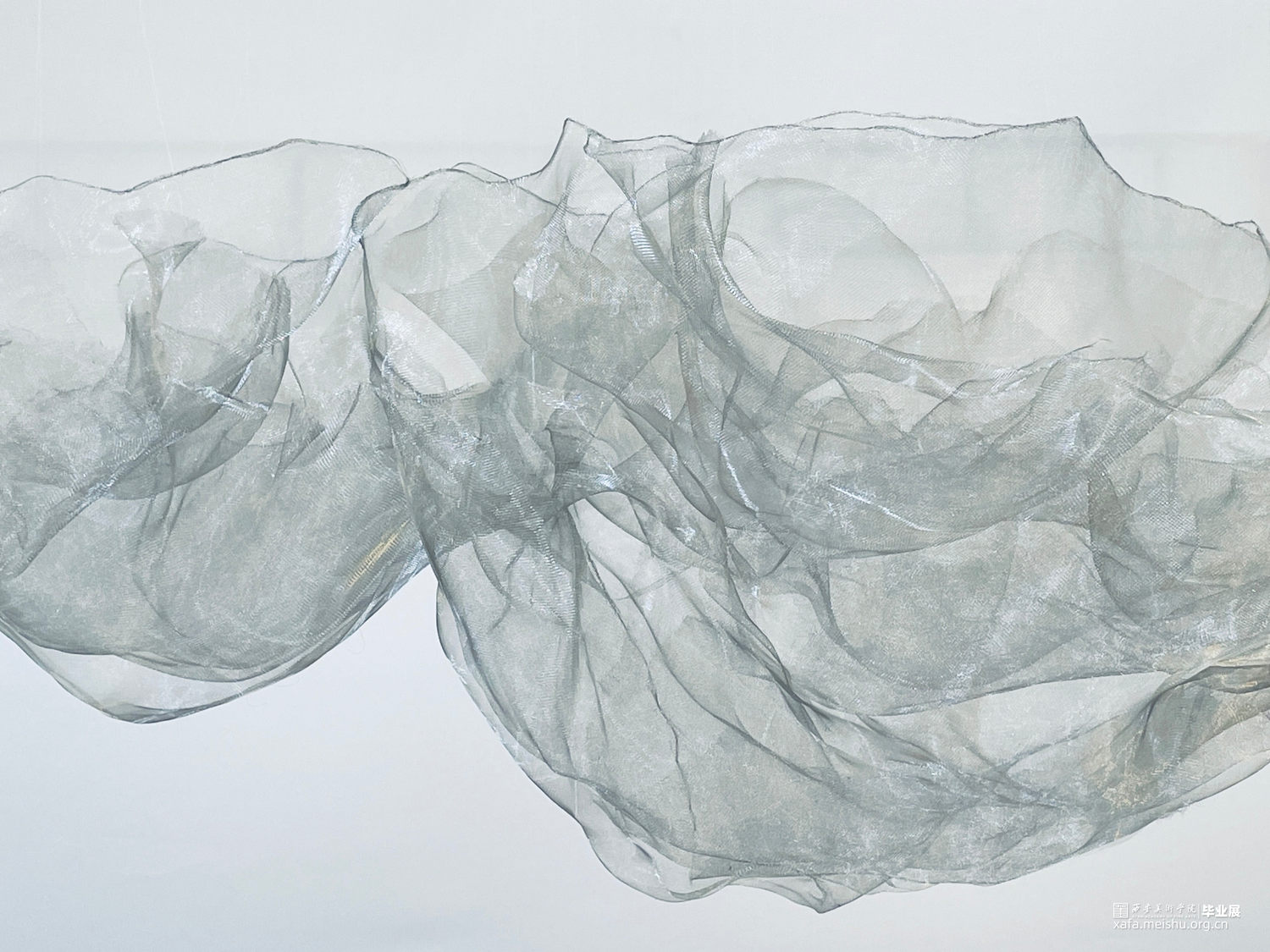 作品造型灵感来源于中国传统水墨山水画,作品通过金属薄纱网的重叠排列和组合,表