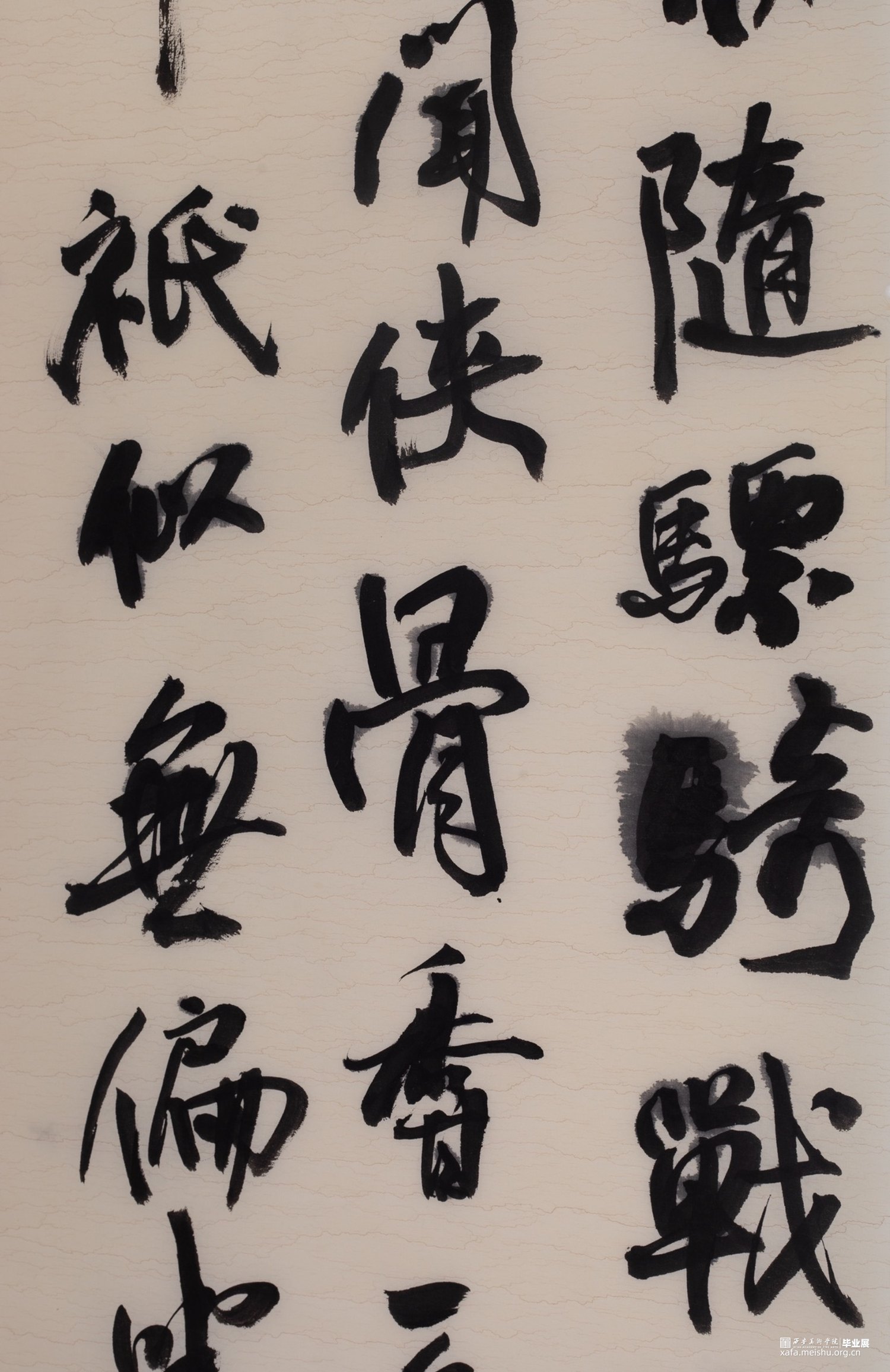 王铎少时学颜,后学集王,期间曾受到米芾的影响,我作此书,欲求王觉斯的涨墨、章法上的跌宕起伏,又融入米芾的痛快淋漓,欹纵变幻。此作品以王觉斯中期书风为依托,也算是本科期间对王铎不同时期行书的一点点理解,路漫漫其修远兮,吾将上下而求索。