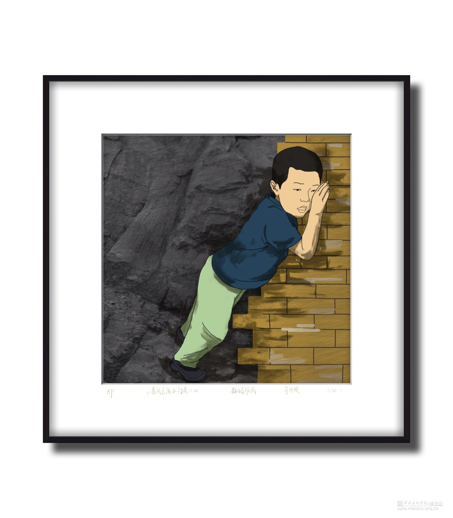 画面以男孩与平面式的墙体结合构成,人人都有自己的成长轨迹,没有一个人的生活是重叠的,每时每刻经历的事情都在影响着自己,这也造就了独特的风情与特征,也是最独特的个性。