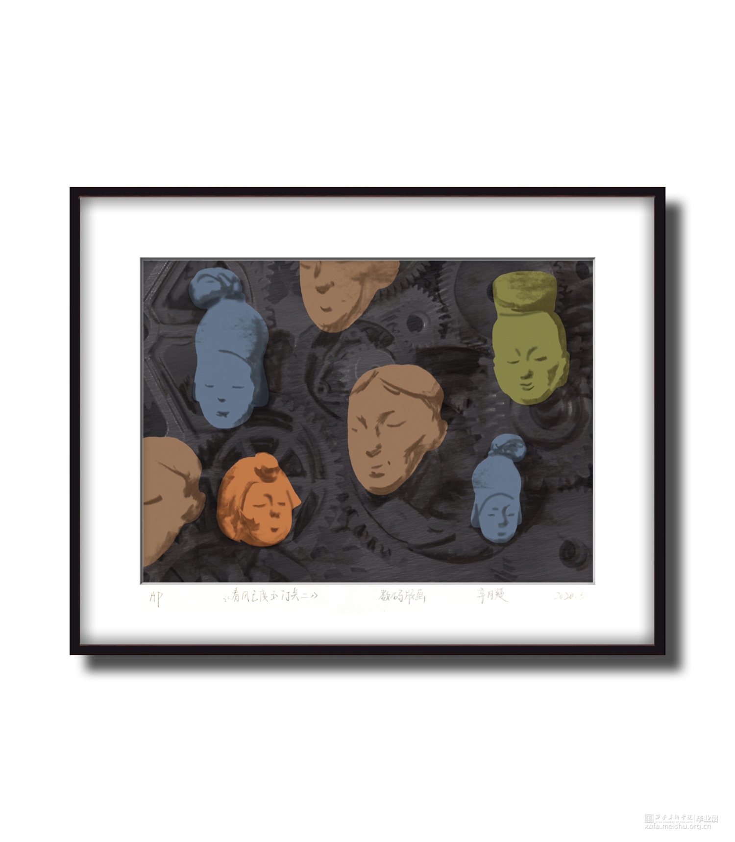 此画面提取了甘肃出土陶俑头部的特称,采用剪影形拼贴加手绘的方式,传达当时精湛的技术以及深厚的文化,以及我们对于“春”的传承与学习。