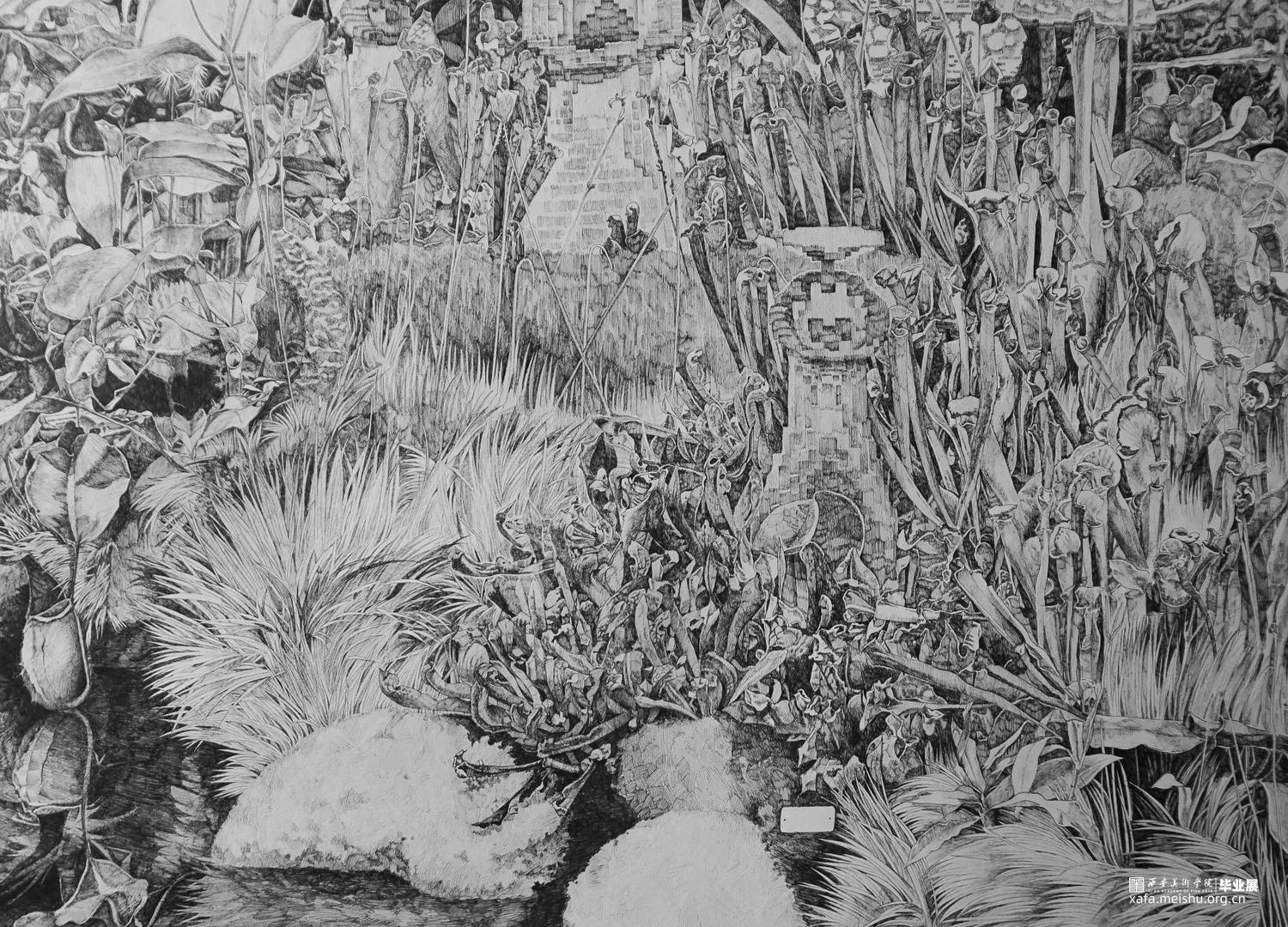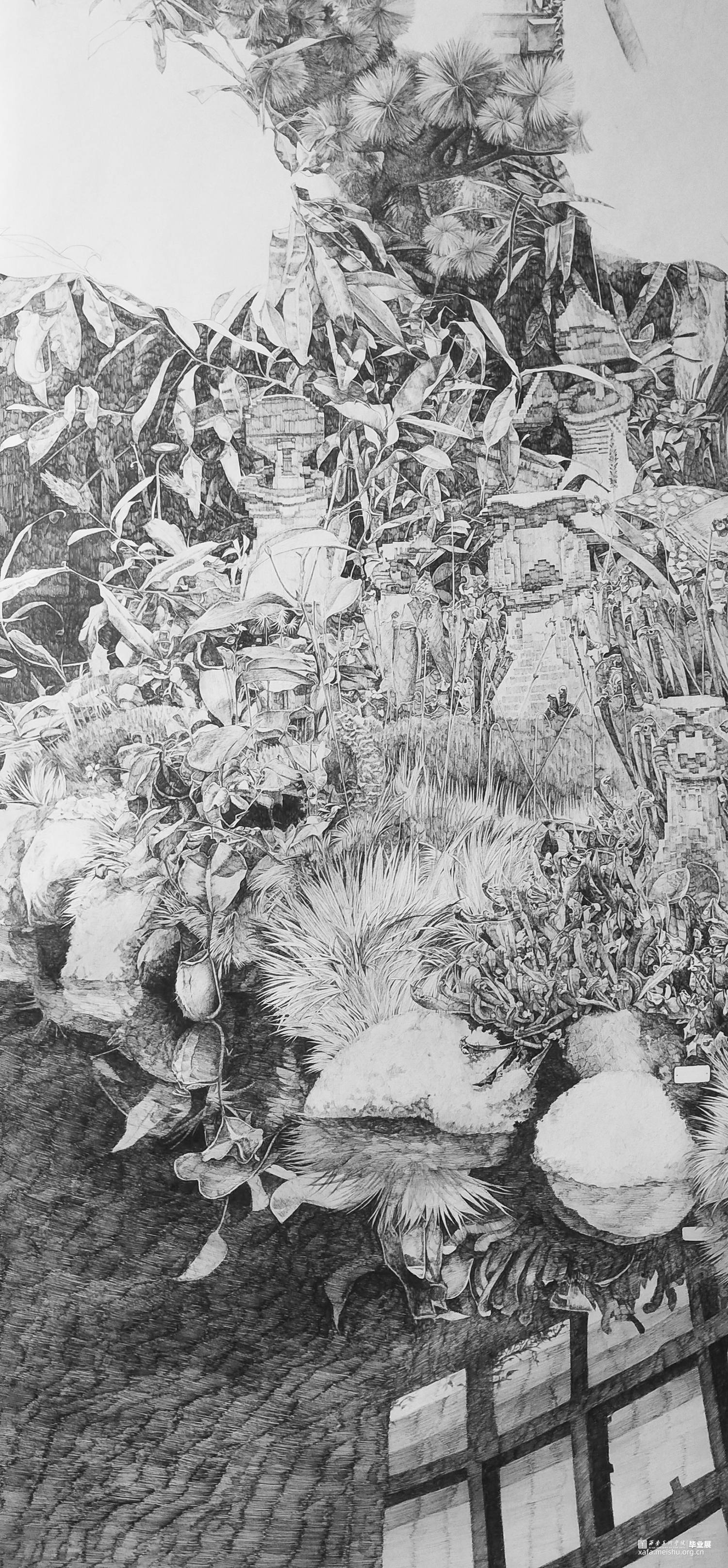 随着人们当下时代的不断发展与更新换代,艺术家们在表达自己的情绪上所使用的材料、技术、方式与语言得以有了多种多样的变化。在当今的时代里我选择使用针管笔作为材料来表达个人的情绪与时间体验。我利用0.2mm粗细的针管笔来完成创作,以经历天数命名,在对复杂线条图像的叠加中经历时间与工作量的积累,进行个人情感噪点的积累与升华。