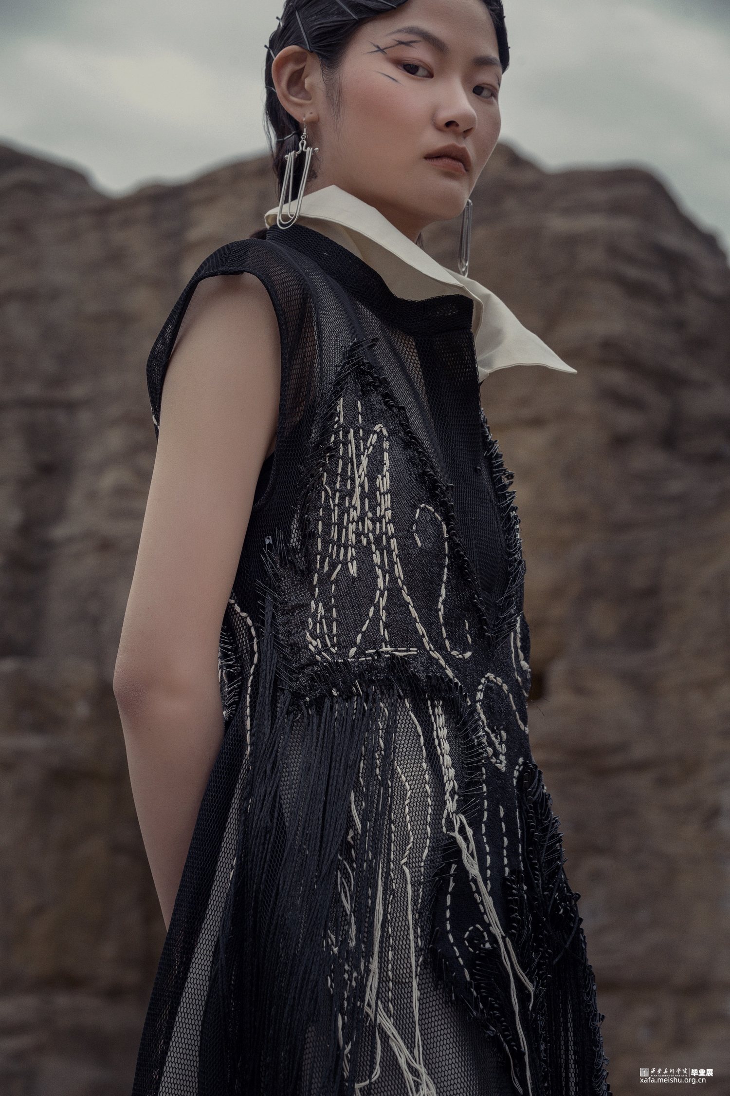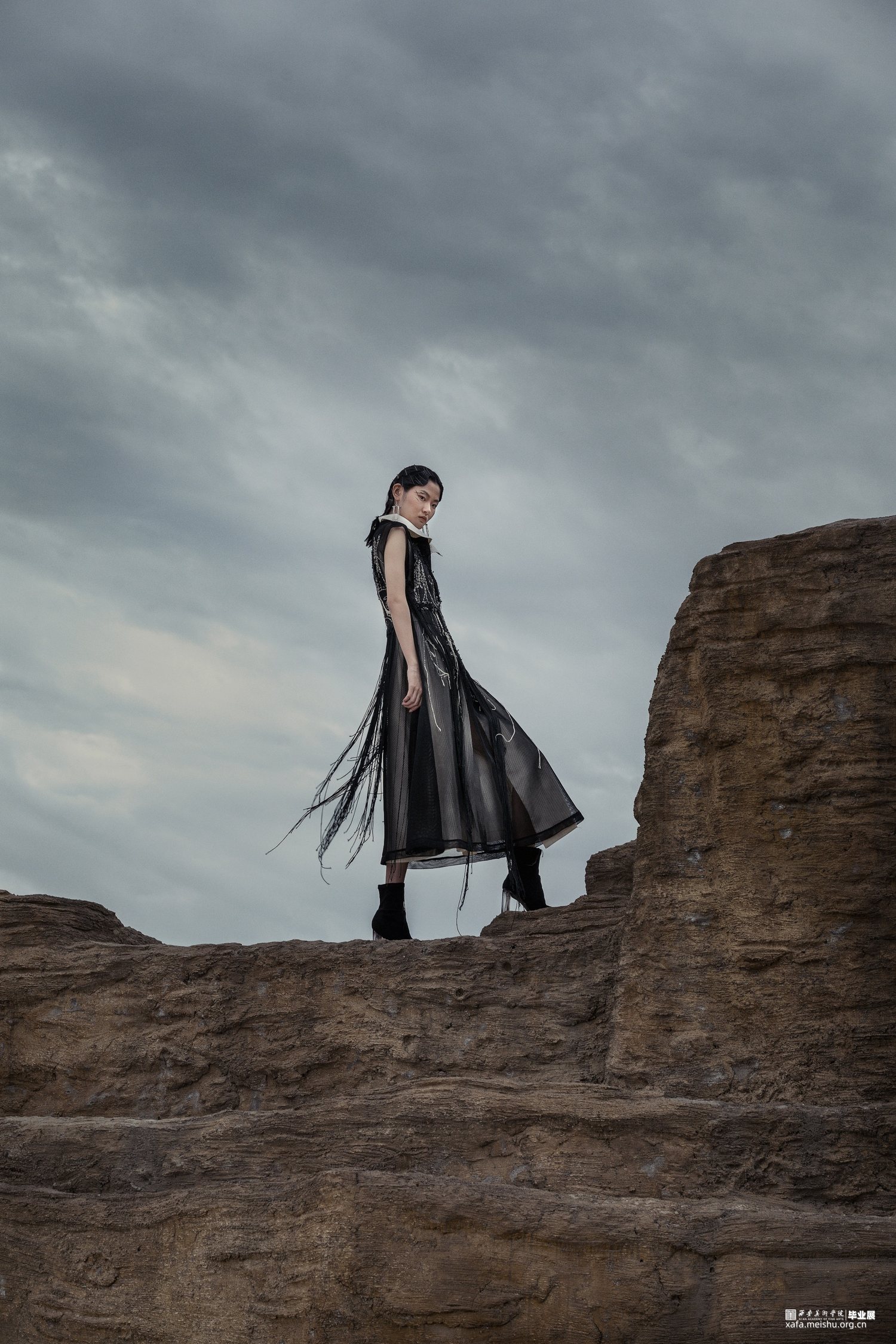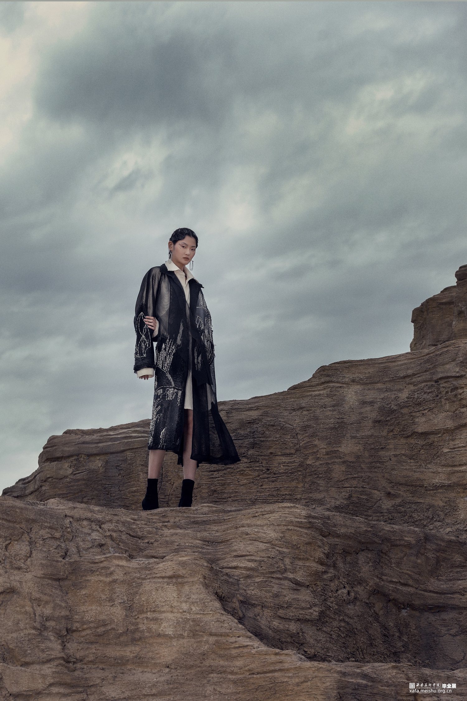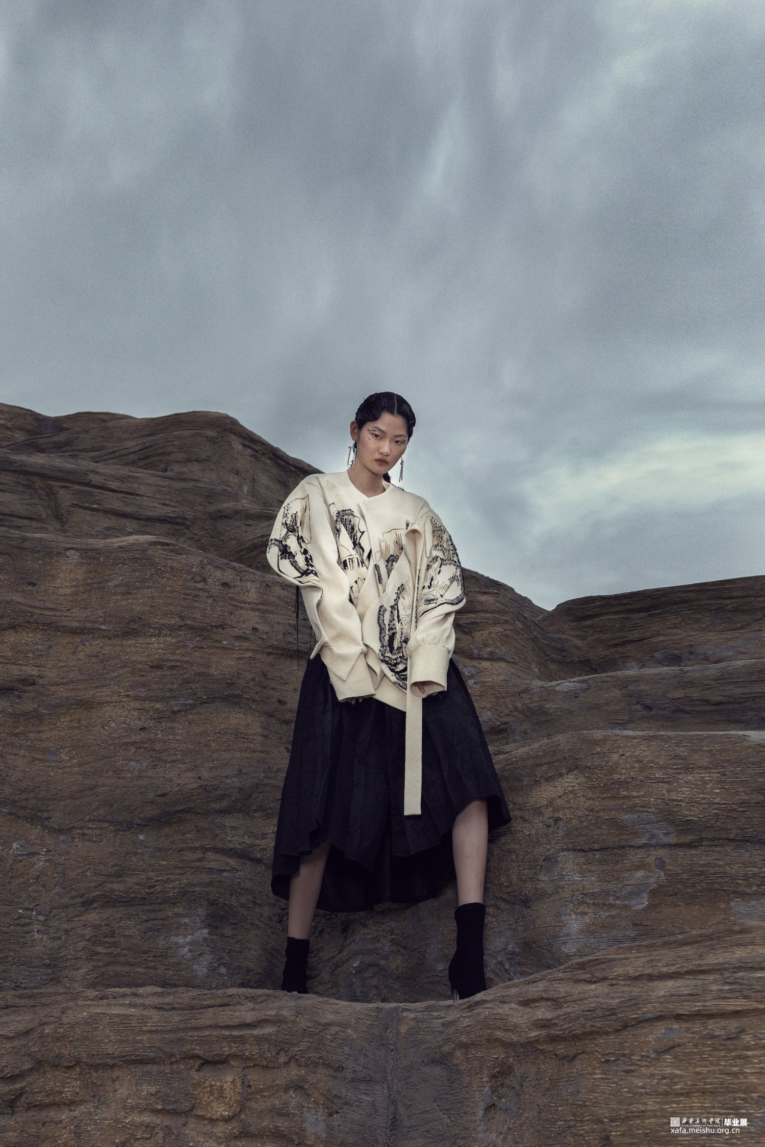 此次毕业设计作品的主题为“融”,是以中国传统文化为基奠进行设计。中国传统文化是现代设计的根源,服装设计的目的是力求将中国传统的文化元素与西方服饰文化相融合。本系列服装灵感来源于中国传统文化元素诗歌及版画,以唐代诗人的五言古诗《青溪》为灵感,运用中国传统版画的线条形式,将版画中运用的线条感通过抽象、变形,再进行重组,形成一种全新的视觉效果。