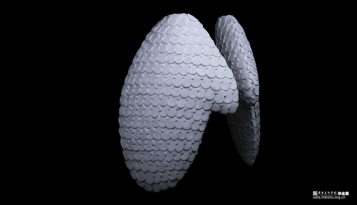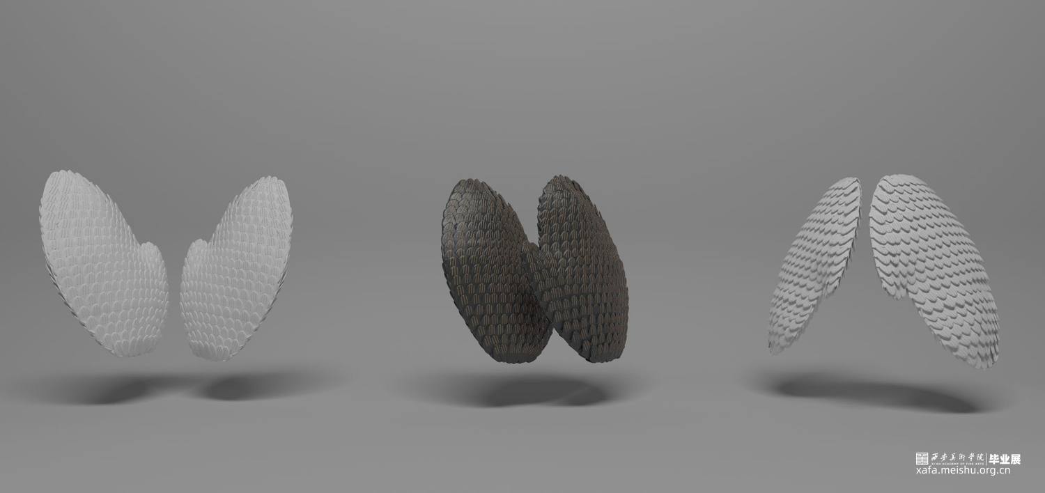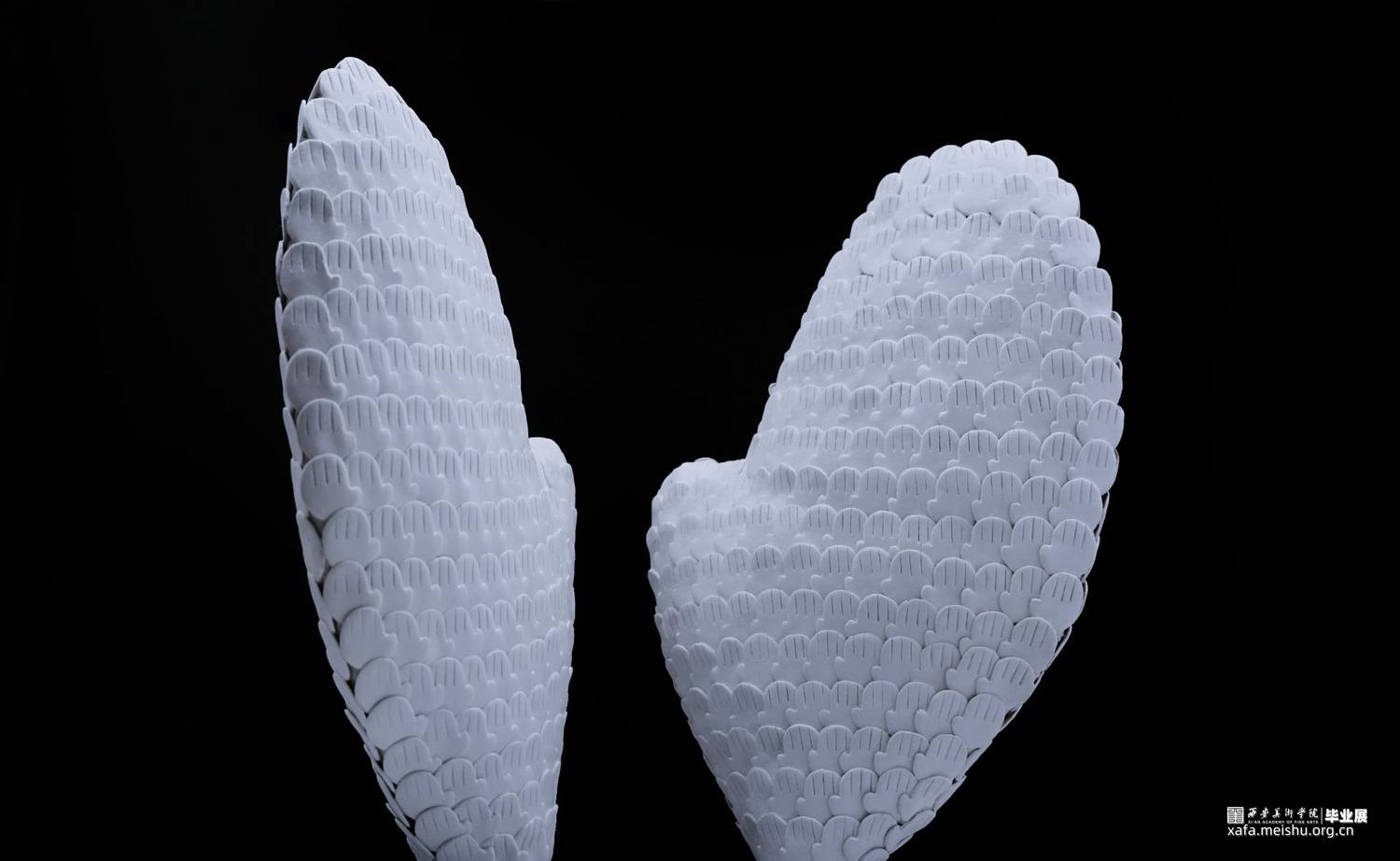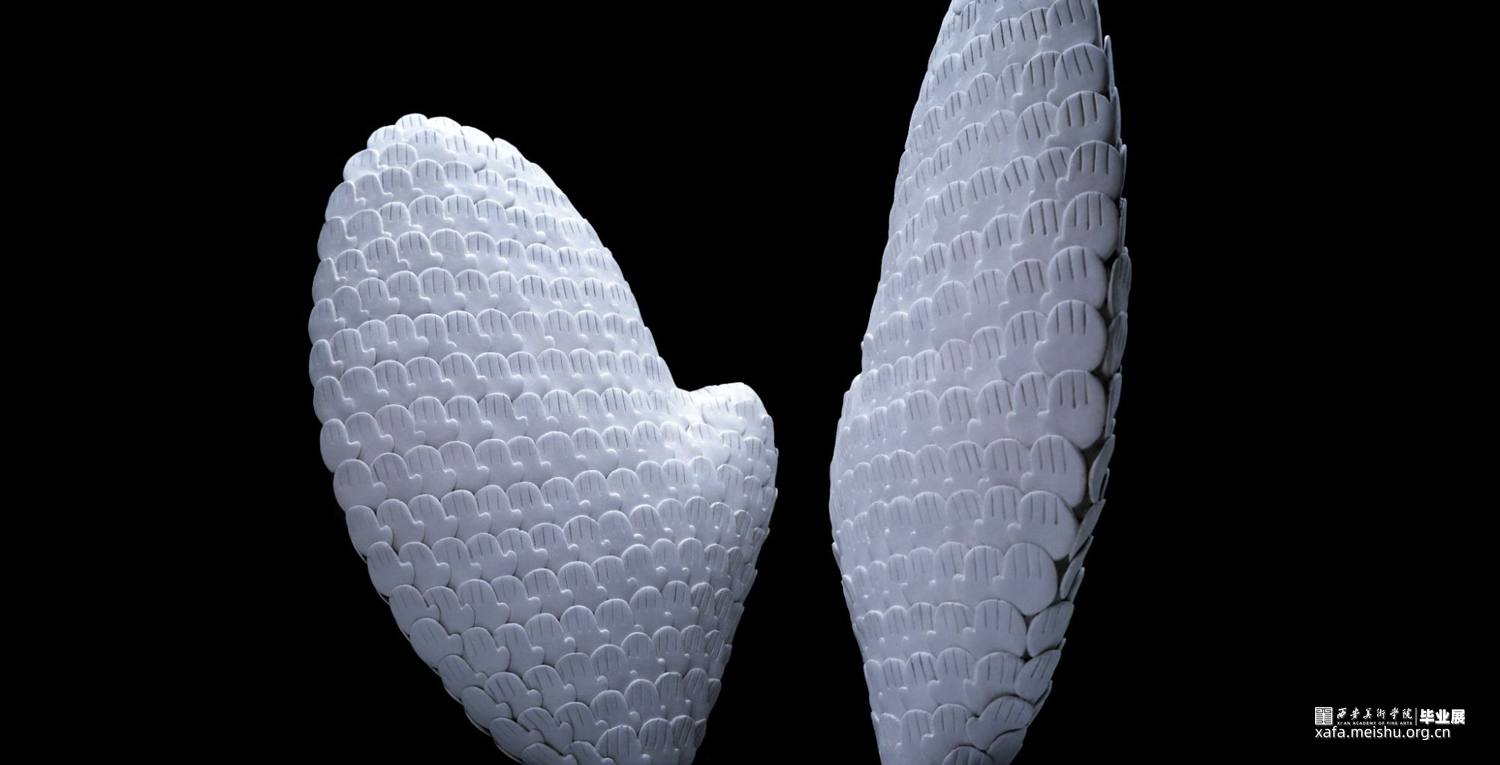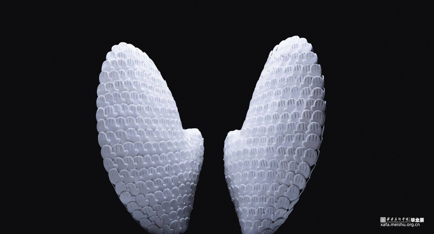 本创作借助“手”的造型,塑造观众心中的“翅膀”,通过动、静、转化三种形态的展示,引发观众对作品的不同解读。动与静的相对,是意为生命的象征;动与静的转变,是过去、现在、未来,生生不息。