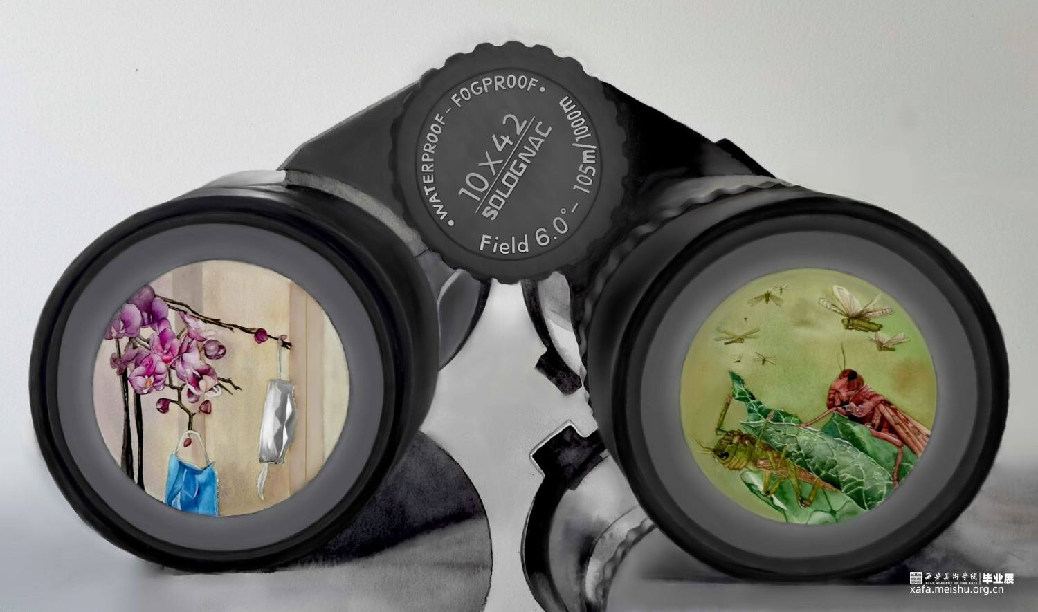 我创作这幅画是希望能够通过这幅画引起人们的一些关于看问题角度的思考。换个角度,不要盯着自己关注的焦点,关注焦点之外的一切。