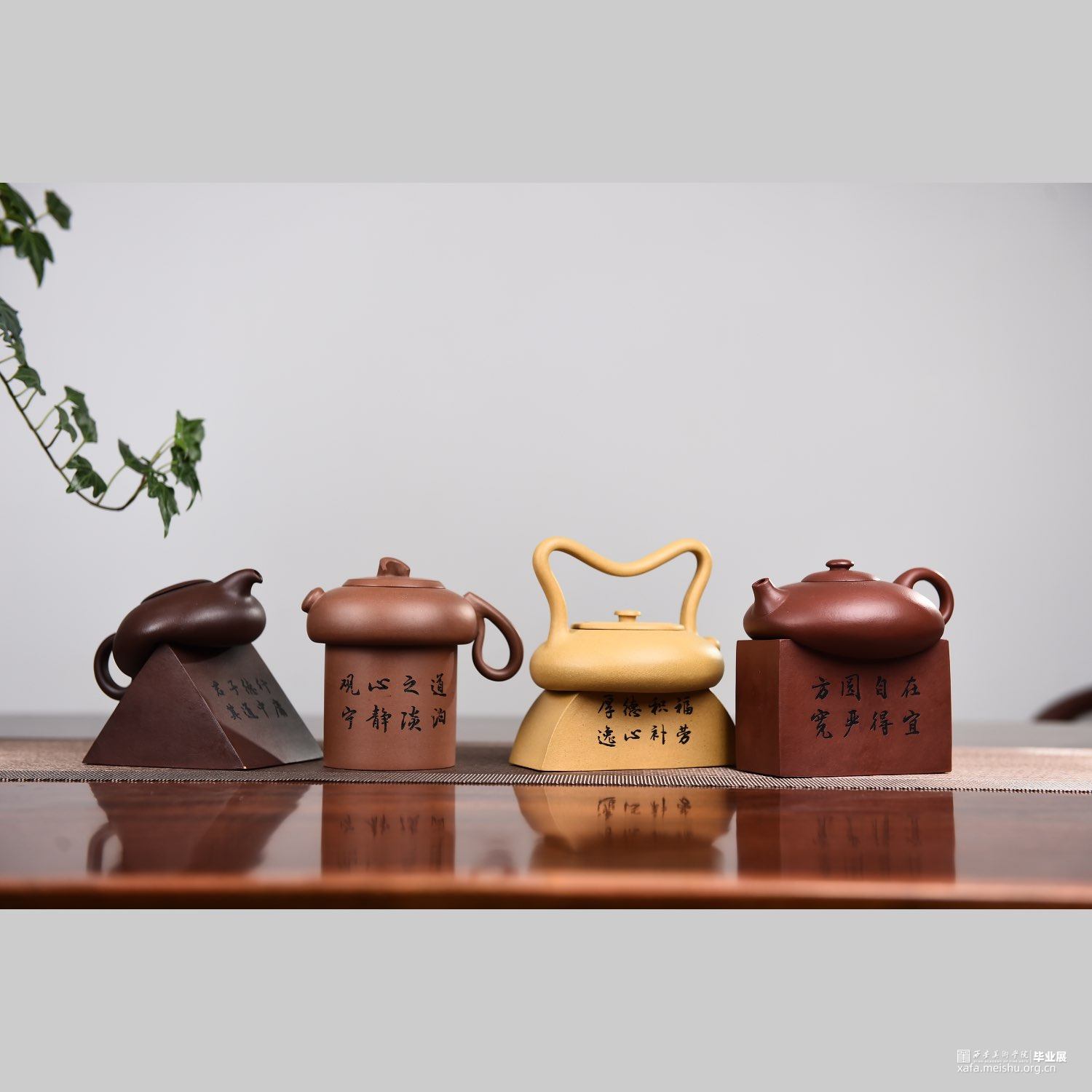 《瘫壶》系列作品,是以即将毕业进入紫砂行业的我为出发点,在阶段性迷茫的基础上,对当下状态的思考。“瘫”是病态的,在紫砂壶的传统概念和造型关系里,“瘫壶”已不是壶,设计制作“瘫壶”,是以玩世来醒世,玩壶来醒人。同时也是劝说自己,要居安思危,更要脚踏实地。