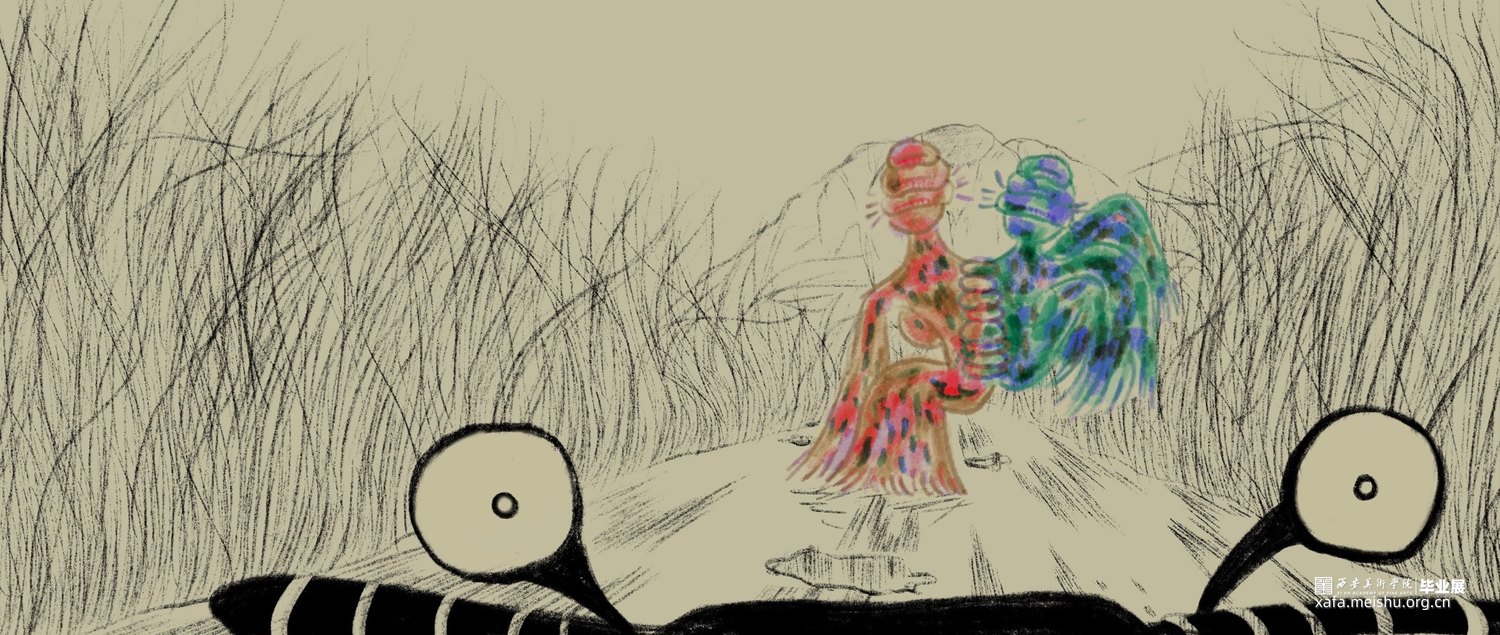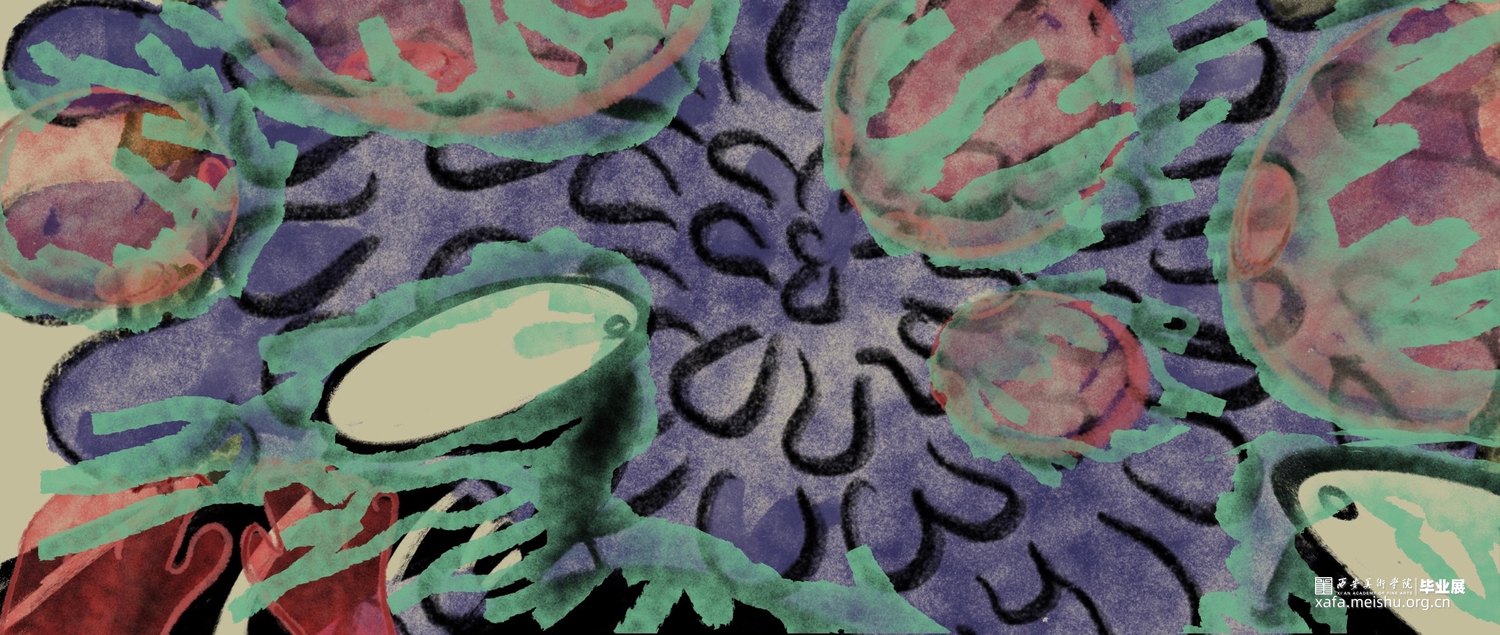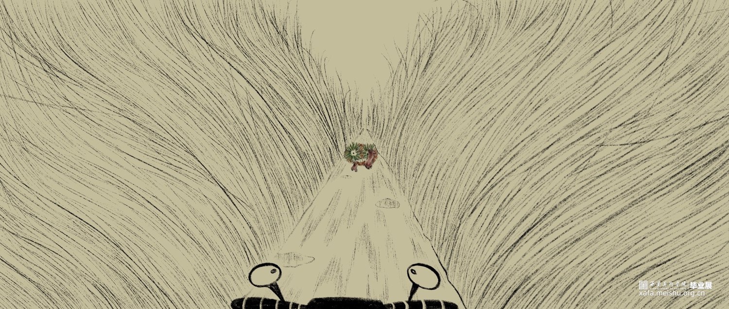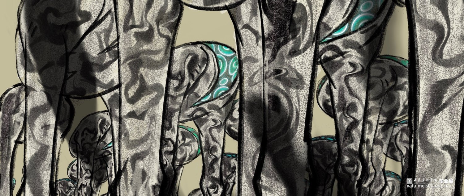 你在骑电动车的时候是否也遇到过玩手机占道的行人或者乱停乱放占道的汽车又或者是开远光灯逆行的人。作品以非机动车道上的一些非常态化的交通现象为切入点,将他们进行一种艺术化的处理,画面以第一视角观察者的身份,我将社会上的无序与混乱转化为一种“异类生物”,将这种社会现象重新解构。我们每一个人在社会中都有不适应的表现,即使我们能意识到我们成为某种“异类”也无法摆脱这种情况,谁都有可能成为别人眼中的异类。