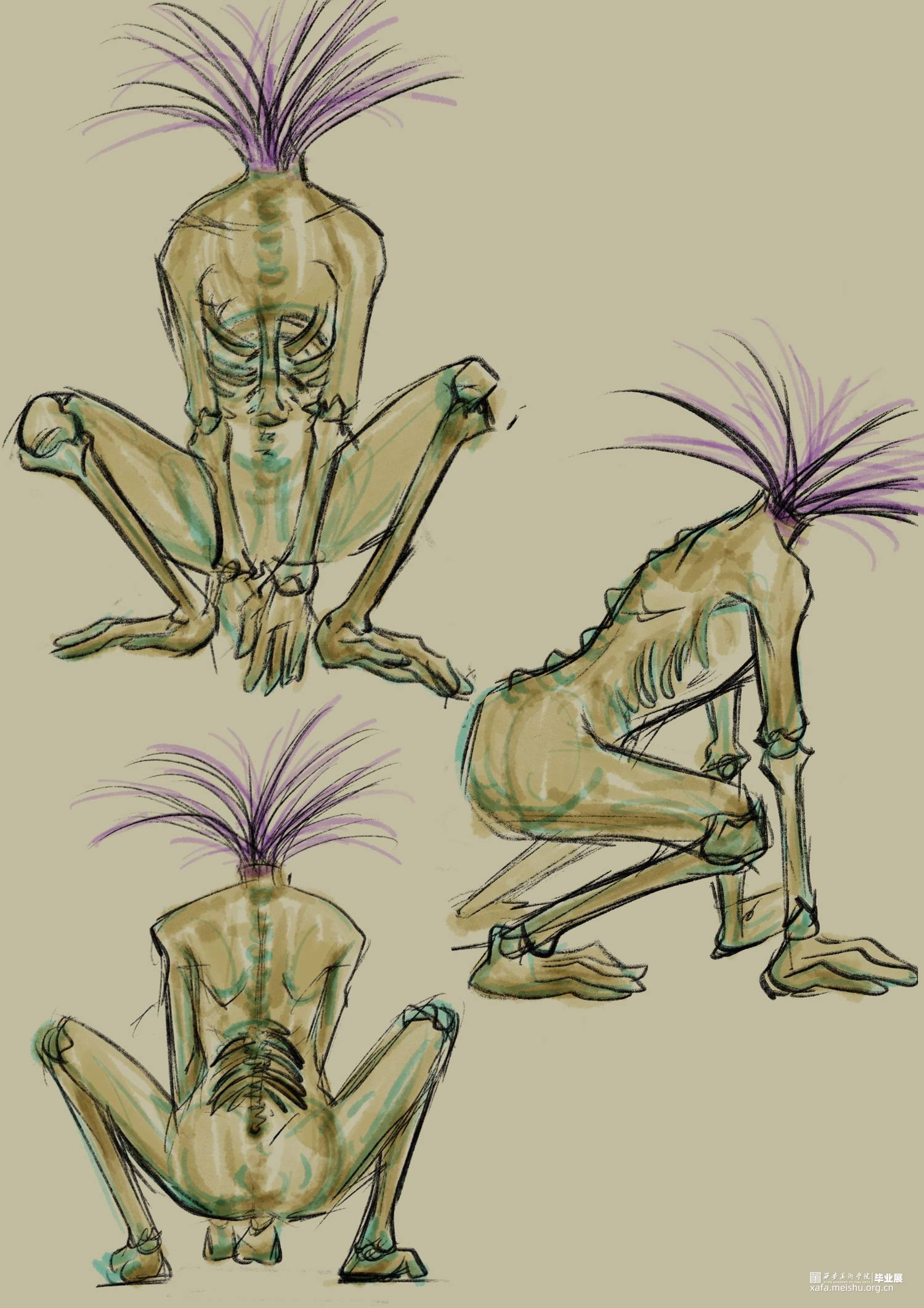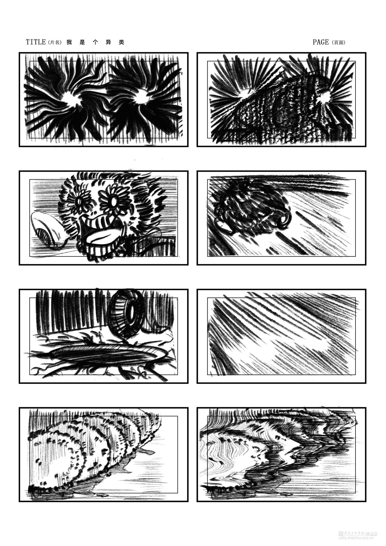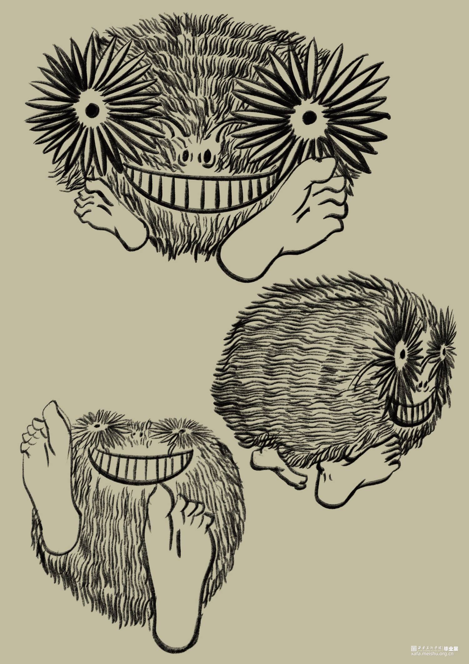 你在骑电动车的时候是否也遇到过玩手机占道的行人或者乱停乱放占道的汽车又或者是开远光灯逆行的人。作品以非机动车道上的一些非常态化的交通现象为切入点,将他们进行一种艺术化的处理,画面以第一视角观察者的身份,我将社会上的无序与混乱转化为一种“异类生物”,将这种社会现象重新解构。我们每一个人在社会中都有不适应的表现,即使我们能意识到我们成为某种“异类”也无法摆脱这种情况,谁都有可能成为别人眼中的异类。