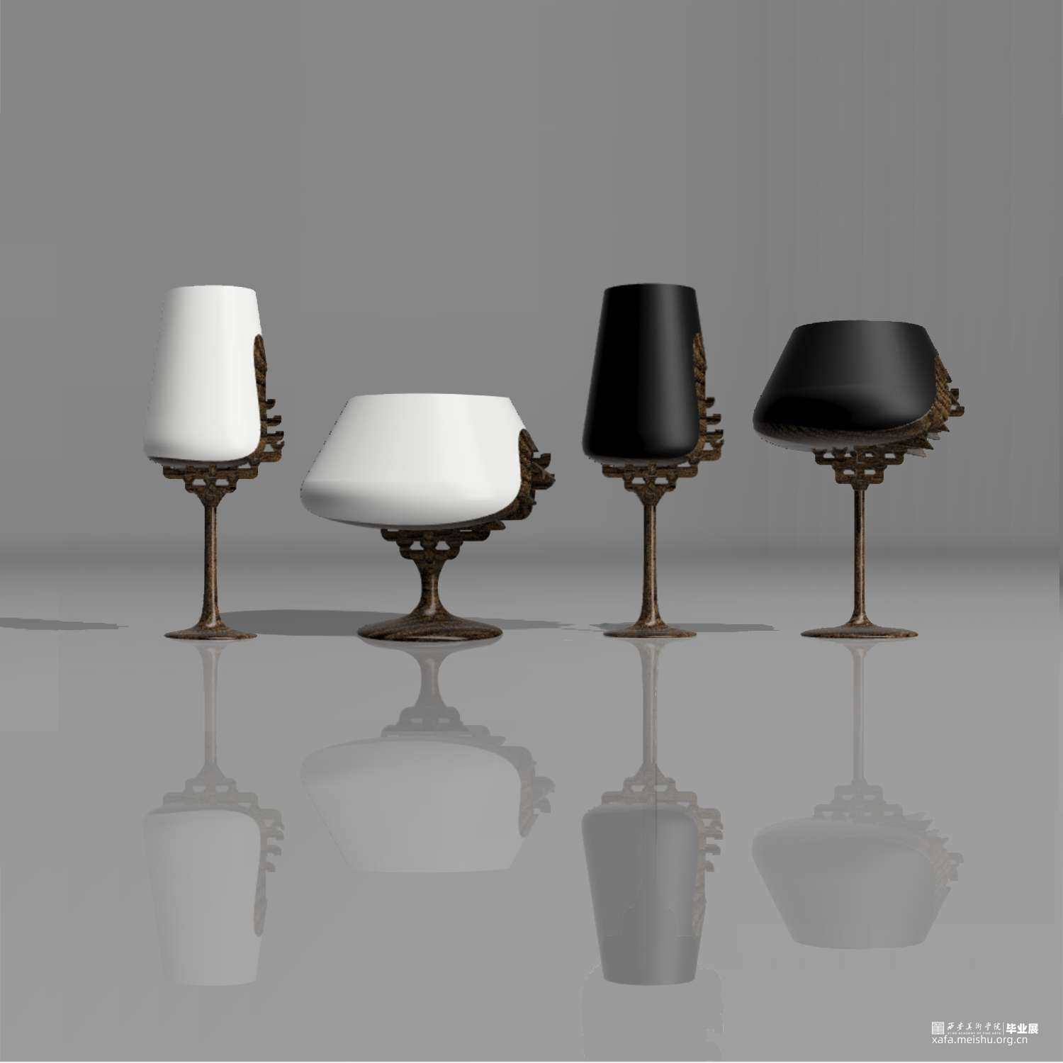 传统文化随着时代的进步,渐渐淡出我们的生活,在追求时尚、设计的过程当中,部分的忽视了我们中华民族优秀的传统文化与设计,作品尝试寻找一个将传统文化与当代设计结合的展现方式,运用传统木质结构的斗栱形态,与当下流行的高足杯进行重新再设计与再结合。