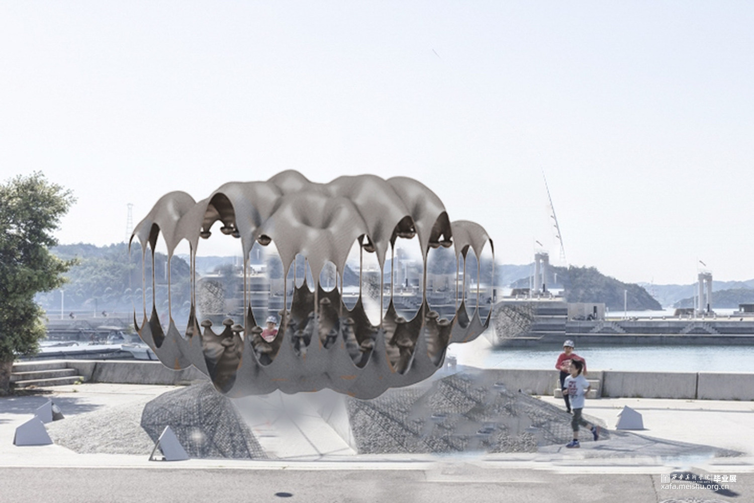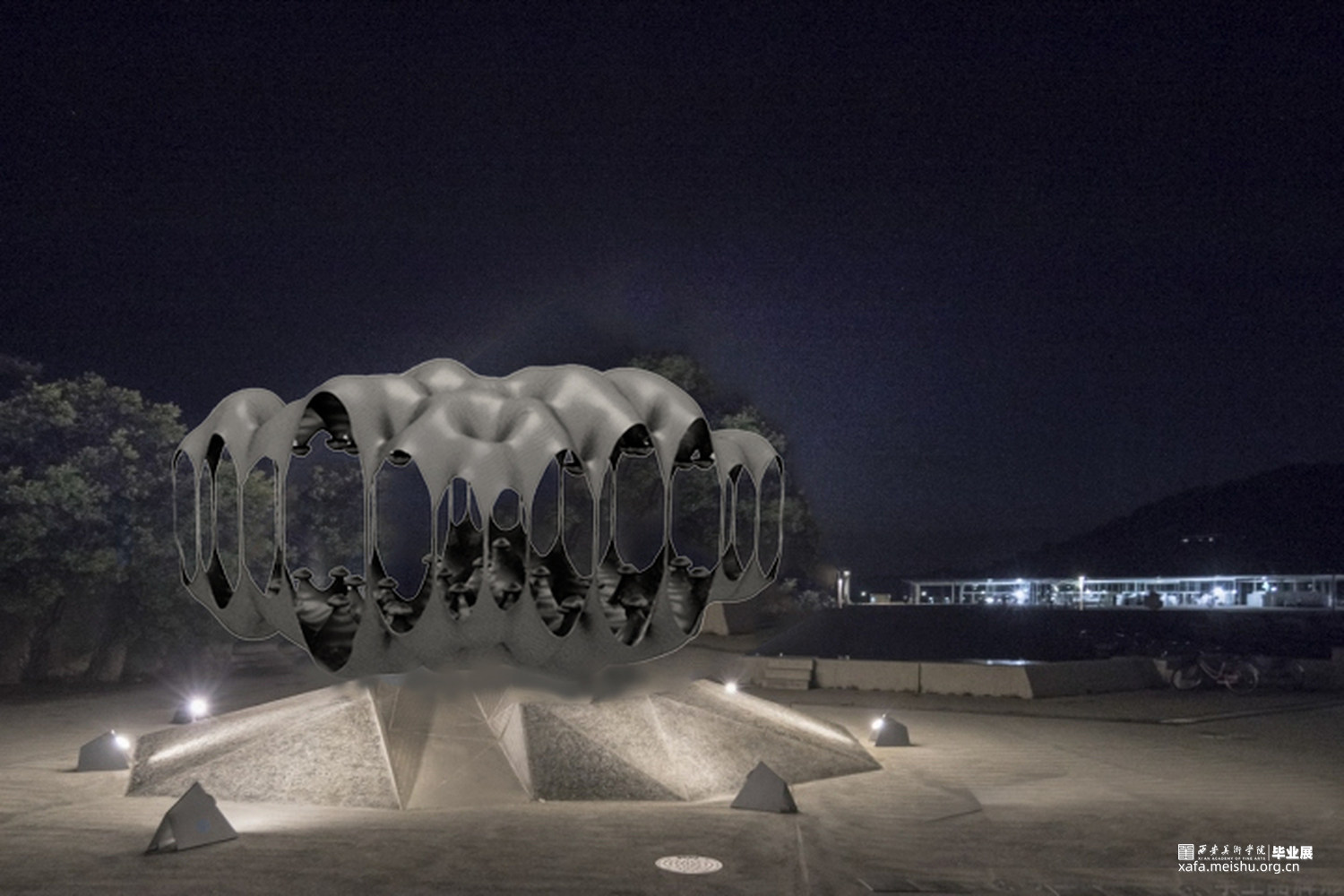 作品通过对公共空间环境的剖析,选用了碳纤维材料进行景观装置创作。运用多变的凹凸造型,并加以修饰,将这件能够承载人们进入体验并观摩的作品放置在公共空间当中,使这件承载着建筑美感的装置带给观赏者别样的感受。实现对装置艺术的创新,并体现着公共艺术中存在于公共空间中、能够与公众发生关系的、具备公共性的某种思想方式和技巧。