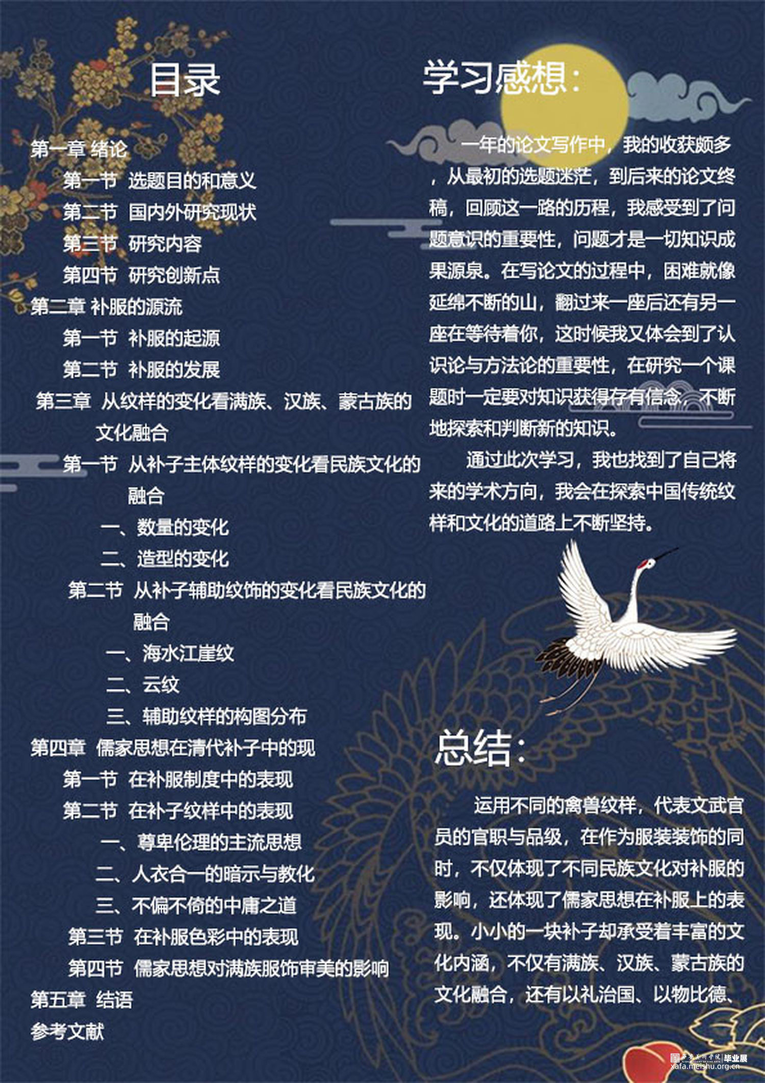 本文以补服的起源、发展为主线,通过梳理历朝历代的补子主体纹样的数量、形态和补子辅助纹样的演变、组合分布等,进行汉族、满族、蒙古族的文化融合分析。着眼于掌握清代文武官员的补纹内容,深入理解,总结和归纳,从纹样形象概述、构图特点、色彩运用等方面分析和总结清代补子上所体现的儒家思想。