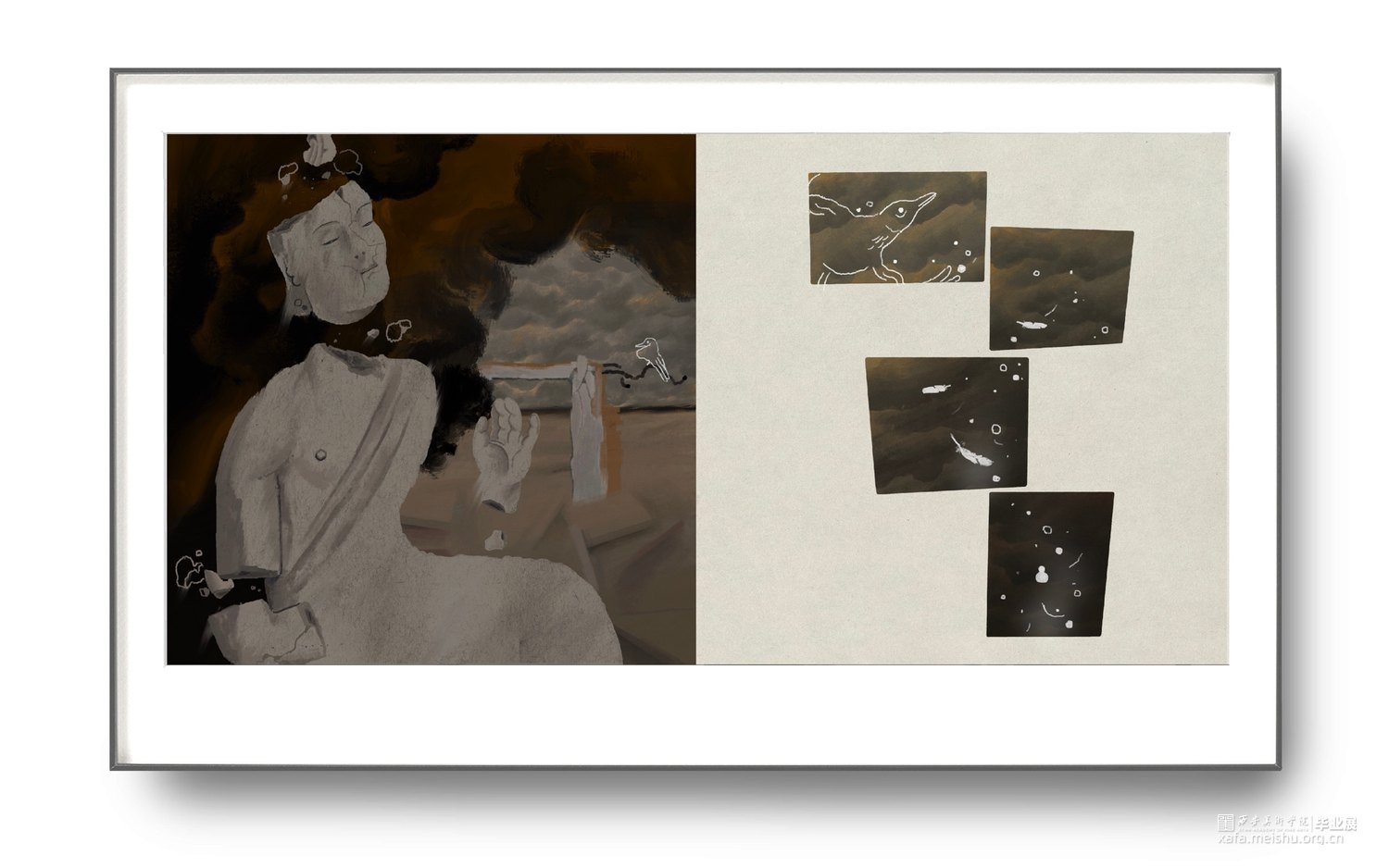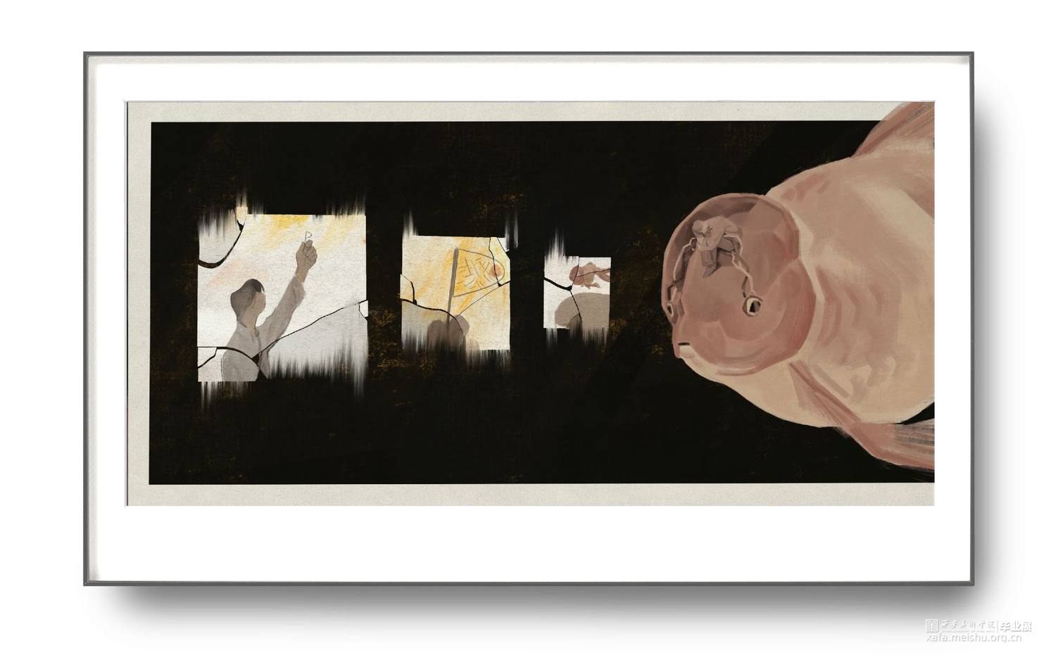 创作思路:对于金鱼的思考,探究病态社会与金鱼的共通性。金鱼是从野生鲫鱼驯化而来的观赏鱼类。人们花了几百年的时间利用鲫鱼细胞的变异而筛选出符合审美的金鱼,每年筛选掉的鱼苗有几亿只,这种病态的金字塔式的筛选和人类社会的金字塔结构存在类似。故事是关于主人公突破层层阻挠最后登上巴别塔找到真理的故事。作品名称:《金鱼》作者:严茂予作品分类:插画尺寸:50cm×25cm作品数量:12张材料:photoshop,procreate指导老师...