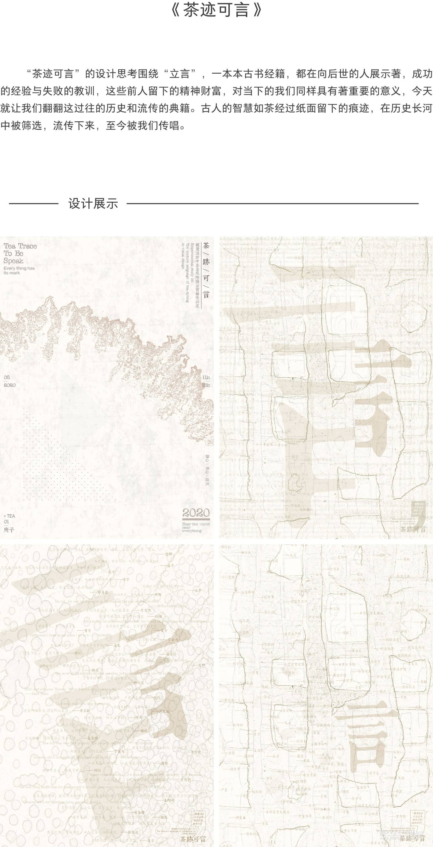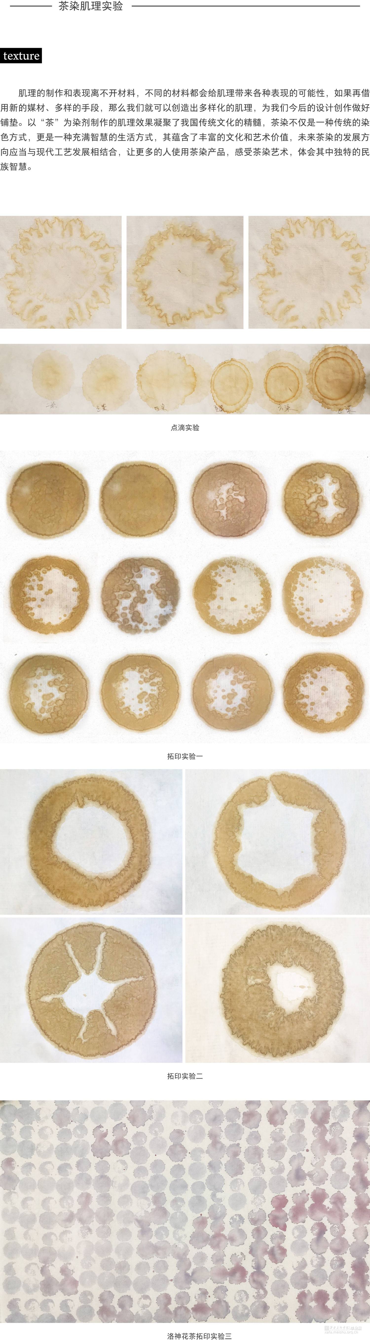 中国是全球最大的产茶国,也是最早栽种茶叶与喝茶的国度。中国的茶文化糅合各家思想精华形成了中国茶道,在茶道、茶学、茶文化体系中,茶染也受到爱茶之人的喜爱。在茶染“色”“肌理”实验中发现,茶染肌理可以更直接地体现中国茶文化的精神。将茶染的肌理使用在当代设计中,可以让设计作品更具有中国韵味。与电脑软件结合,可以使茶染技艺与时俱进,得到更好地保护和发展。
