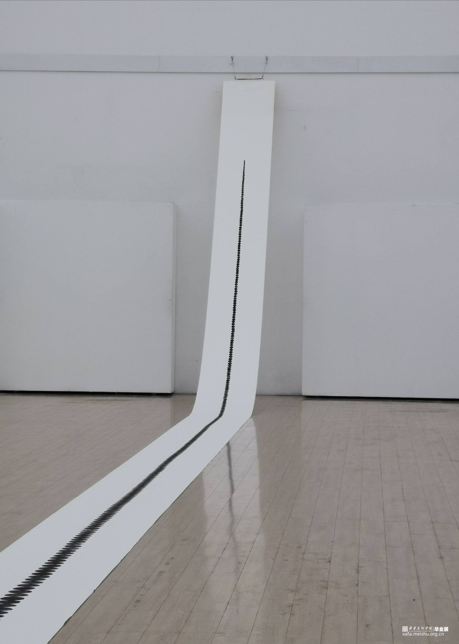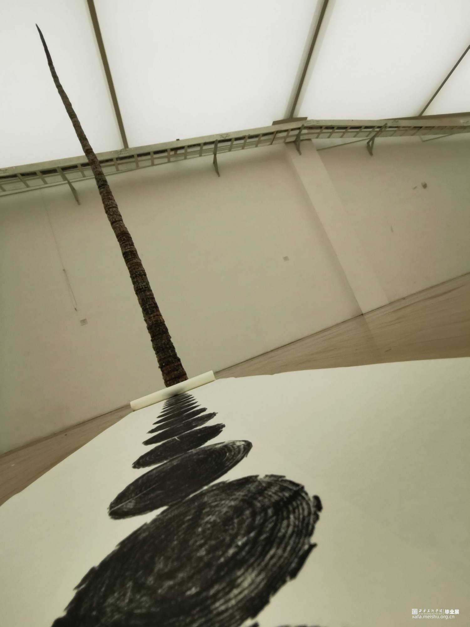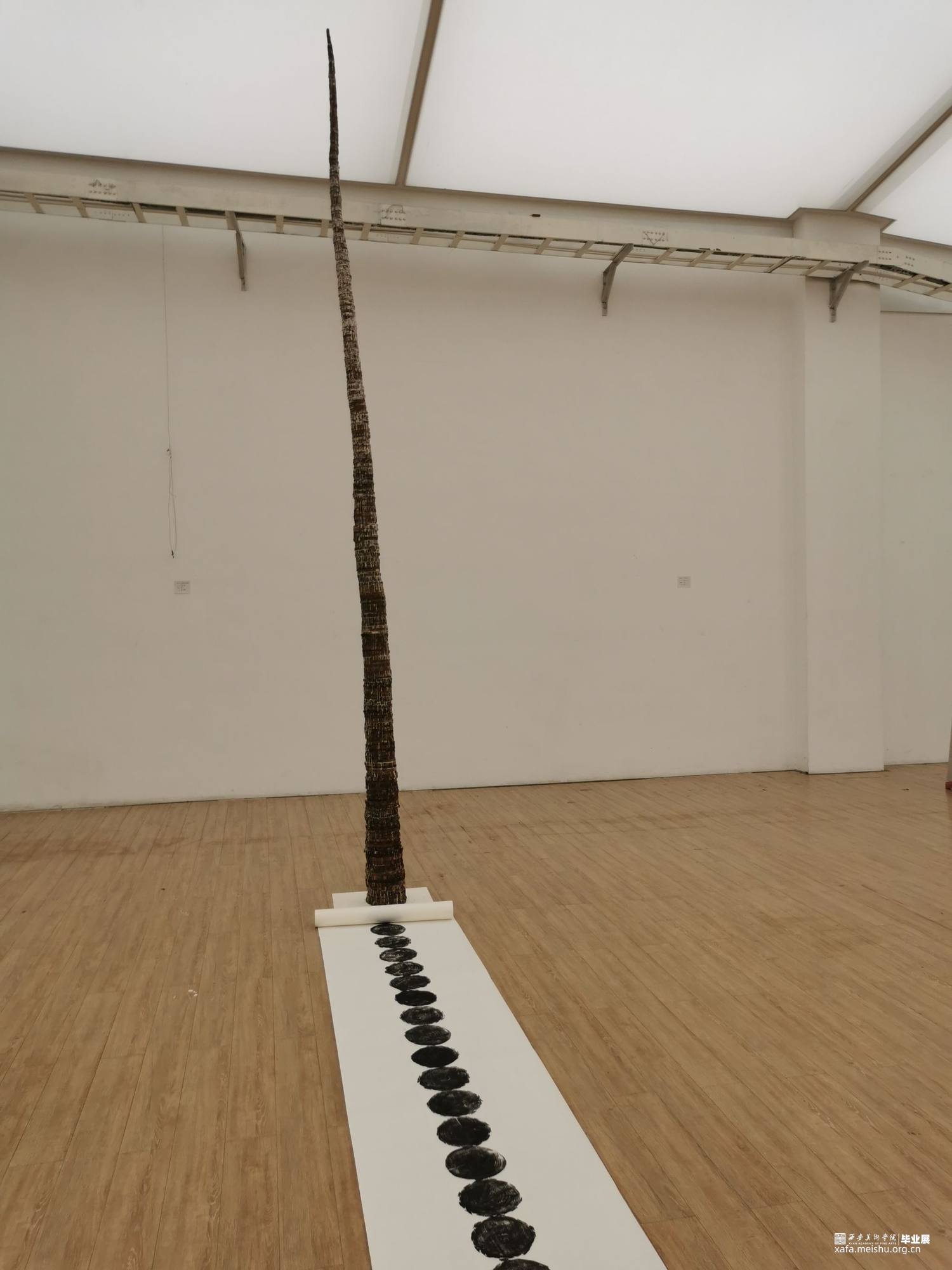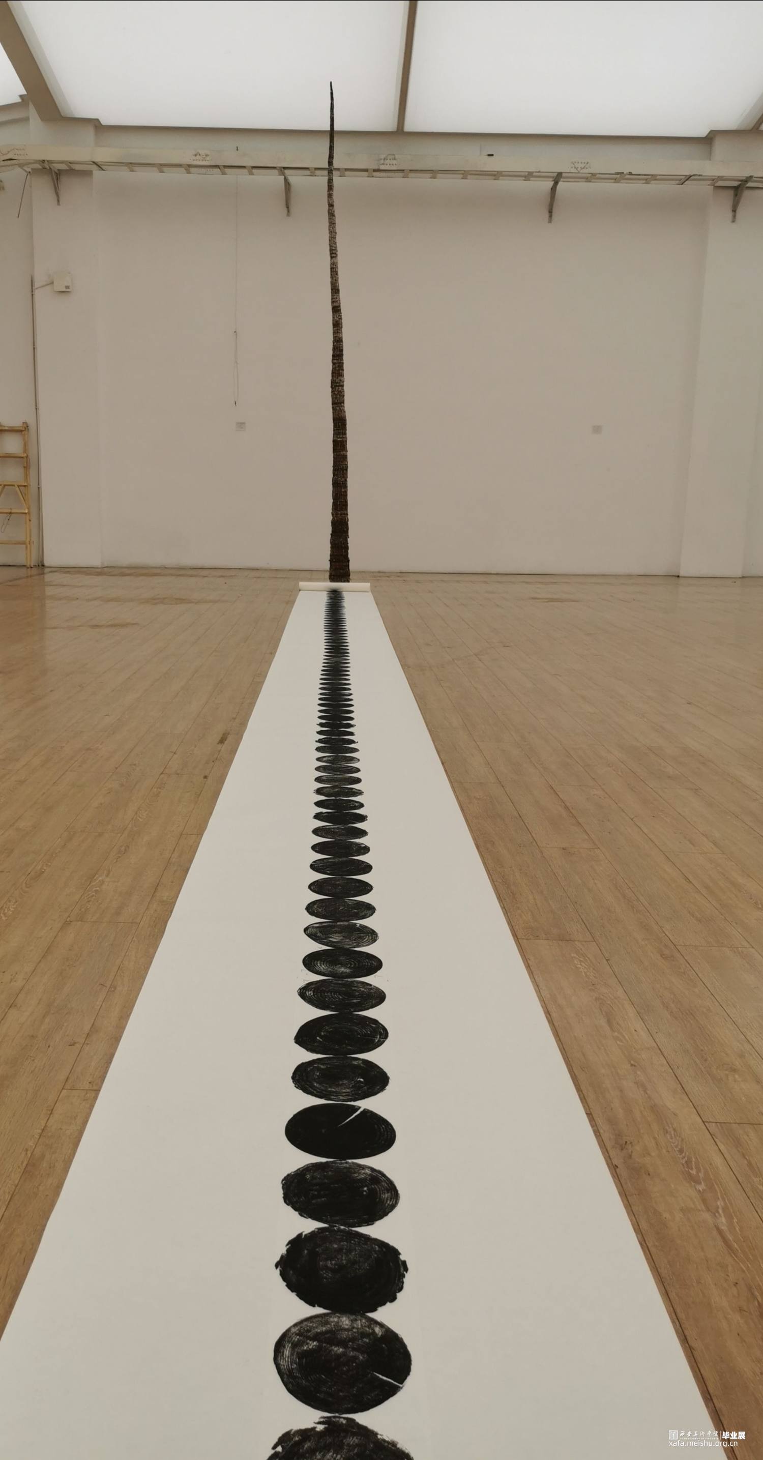 《一棵树》是一棵竹的延续作品,是我从全国各地买的四百多块大小不一的松木木口,然后再按从大到小,标上数字排列后一一印出来的,最后我再用白乳胶把印刷过的木口一个个的粘成了“一棵松树”。这个时候的一棵树是一棵树,但也不是一棵树了,不过不管一棵树还是不是一棵树,此时的前者一棵竹也许不再是一棵竹。真做假时假亦真,假做真时真亦假。