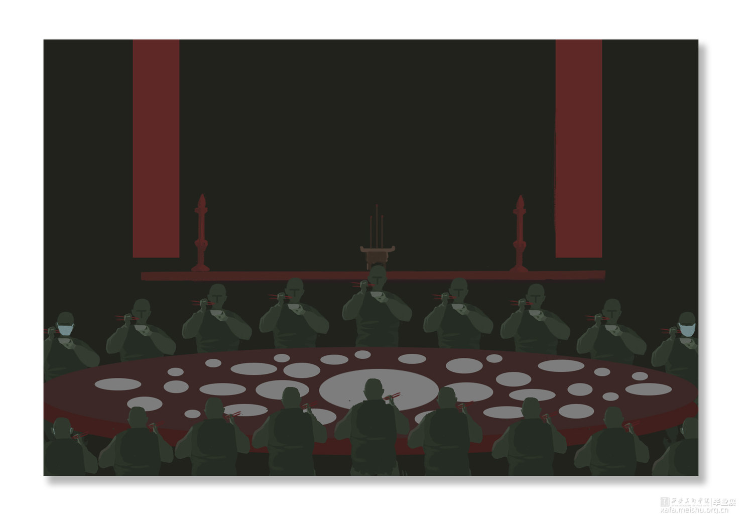 画面选材基本来源于网络,选取疫情前期比较典型的有共鸣的一些事件,通过将人物统一化抹去个人特性,表现各类群体。与常规的疫情绘画不同,我的画师希望能带给观看者一点思考,对疫情中一些现象的思考,这些现象的出现是否合理,而自己在这些现象中又扮演怎样的角色呢。例如我曾经也是那个闻湖北色变,闻咳嗽色变的大部分,见到出门不佩戴口罩的恨不得拿着喇叭就是一顿批评教育。而事情到了今天,我也知道了,不是所有的场合都需要佩戴口罩,也不是所有人在当时都能买得到口罩。因为过度的恐慌,和面对新病毒的手无足措,让我们很多人都做出了过激的举动,愿大家回过头来一起好好回想当时的自己真的是对的吗。