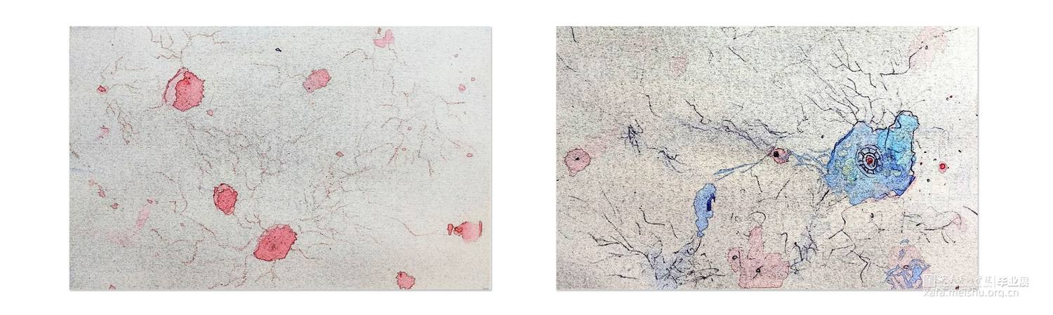 因受疫情影响,前期工作制作草图时因家中没画材,所以就就地取材运用酱油、食醋等材料进行实验,随着快递的复工网上买材料,草图才一张张完善起来。